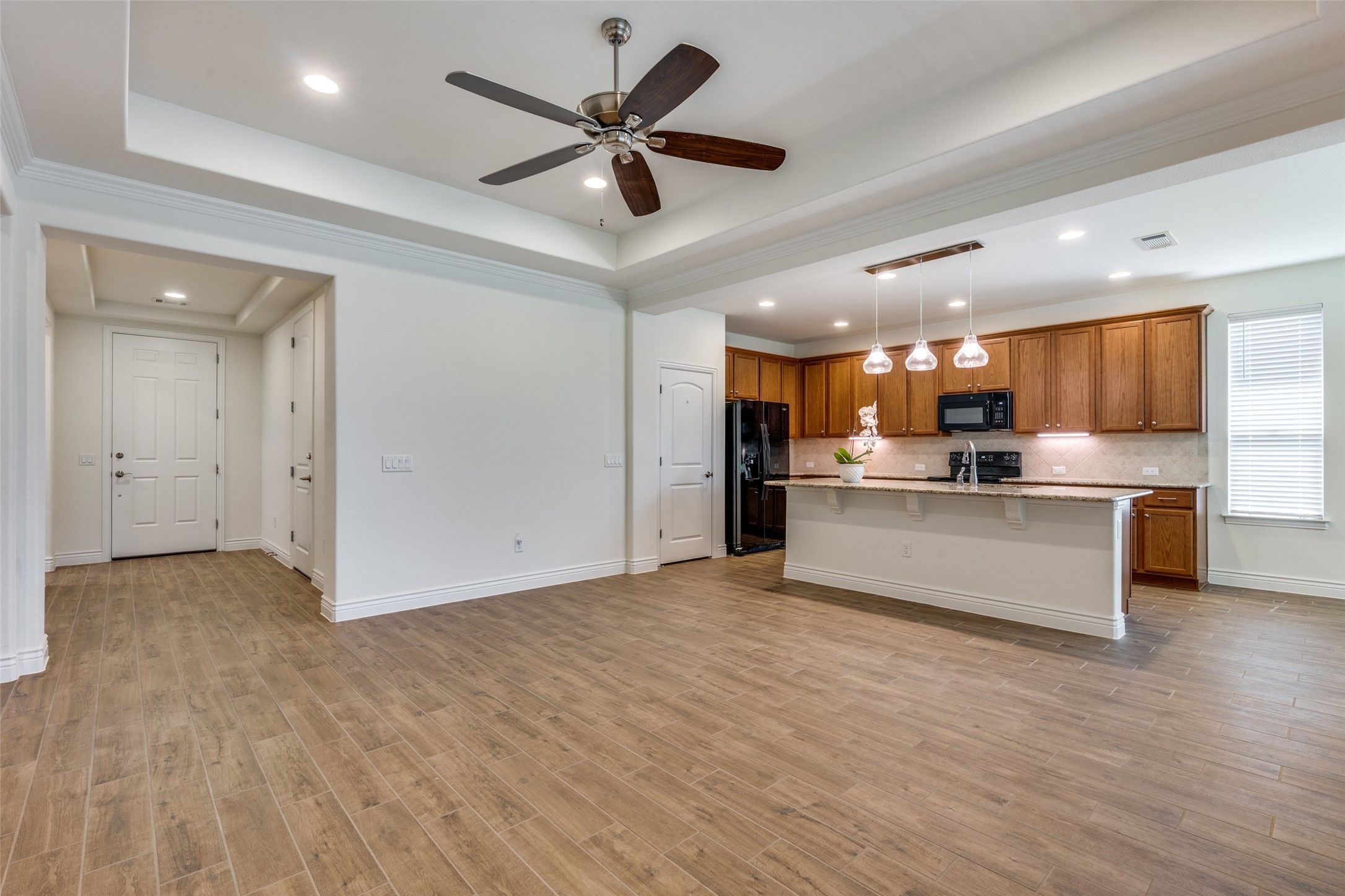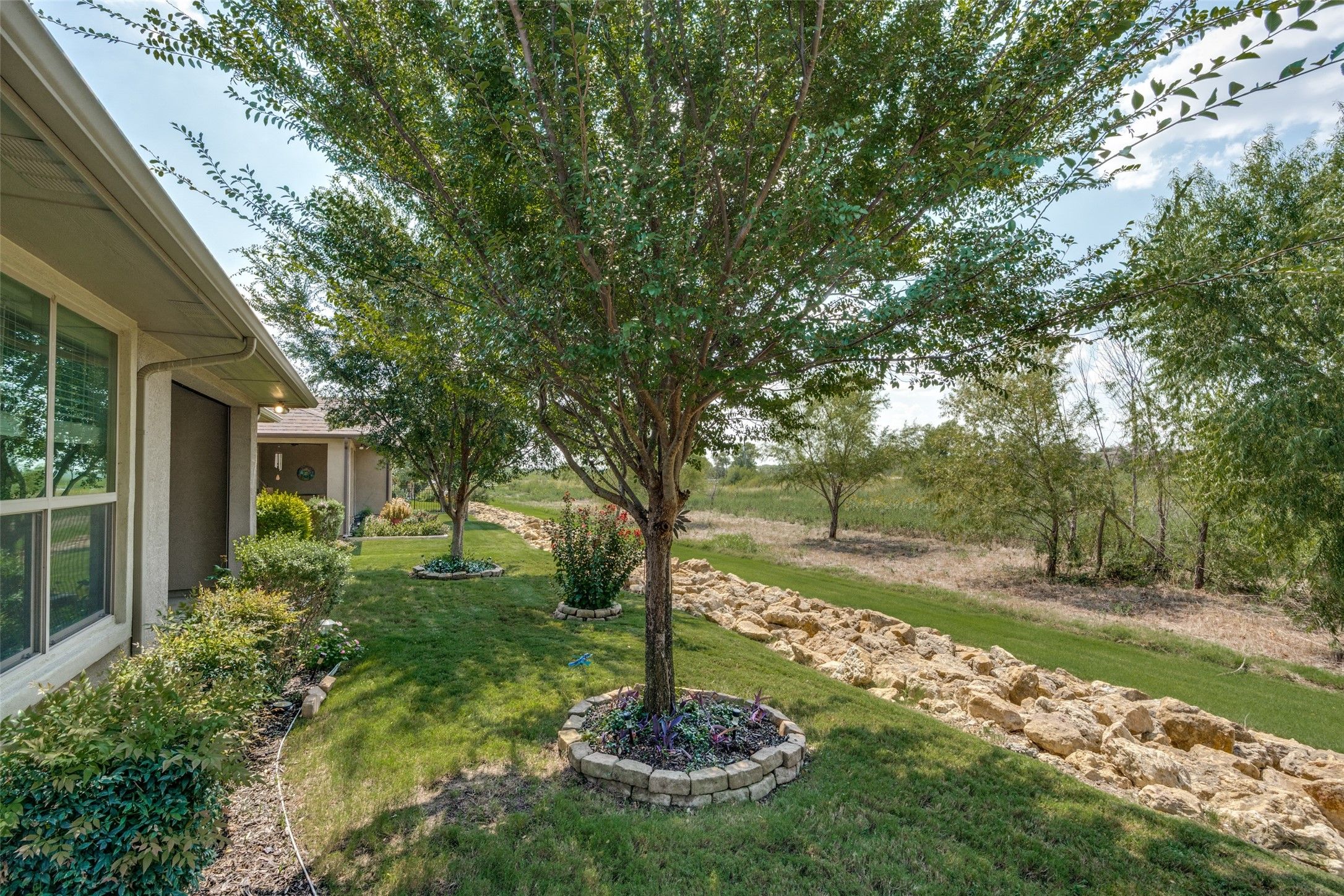Welcome to Easy Living at Robson Ranch! Discover stress-free living in this vibrant over-55 community, where every day brings more activities than you can imagine. This immaculate Courtland plan, built in 2019, sits in a prime location for easy in-and-out access and offers light-filled spaces designed for both comfort and entertaining. Inside, you’ll find 2 bedrooms, 2 baths, a spacious kitchen with a large island, dining and living areas, and an oversized garage. Crown molding in the living room & Primary bedroom. The master bathroom includes double sinks and an oversized shower with a built-in bench, adding both style and convenience. Step out to your covered outdoor living area with an electric screen, perfect for year-round enjoyment while staying protected from the elements. Best of all, the home backs to open grassland that will never be developed—your privacy is secured. Thoughtful upgrades include bug protection, a Ring doorbell, enhanced paint finishes, moisture control, crown molding in the living room & primary bedroom, tray ceiling in the living room, & stylish ceramic tile floors that look like hardwood yet are easy to maintain. At Robson Ranch, you’ll golf-cart your way to endless amenities: indoor & outdoor pools, tennis & pickleball courts, bocce ball, 3 championship 9-hole golf courses, state-of-the-art fitness center, on-site restaurant & bar, and a full-service spa with massages, facials, nail & hair care. Plus, this home is within walking distance of the dog park and community garden—perfect for both you and your four-legged friends. Don’t miss the chance to enjoy the premier North Texas active-adult lifestyle, surrounded by rolling hills, lush landscaping, and great neighbors!