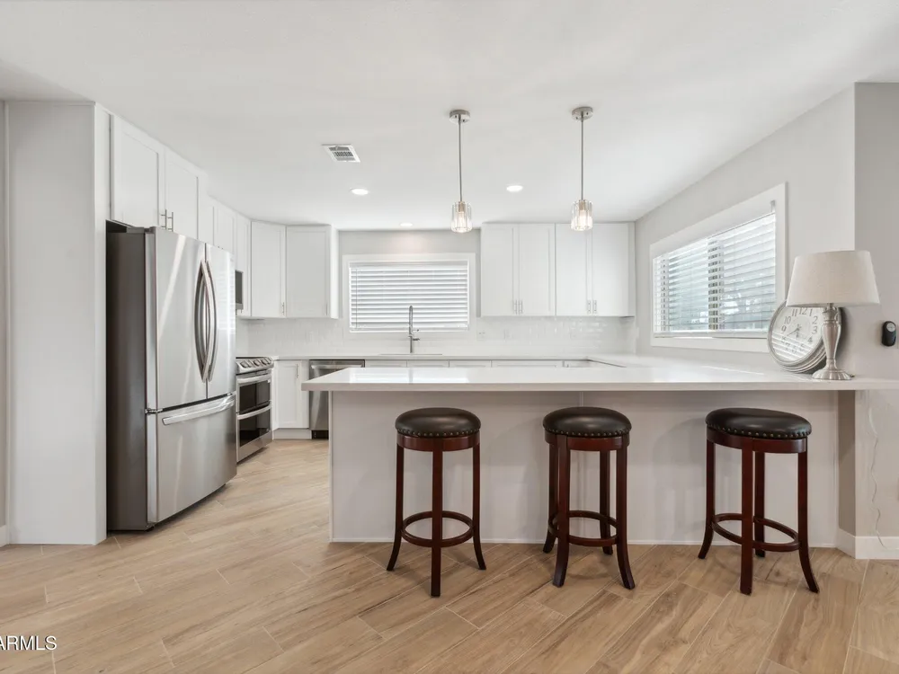 Welcome to this stunning Augusta Model Villa, beautifully remodeled and nestled in the desirable adult community of Sun Lakes Cottonwood. This home is a perfect blend of modern elegance and comfort, offering a low-maintenance lifestyle with luxurious updates and exceptional community amenities. Impeccable Remodel: This villa has been exquisitely updated, showcasing a perfect balance of style and functionality. The HVAC system and water heater were newly installed in 2022, ensuring you enjoy optimal comfort and efficiency. Stunning Kitchen: The heart of the home features gorgeous quartz countertops, newer appliances and tile flooring. Sleek white cabinets, and a set of newer stainless steel appliances. A spacious walk-in pantry provides ample storage, making this kitchen a chef's dream. The large master bedroom is a true retreat, complete with double sinks, a walk-in shower, and generous closet space. This suite is designed to offer you the utmost in relaxation and convenience. A separate inside laundry room adds practicality with its abundant storage options, making household chores more manageable. The second bedroom, conveniently located next to a full guest bath, is perfect for visitors or family members, providing comfort and privacy. Step out onto the back paver patio, where you can unwind and take in the serene views of the HOA-maintained greenbelt. This outdoor space is ideal for relaxing or entertaining in a peaceful setting. Experience the vibrant lifestyle of Sun Lakes, with a wealth of amenities at your fingertips. Enjoy access to multiple golf courses, tennis and pickleball courts, and several swimming pools. The fitness center and a variety of clubs and activities ensure that there's always something to do. Explore excellent dining options at the community's top-notch restaurants and partake in numerous social events and gatherings. This Augusta Model Villa is more than just a home it's a lifestyle upgrade. With its recent renovations, and access to incredible community amenities, this property provides an unparalleled living experience. Don't miss the chance to make this beautifully remodeled villa your own. Start living the good life in Sun Lakes!