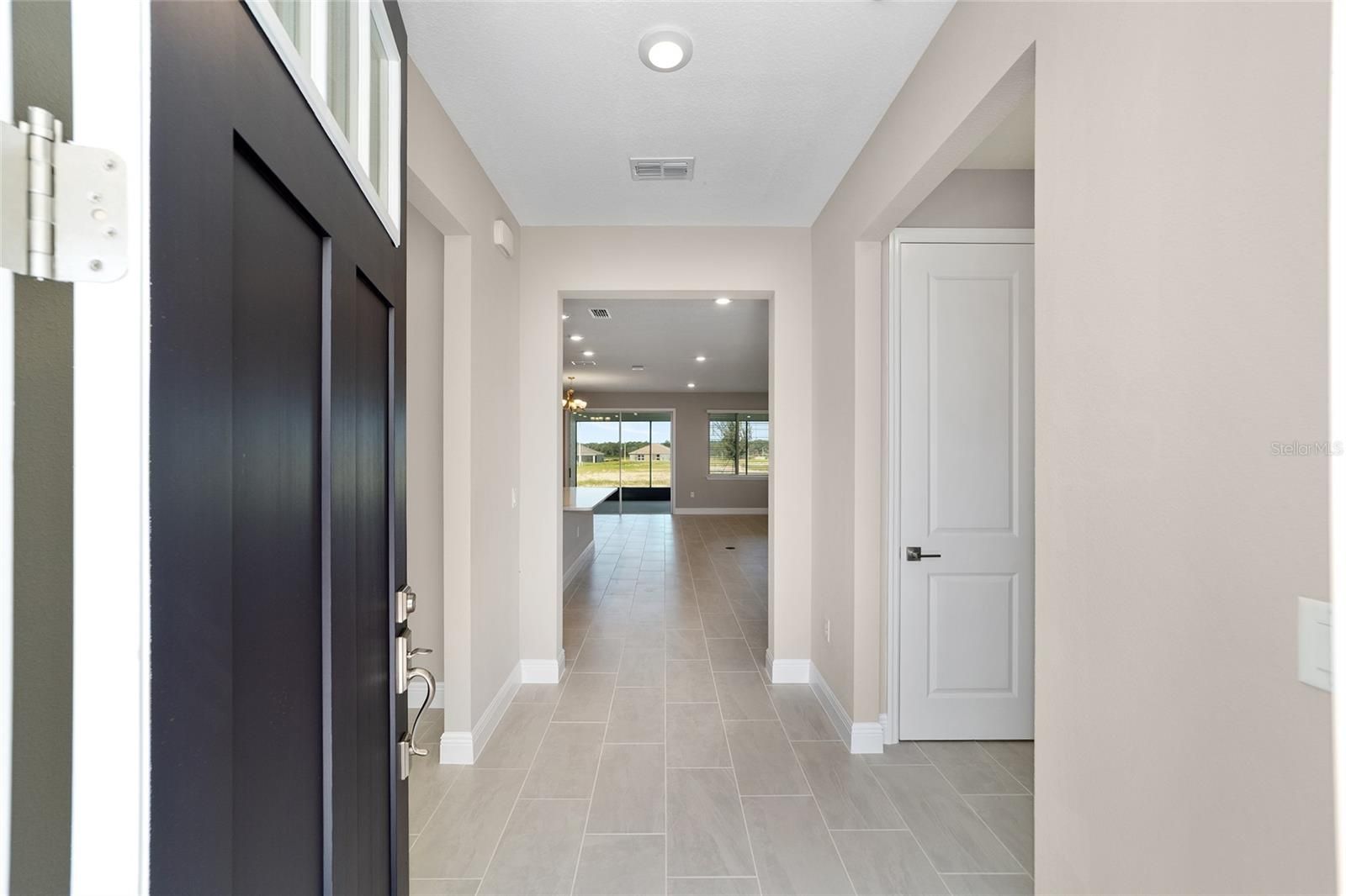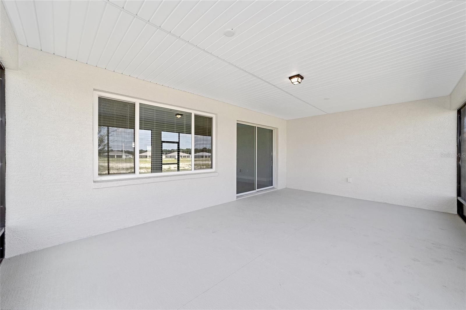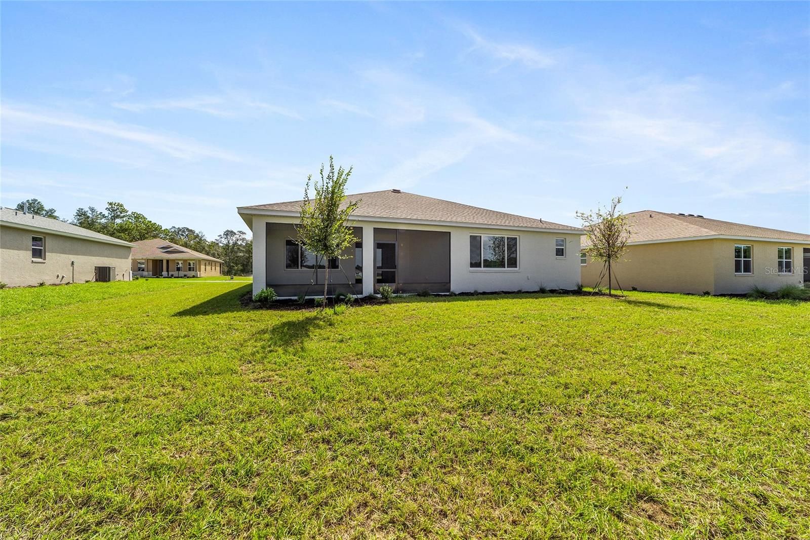 Discover the Ariana Model, a stunning new construction home in LongLeaf Ridge at On Top of the World, Ocala’s premier 55+ active adult community. Thoughtfully designed for both style and comfort, this home offers 2 bedrooms, 2 bathrooms, a versatile flex room, tile flooring throughout, and a spacious 2+ car garage. The gourmet kitchen is a showstopper, featuring stainless steel appliances, dark staggered cabinetry with crown molding, quartz countertops, elegant backsplash, and under-cabinet lighting. A walk-in pantry and oversized island provide ample storage and functionality—perfect for entertaining or everyday living. The flex room at the front of the home is ideal for a home office or hobby space. The guest bedroom enjoys abundant natural light and a large closet, with an adjacent full bath featuring a quartz vanity and a tile shower/tub combination. The primary suite is a private retreat with a large three-panel window, generous walk-in closet, and spa-inspired en suite complete with double vanity sinks with quartz counters, a zero-entry tiled shower with built-in bench and glass enclosure, and a linen closet. Step outside through the sliding door to the screened lanai, where you can enjoy Florida living year-round. Nestled in a gated, golf cart-friendly community with world-class amenities and direct access to shopping and dining, this home perfectly balances luxury and convenience. Don’t miss your chance to own this elegantly finished, move-in ready home—schedule your private showing today!
