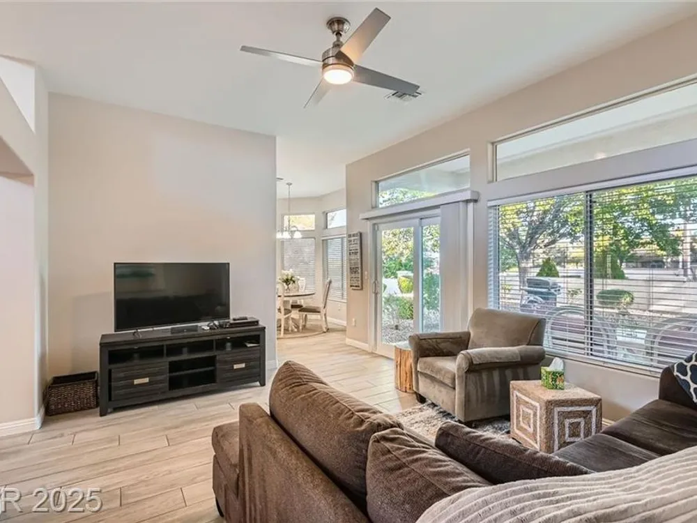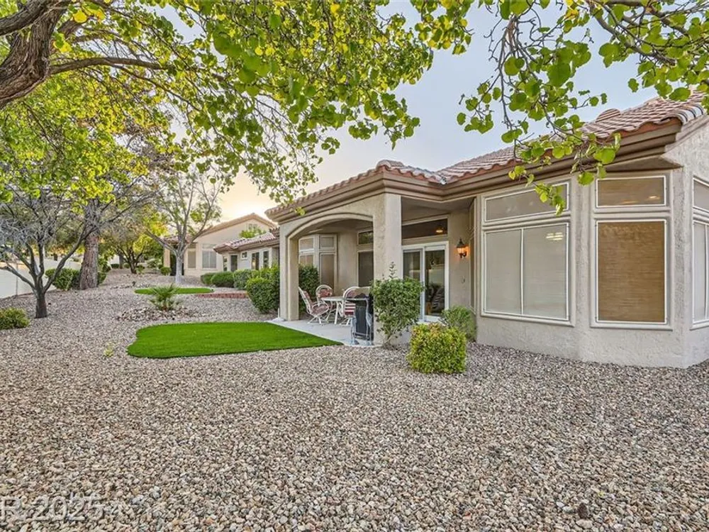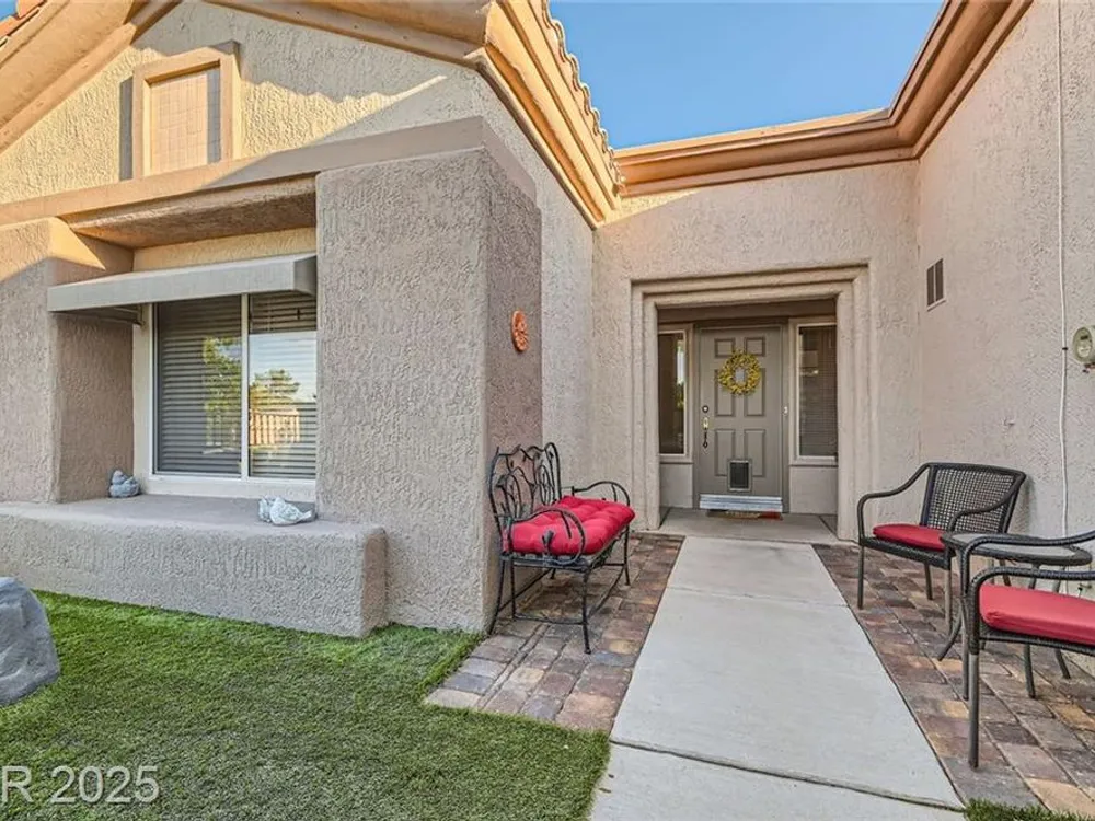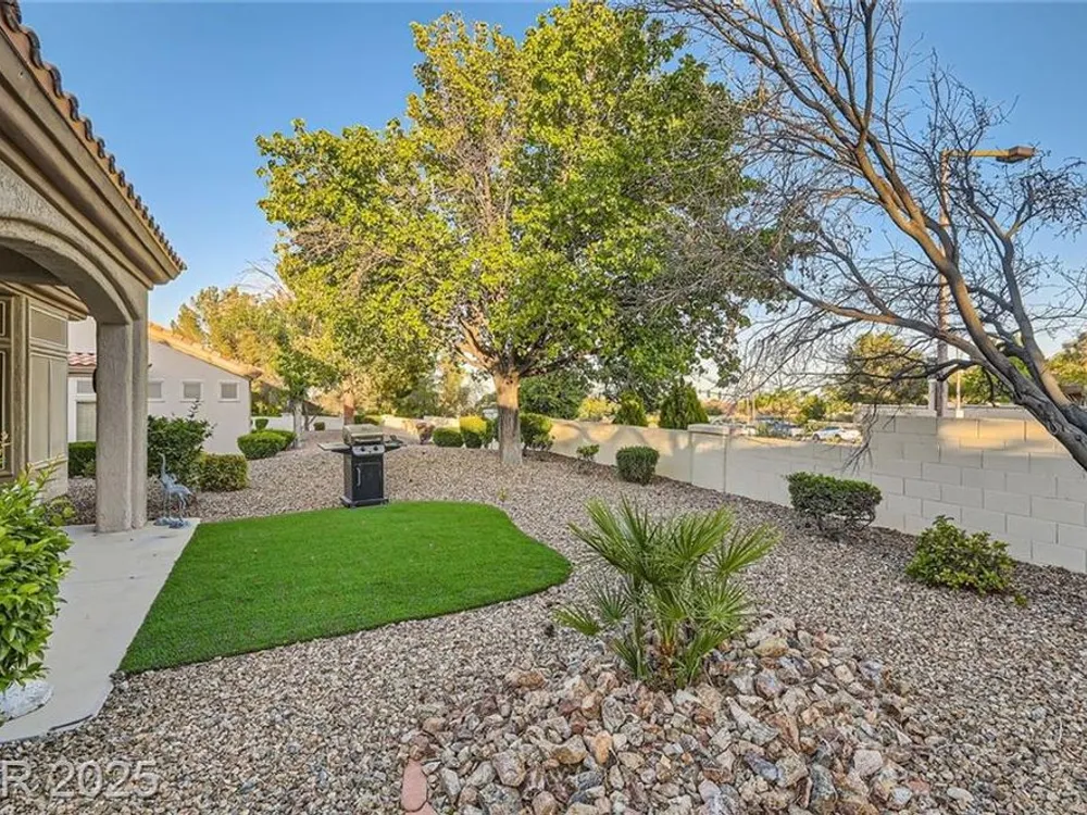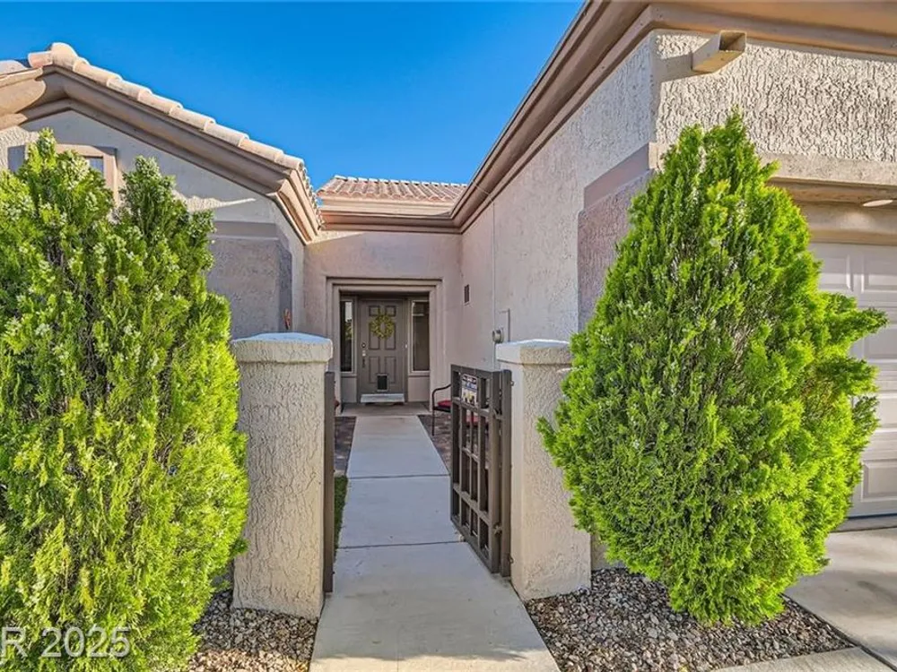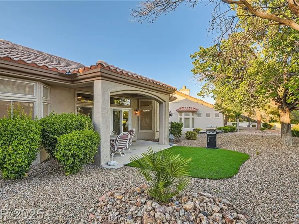 Beautiful Remodeled Home in Sun City Summerlin! This stunning 55+ community home offers timeless style and modern comfort. Step into a private front courtyard that sets the tone for the warm, welcoming interior. Inside, vaulted ceilings and abundant natural light create an open, airy feel. The fully remodeled kitchen is a showpiece, featuring quartz countertops, white cabinetry, and stainless steel appliances, blending modern design with everyday functionality. Stylish tile flooring flows throughout the main living areas, while ceiling fans with light add comfort in every room. The spacious primary suite includes a dual-sink vanity, walk-in shower, and generous storage. Outside, enjoy a large backyard with a covered patio, perfect for both relaxing and entertaining. The recently installed HVAC unit costs $11,000, added for peace of mind. Sun City Summerlin has world-class amenities: 3 golf courses, 4 rec centers, pool, tennis and pickleball courts, and a social calendar.