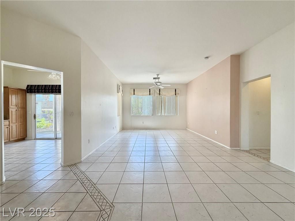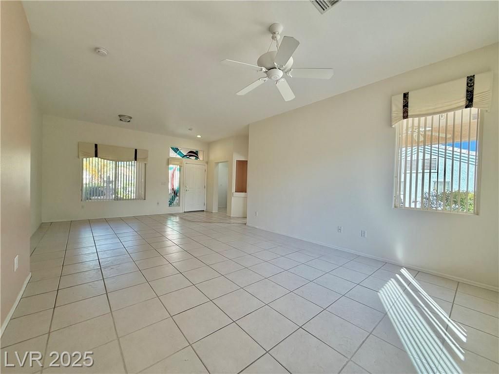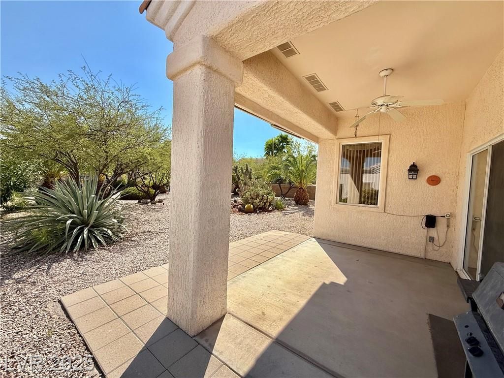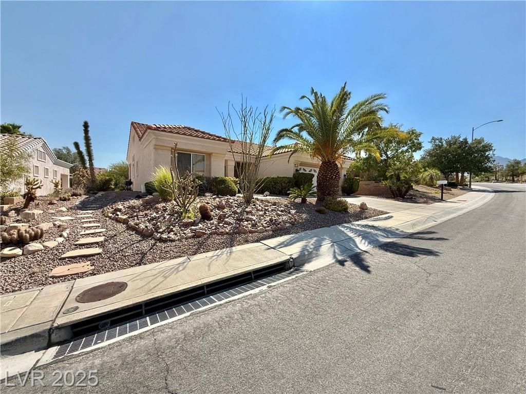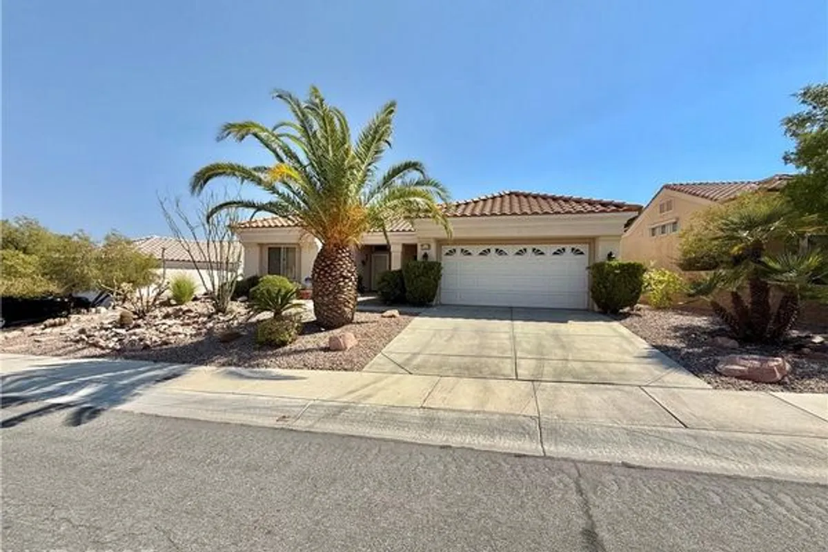 Beautiful 1360 sqft single story home w/ 2 bed, 2 bath, and 2 car garage on one of the largest lots in SunCity Summerlin on just under 1/4 acre. Home features tile throughout as you walk into a roomy and open living room and dining room. Kitchen features granite countertops and backsplash, stainless steel appliances and undermount sink, maple cabinets w/ crown moulding, and pantry. Primary bedroom is large and features a walk-in closet, primary bath features a walk-in shower and is at the opposite side of home from 2nd bedroom. Home also features a newer AC unit replaced in 2017-2018, water softener, covered back patio w/ additional retractable awning, lots of mature landscaping and manicured palm trees, and much more. Come enjoy this retirement home in this amazing Suncity Summerlin community w/ multiple clubhouses, pools, spas, pickleball courts, tennis courts, basketball courts, gyms, golfing, recreation rooms, entertainment, restaurants, shopping, and much more.