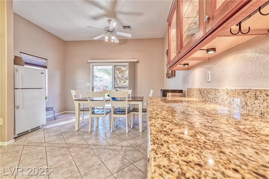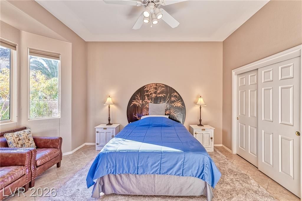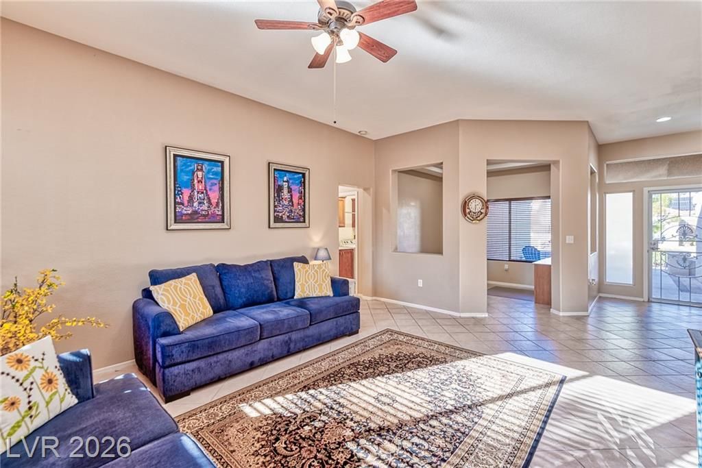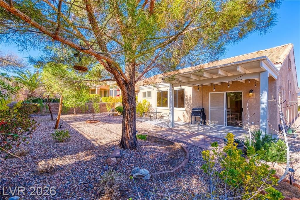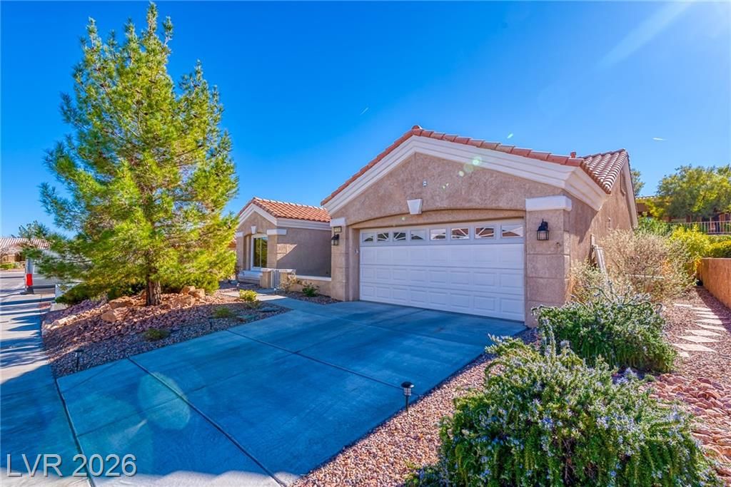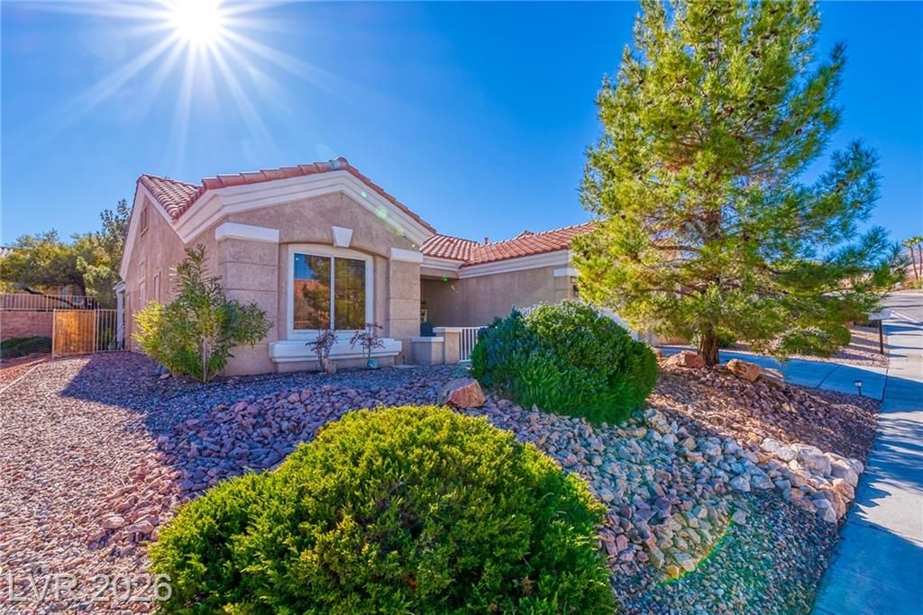 Beautiful Single Story Stunner in Desirable Sun City Summerlin, Premier 55+ community! Enjoy Amazing Resort Style Amenities: 3 Golf Courses, 4 Community Centers, 5 Pools, 3 Exercise Facilities, Multiple Sports Courts, Social Clubs, Water Features & Walking Trails...Relax on the Cozy Front Courtyard. You’ll Love This Home’s Warm & Welcoming Finishes, Stone Tile Throughout. Plus an Office/Den Space. Spacious Open-Concept Living Potential w/Lots of Windows & Natural Light. Large Airy Sun-Drenched Country Kitchen; Perfect for Entertaining. Serene Backyard Canvas to Create Your Private Oasis, w/Spectacular Mountain Views & Fruit Trees. Primary Retreat w/En-Suite & Custom Walk-In Closet. Indoor Laundry Room, Separated Secondary Bedroom & Bathroom. Garage with Built-In storage Cabinets & Epoxy Flooring. An Ideal Location by 215, Red Rock, & Downtown Summerlin; Near Restaurants and Shopping. Make Sure To Take Our Virtual Walk-Through Tour of This Beautiful Property, Which Works on Any Device!