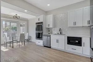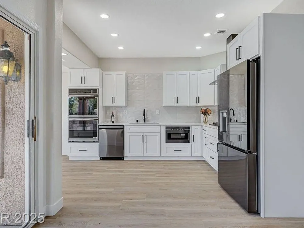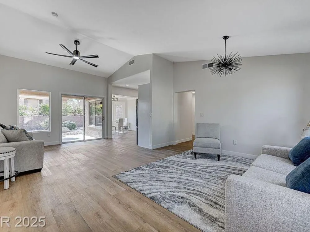 Beautiful completely remodeled open concept home in the age restricted 55+ Sun City Summerlin community!! This popular Reno model features new quartz countertops throughout, new custom cabinets throughout, new LG black stainless steel appliances, double ovens, microwave, refrigerator, custom kitchen backsplash, custom master bath room, luxury vinyl plank flooring, new plumbing and lighting fixtures, fully fenced backyard, vaulted ceilings, highly sought after up the hill Sun City Summerlin location, new interior/exterior paint and new base boards. Sun City Summerlin has again won best Premier 55+ community in the state of Nevada with 3 golf courses, 2 restaurants, 4 club houses, many amenities including 4 indoor/outdoor pools, gyms, tennis and pickle ball courts, racquetball court, baseball park, miniature golf, roaming security patrols, social clubs and activities galore!! The nearby Downtown Summerlin shops, Las Vegas Aviators ball park, restaurants and events are within minutes!