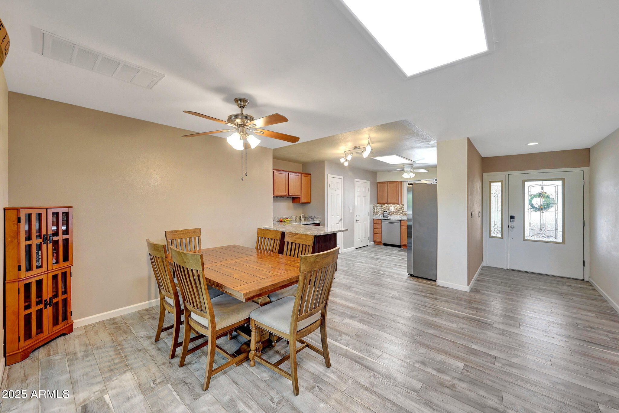 You Won't Want To Miss This Beautifully Updated And Expanded Rainier Model Home In Sun City! This Home Truly Has What Everyone Is Looking For. A Charming Brick-Paved Driveway Leads You To The Inviting Front Door. The Exterior Features Stucco Siding And Dual Pane Windows For Improved Efficiency. Inside, You'll Find Luxury Vinyl And Carpet Flooring. Walls Have Been Removed Between The Kitchen And Living Room To Create An Open-Concept Feel. The Popcorn Ceilings Are Gone, And There Are Ceiling Fans In Every Room Along With Recessed Lighting Throughout. You'll Even Notice The Smooth, Rounded Drywall Corners For A Modern Touch. The Kitchen Shines With Updated Cabinets, Granite Countertops, And Stainless Steel Appliances. A Wall Removal Added Even More Cabinetry And Counter Space Perfect For Cooking Or Entertaining. An Arizona RoomHeated And CooledIs Included In The Home's Square Footage, Providing A Comfortable Year-Round Space. Beyond That Is A Spacious Laundry And Storage Room. Both Bathrooms Have Been Fully Updated. The Guest Bathroom Includes A Tub, While The Primary Bathroom Features A Beautifully Tiled Walk-In Shower. Each Bathroom Also Has Updated Vanities And Toilets. Your Backyard Oasis Awaits! Enjoy The Expansive Yard With A Mostly Covered Patio And Astroturf Area. The Yard Is Partially Fenced Ideal For Keeping Pets Nearby While Maintaining An Open Feel. Make Sure To Put This Home At The Top Of Your Short List.