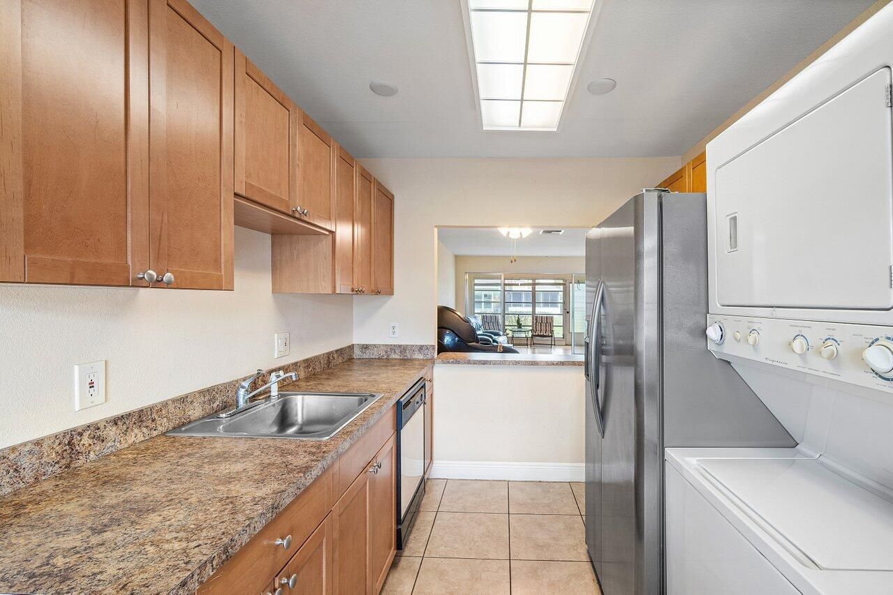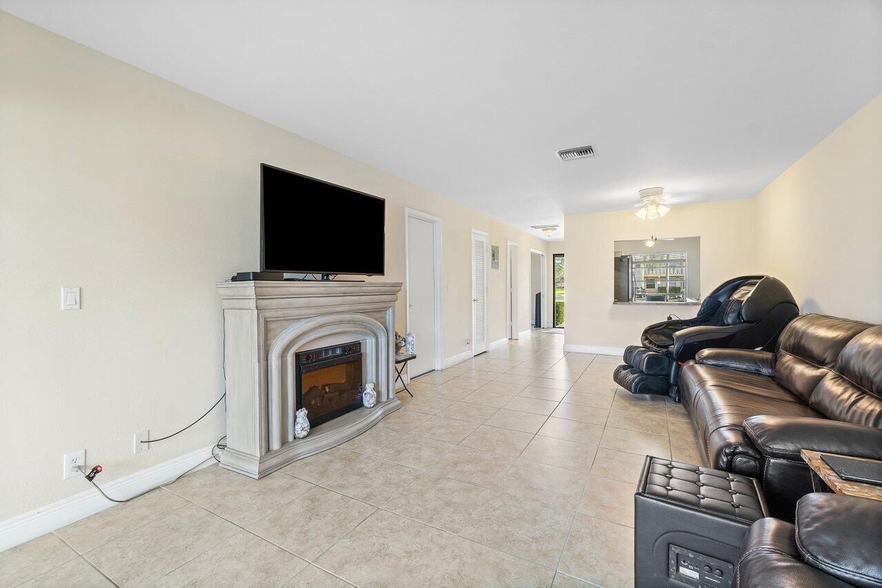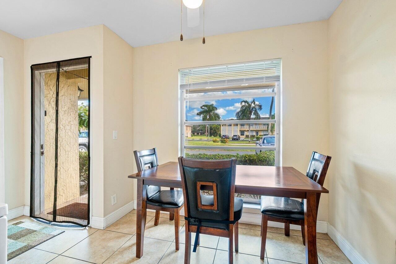 Nestled within the vibrant 55+ community of Pines of Delray, this charming villa offers a blend of comfort and convenience. Step inside to discover tastefully tiled floors that guide you through the main living area, where natural light dances across the upgraded kitchen. Solid wood cabinetry, sleek countertops, and a cozy breakfast nook create a perfect setting for morning routines. Relaxation beckons in the expansive living room, adorned with an upgraded fan and sliding glass doors leading to the inviting Florida room, complete with additional storage room. The oversized master bedroom boasts laminate flooring, a spacious walk-in closet, and serene windows complemented by upgraded treatments. The master bathroom features a solid wood vanity, enhanced lighting, and a stylish shower/tub combination. A generously sized secondary bedroom offers laminate flooring and ample natural light. A half bathroom boasts a solid wood vanity and upgraded fixture. Recent upgrades include a (2024) hot water heater and a brand new roof (2025). Monthly HOA amenities encompass exterior insurance, water, lawn care, fiber optic cable with HBO, internet, exterior painting, roof maintenance, and on-site management. Residents of Pines of Delray enjoy an active lifestyle with access to two clubhouses, pools, exercise rooms, sauna, and a variety of recreational facilities including tennis, pickleball, and bocce. Ideally situated near shopping, dining, entertainment, South Florida's finest beaches, downtown Delray Beach's Atlantic Avenue, I-95, and major airports, this villa promises a fulfilling Florida lifestyle.