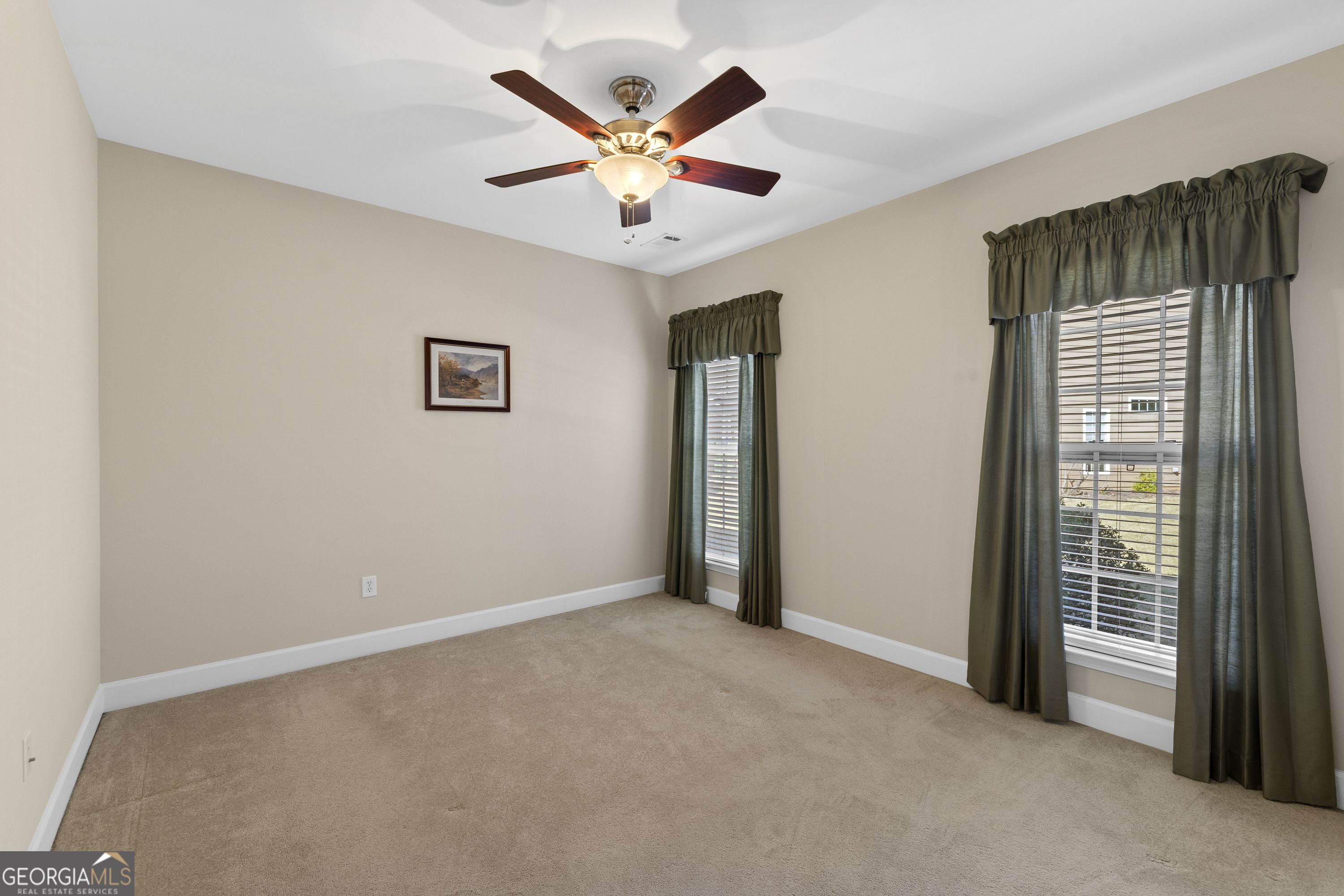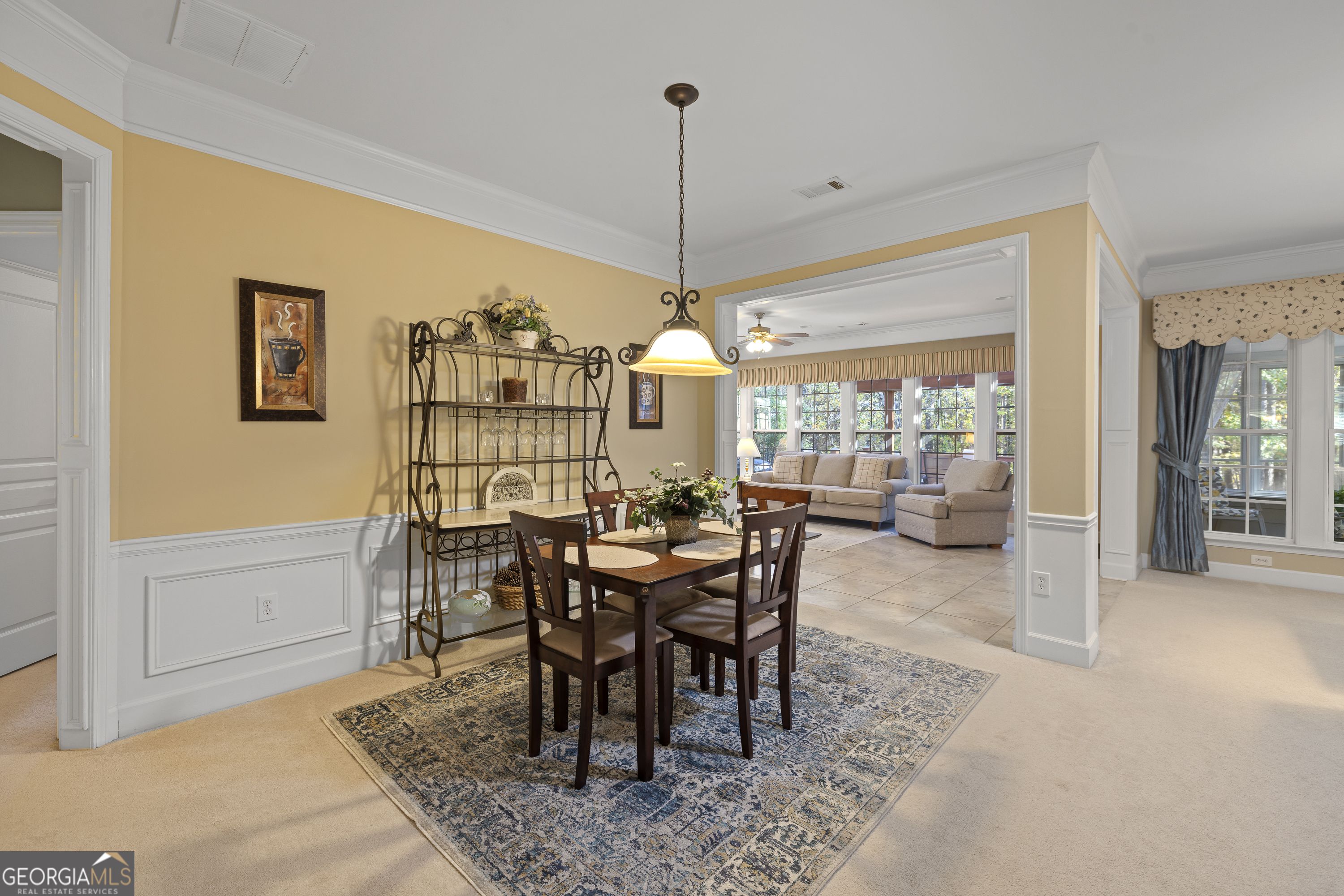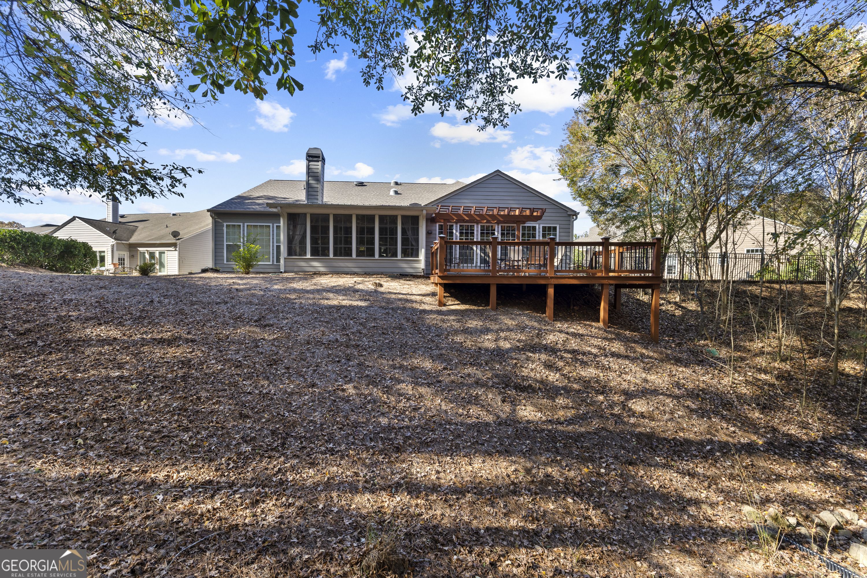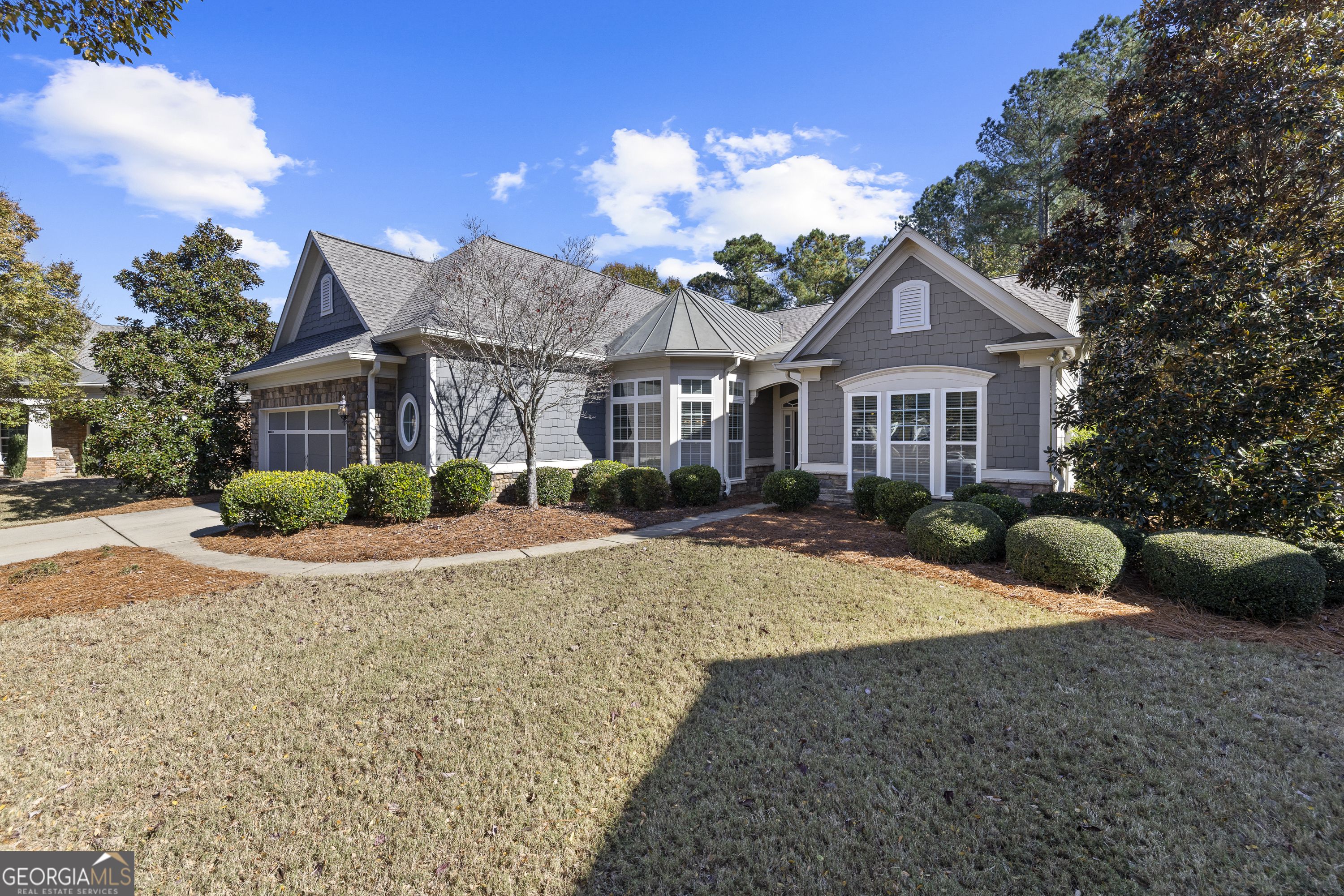 This large Cumberland floor plan in Del Webb at Lake Oconee sits on an incredible lot with a spectacular deck that overlooks a huge private green space in the backyard. The privacy makes you feel like you are in the mountains. The home offers 2743 square feet. Three bedrooms plus a separate office and 2.5 baths set the stage for overnight family and friends. Two heated and cooled living areas give everyone a space to relax. Kitchen and bathroom cabinets have recently been professionally painted to give the home a fresh updated feel. The extra deep garage features an extra four feet of width perfect for a golf cart. Owners also added permanent stairs leading up to the storage space over the garage. This area is insulated plus has sheetrock on the walls. Another room off the four seasons sunroom features easy breezy windows and gives this home an extra space for covered dining or another sitting area. You won't find a better value with this much space in such a gorgeous home or with such privacy from a lot anywhere in Del Webb!