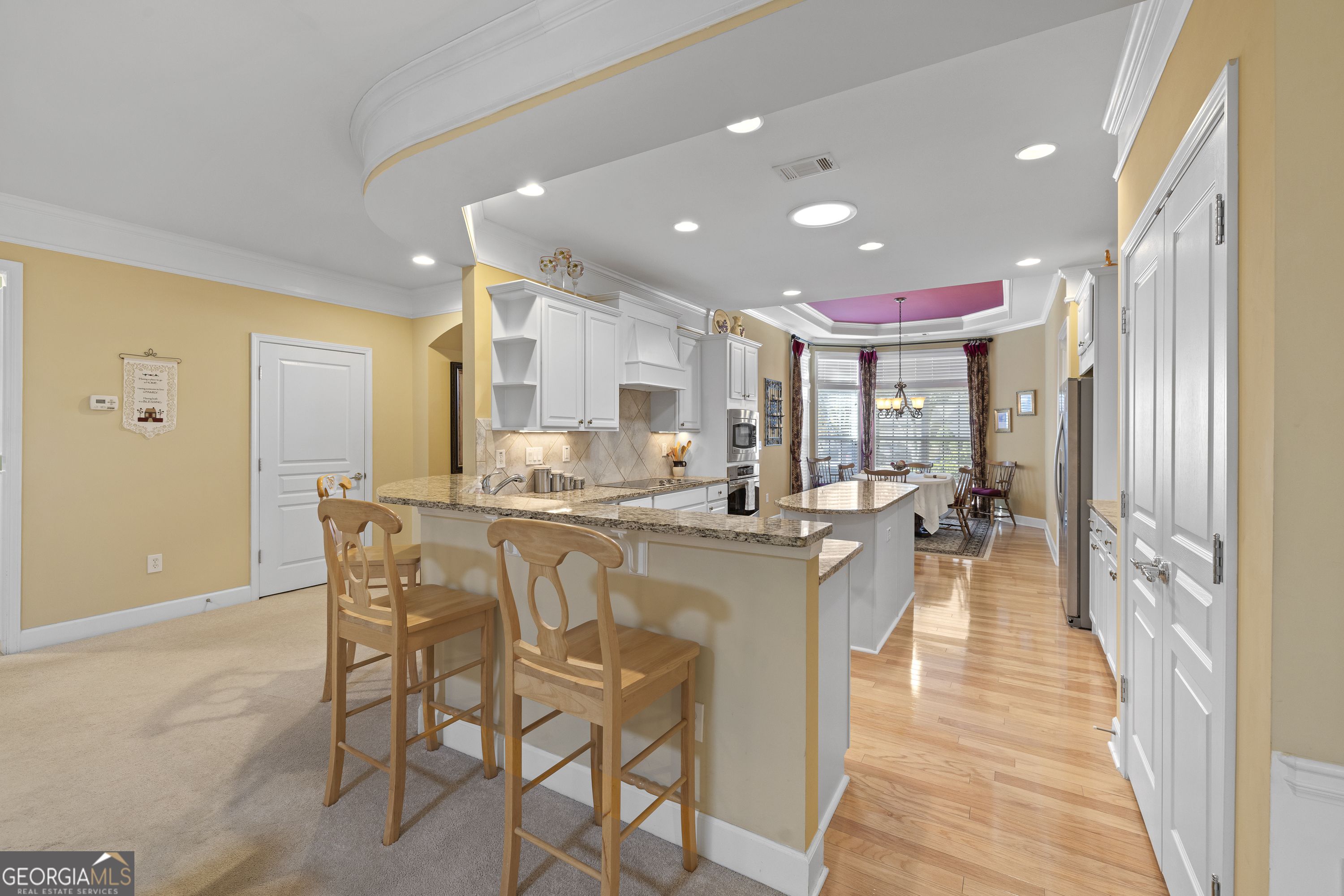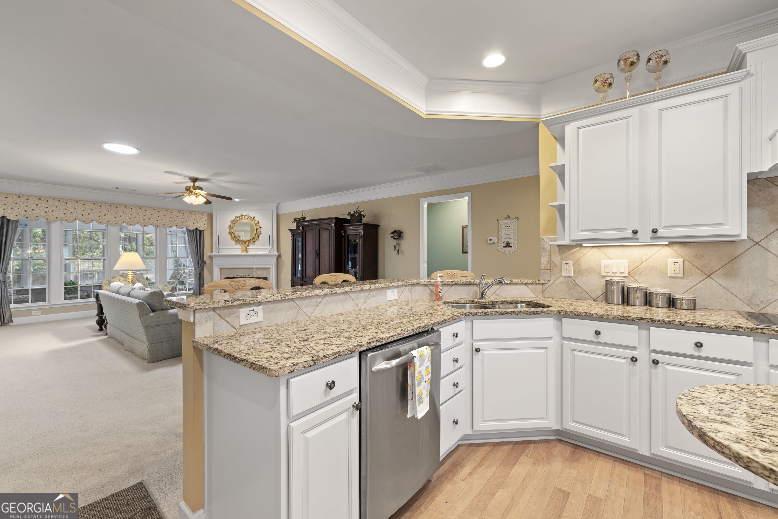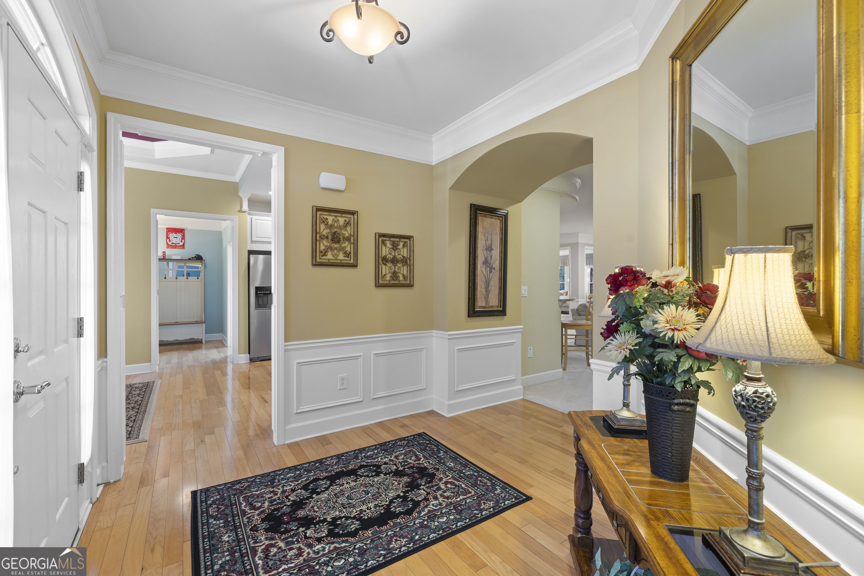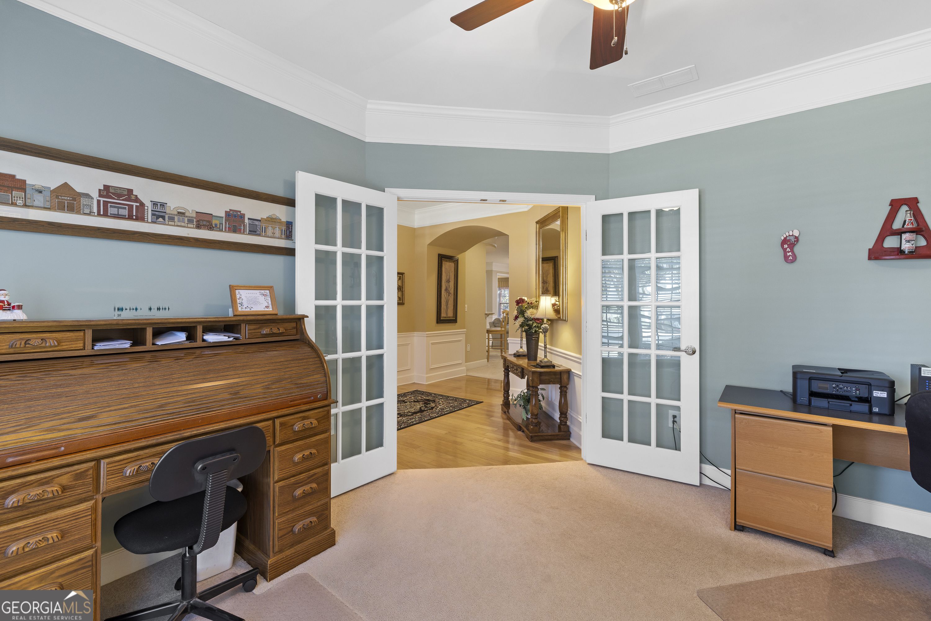This large Cumberland floor plan in Del Webb at Lake Oconee sits on an incredible lot with a spectacular deck that overlooks a huge private green space in the backyard. The privacy makes you feel like you are in the mountains. The home offers 2743 square feet. Three bedrooms plus a separate office and 2.5 baths set the stage for overnight family and friends. Two heated and cooled living areas give everyone a space to relax. Kitchen and bathroom cabinets have recently been professionally painted to give the home a fresh updated feel. The extra deep garage features an extra four feet of width perfect for a golf cart. Owners also added permanent stairs leading up to the storage space over the garage. This area is insulated plus has sheetrock on the walls. Another room off the four seasons sunroom features easy breezy windows and gives this home an extra space for covered dining or another sitting area. You won't find a better value with this much space in such a gorgeous home or with such privacy from a lot anywhere in Del Webb!