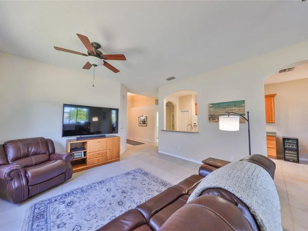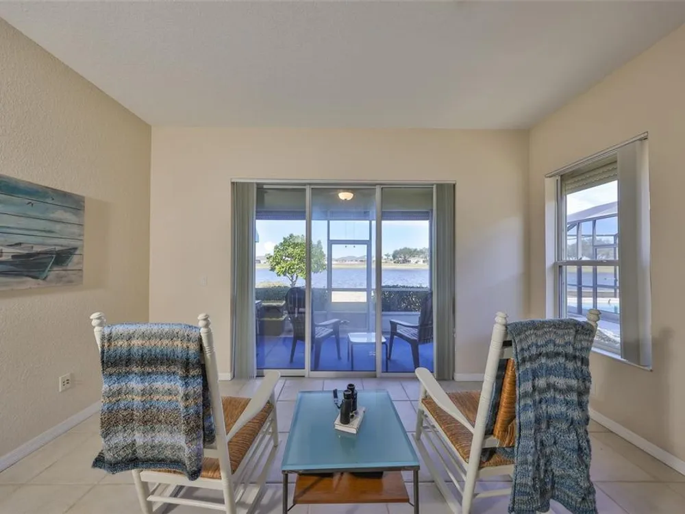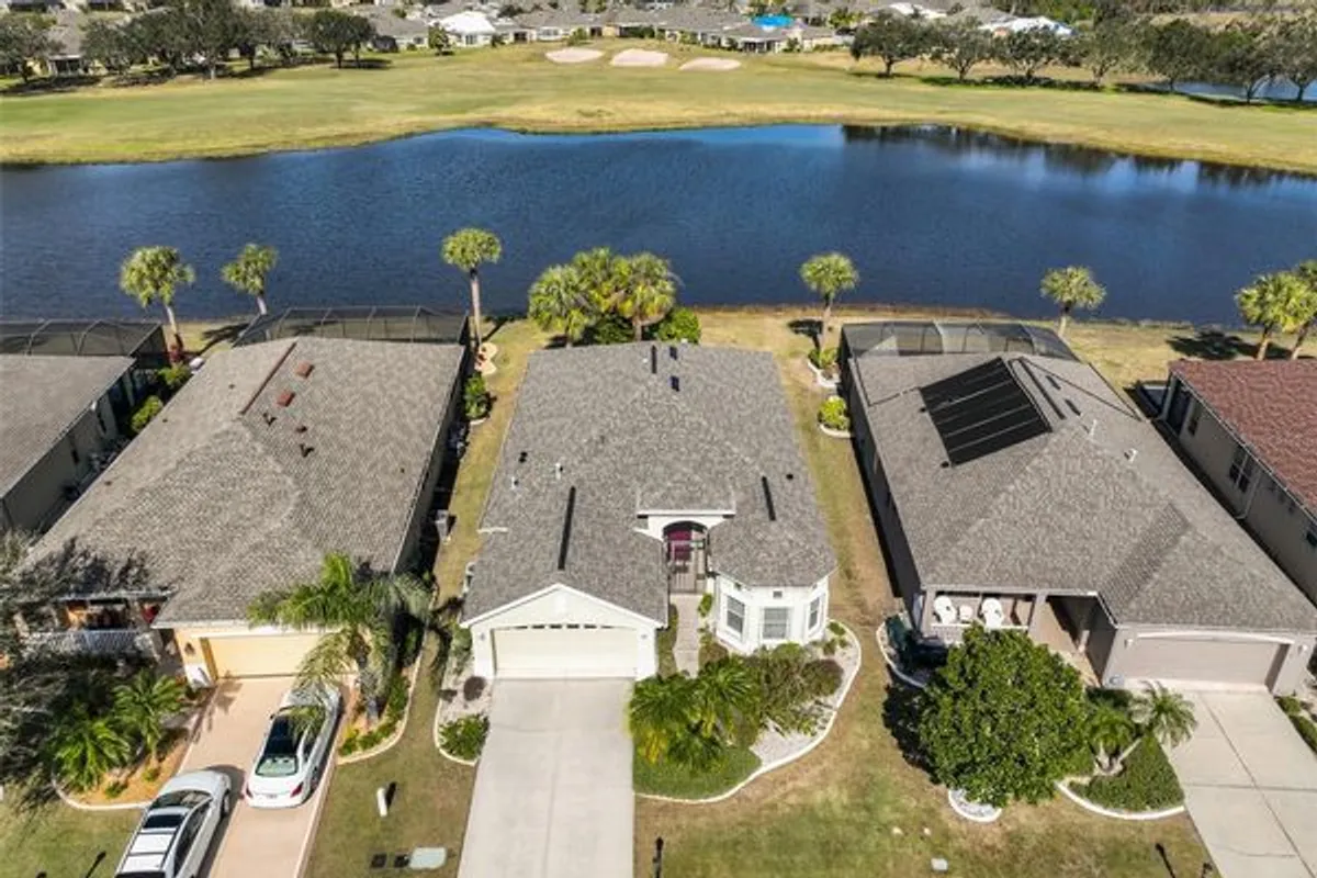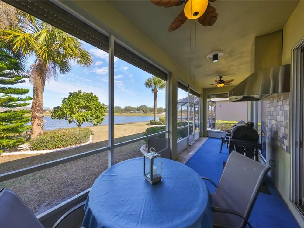 Click on 3D tour ------- MOTIVATED SELLERS! TERRIFIC WATER & GOLF COURSE VIEWS! Welcome to active & fun retirement living in the 55+ resort-style community of Renaissance, where you'll feel like you're on vacation every day. This lovely, PARTIALLY FURNISHED, 2 bed/2 bath & den home boasts almost 2000 square feet of living space and is nestled on a premium lot. You'll be impressed with the neutral decor, high ceilings, lots of ceramic tile flooring and stunning WATER & GOLF COURSE VIEWS ALL ACROSS THE REAR OF THE HOME. The eat-in kitchen has a solar tube for extra lighting, has plenty of cabinetry & counter space and opens up to the comfortable living/dining room area for easy living. The large private owner's suite has an extra sitting area w/slider to the lanai, has a nice ensuite bathroom w/walk-in shower and plenty of closet space. The guest bedroom & bathroom are at the opposite end of the home for added privacy. The den/office can easily be used for a 3rd bedroom if needed. The lanai is the perfect space to relax & enjoy the various birds & wildlife. As an added bonus, there is an awesome grill w/hood for the BBQ lovers. This home has several updates, ROOF 2022, FURNACE 2019 W/UV LIGHT, DISPOSAL 2019, HURRICANE SHUTTERS ALL AROUND 2018, EXTERIOR PAINT 2018, WATER HEATER 2017 AND NATURAL GAS. THIS HOME ALSO COMES WITH A 1 YEAR HOME WARRANTY FOR WORRY-FREE LIVING. The neighborhood Club Renaissance is just a short golf cart ride up the street, where you can enjoy dining, drinks, resort-style pool, fitness classes, spa, social activities, and so much more. You'll also have access to all Sun City Center amenities, such as shopping, restaurants, banking, doctors, numerous social clubs, pickleball, and tons more, all accessible by golf cart. So come and visit this wonderful home today and see why you'll want to call it yours!