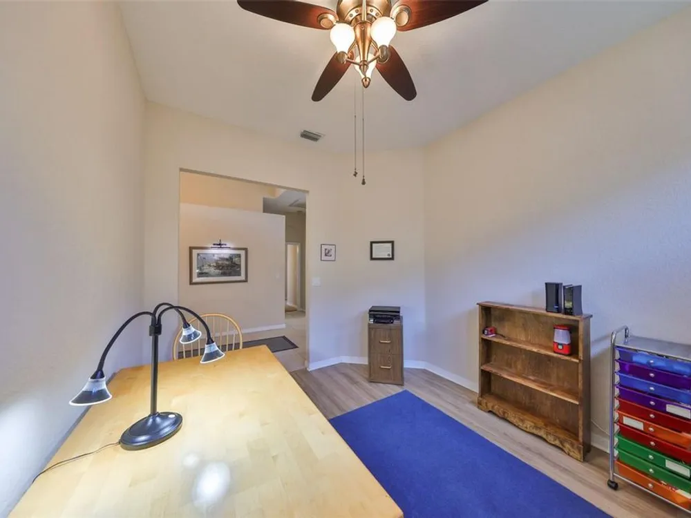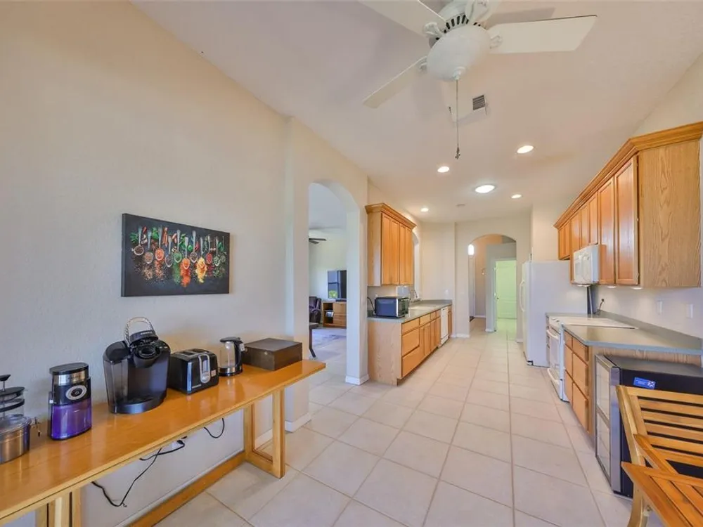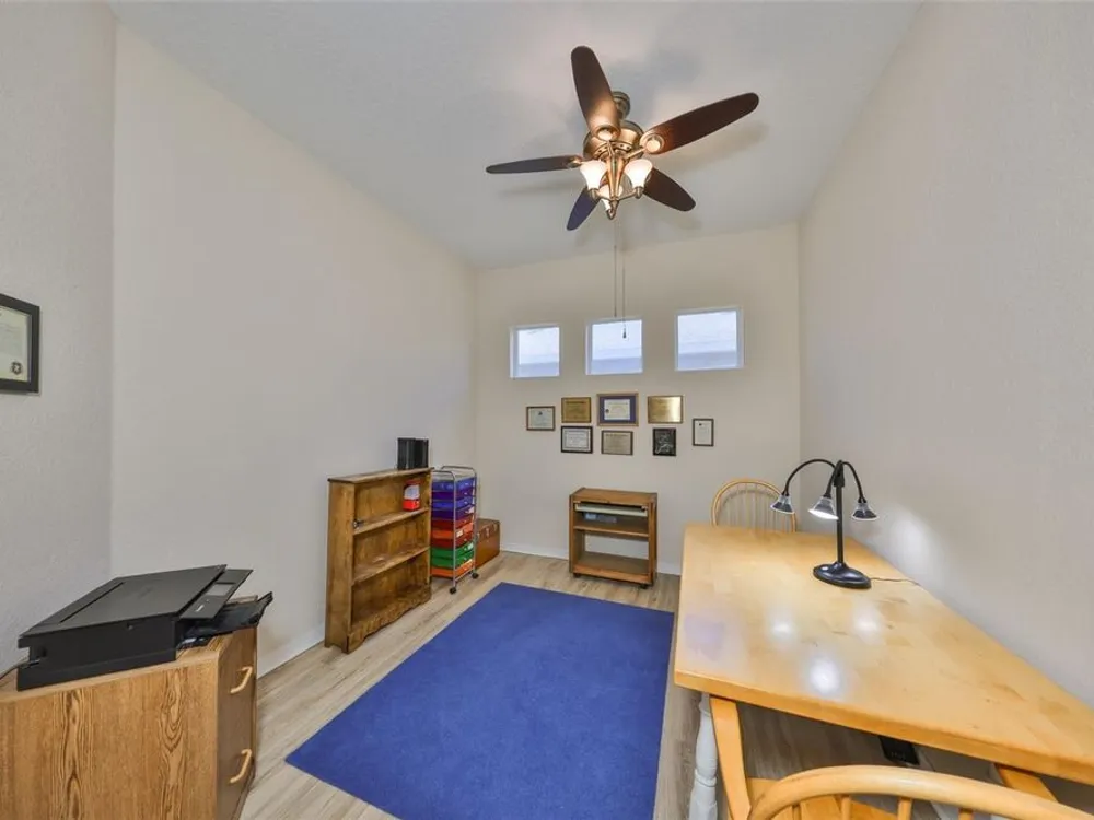 - Ceiling Fan(s), Eat-in Kitchen, High Ceilings, Living/Dining Room, Solid Surface Counters, Split Bedrooms, Tray Ceiling(s), Walk-In Closet(s)