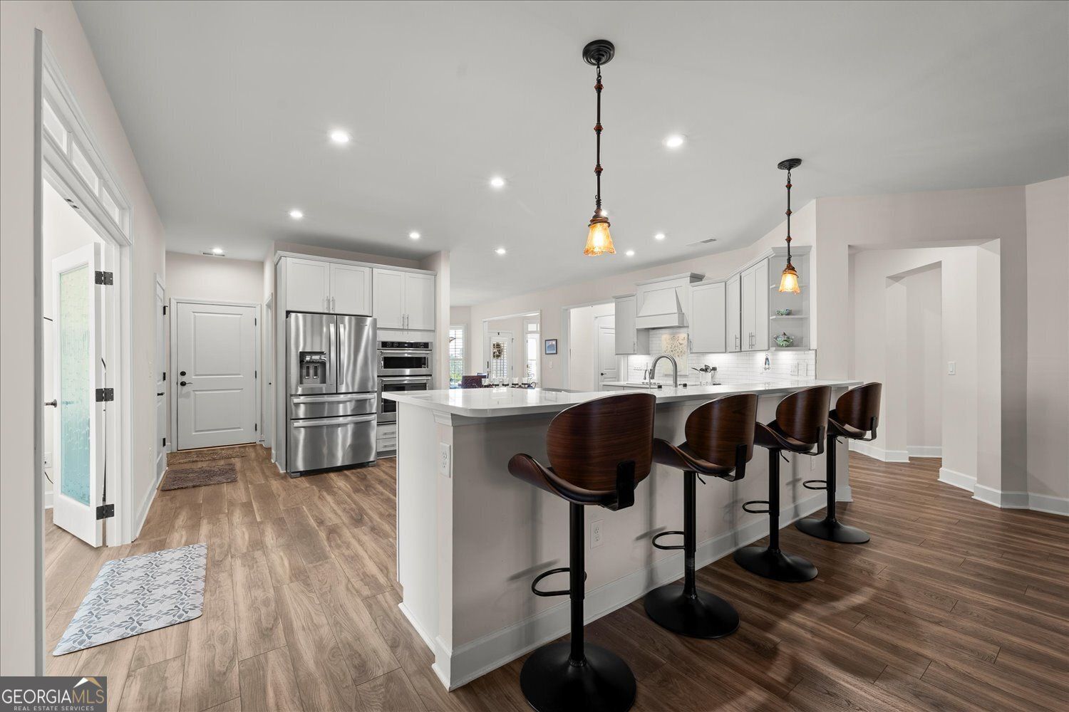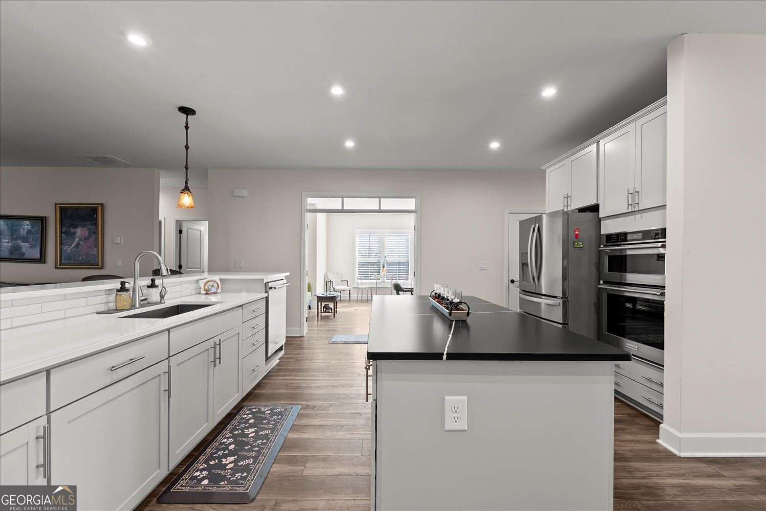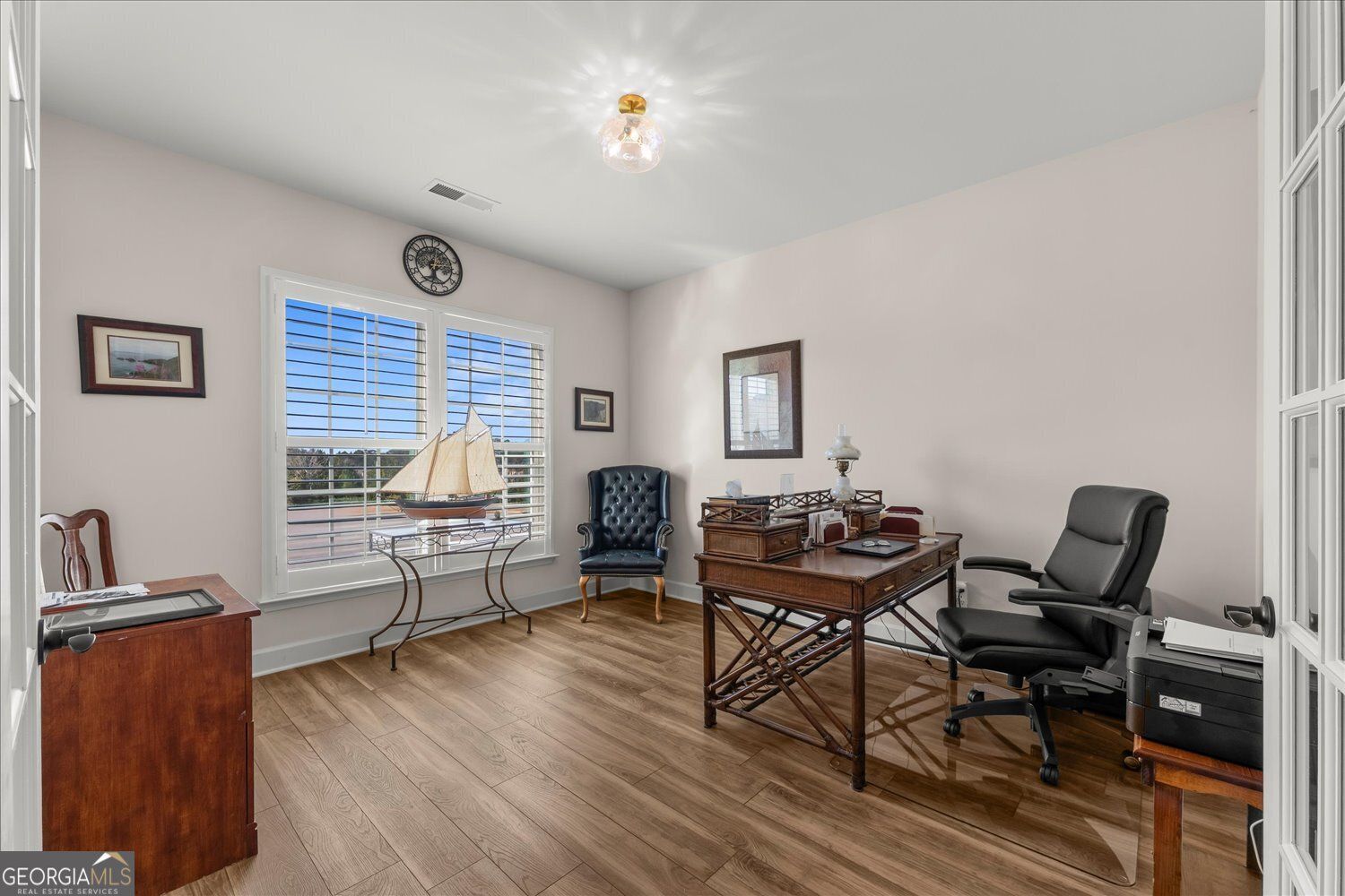 Welcome to 1031 Peachbelt Street, one of the most unique and versatile homes in the prestigious Del Webb at Lake Oconee, Greensboro, GA-an active 55+ community known for its exceptional lifestyle and sense of connection! Priced at $750,000, this 3-bedroom, 3.5-bath home stands out with thoughtful upgrades, abundant space, and endless customization potential! The open-concept main level centers around a stunning kitchen with a massive island, upgraded KitchenAid appliances, and an elevated dishwasher-perfect for effortless cooking and entertaining. The main-level primary suite is a true retreat, featuring a large walk-in closet with custom purse shelving and a spacious bathroom with a double vanity sink, while a main-level private office offers the ideal work-from-home setup. A light-filled sunroom opens to a deck overlooking peaceful views, creating the perfect setting for slow mornings and coffee at sunrise. An additional seating area room off of the kitchen provides even more room to relax or host guests. The real WOW factor awaits downstairs! The daylight basement is divided into three incredible spaces (all heated and cooled): a huge unfinished storage area-say goodbye to storage units forever; a finished, 950 sq. ft living space complete with a custom wood accent wall, full bathroom, and private bedroom-perfect for guests, multigenerational living, or visiting grandchildren; and a third section currently used as a woodworking workshop, ideal for hobbies, a man cave/she-shed, or future finished space tailored to your vision. The basement opens to a private backyard with no rear neighbors, offering peace, privacy, and room to enjoy the outdoors. The owner's attention to detail is evident throughout, with key features such as the reverse water osmosis system in the kitchen and water filtration system throughout, convenient floor outlets in living areas for easy device charging, a utility sink in the garage, and an Alexa-compatible exhaust fan in the downstairs bathroom. Beyond the home, Del Webb at Lake Oconee delivers an unmatched lifestyle with a clubhouse, weekly social events, swimming pool, pickle ball, tennis, and so much more-all designed to foster community and connection. This home offers space, flexibility, and lifestyle in a way few others can! This home has it all and truly is a MUST SEE! Call today to schedule your private tour!