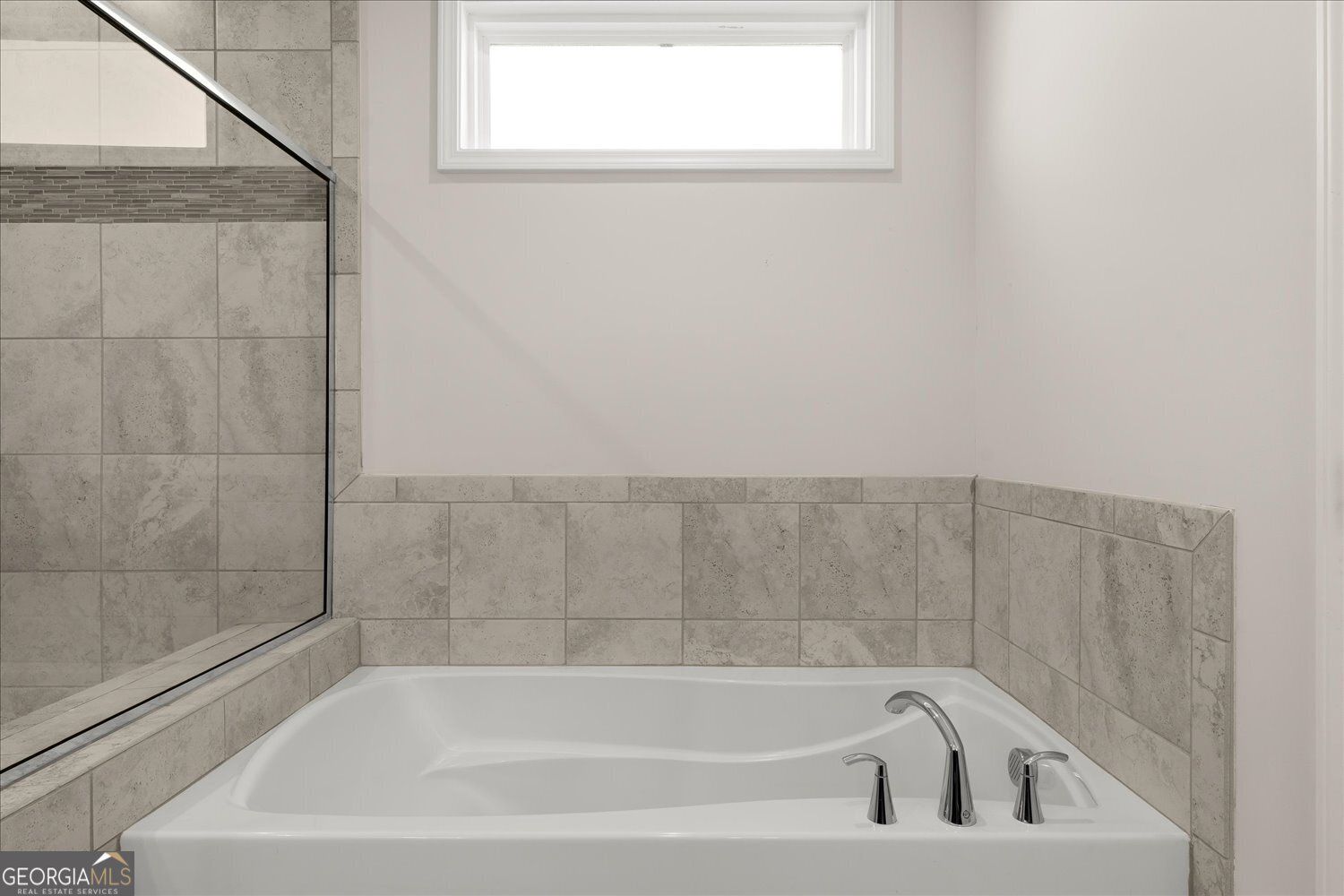 - Double Vanity, In-Law Floorplan, Main Level Primary, Separate Shower, Soaking Tub, Split Bedrooms, Tile Bath, Tray Ceiling(s), Vaulted Ceiling(s), Walk-In Closet(s), Bonus Room, Family Room, Laundry Facility, Home Office