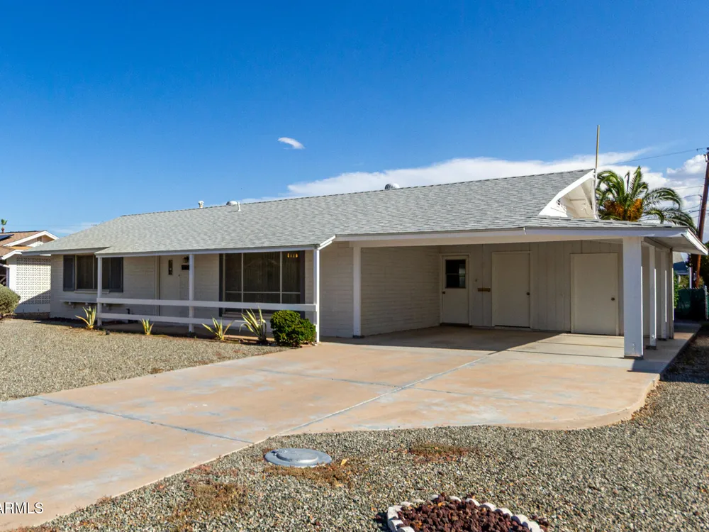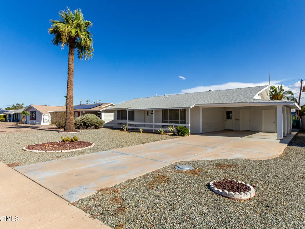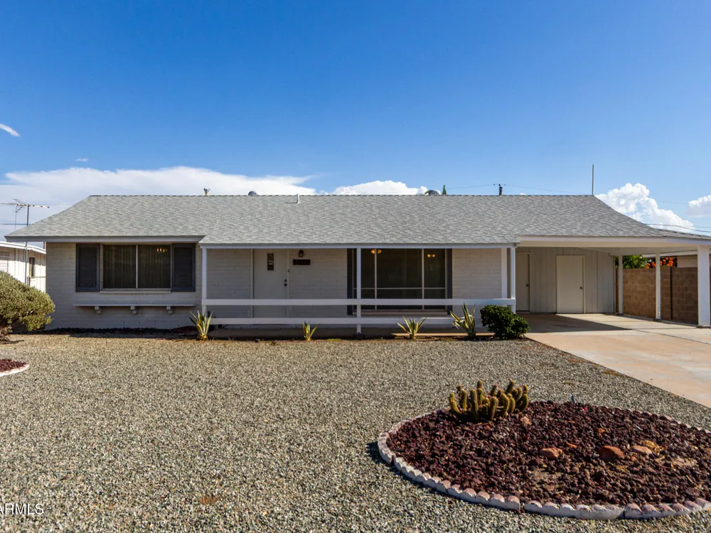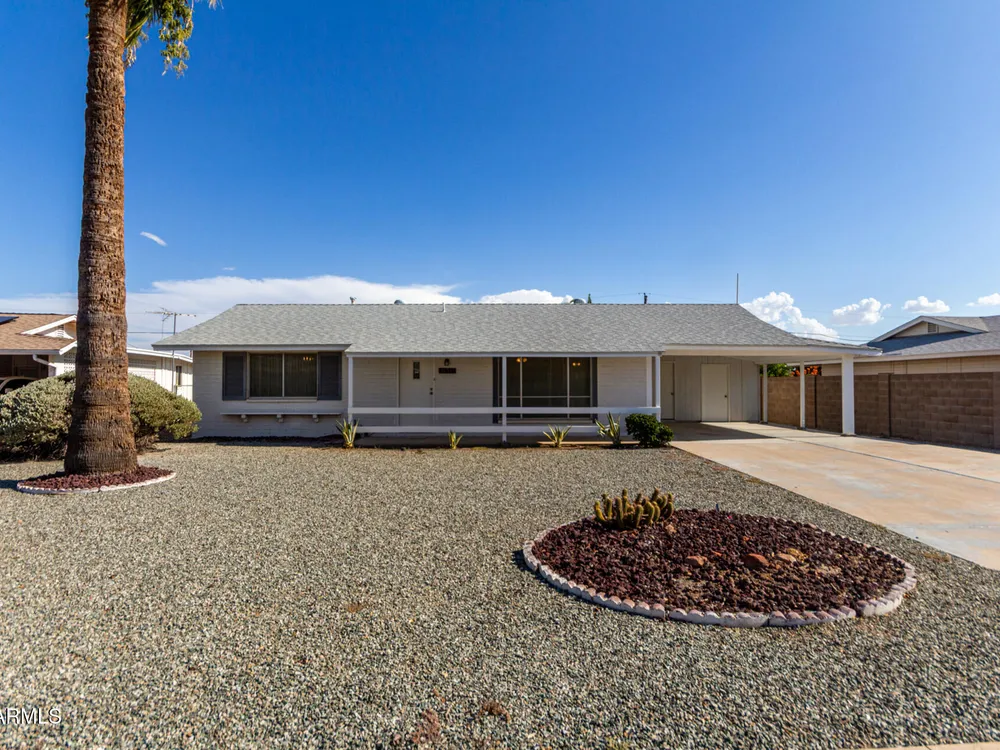 Move-in ready! Become the proud new owner of this recently renewed home in Sun City! This North/South-facing property provides carport parking and mature landscape. Find a large living room featuring tile flooring, tons of natural light, and fresh paint throughout. Entertain guests in style in the formal dining room. The kitchen displays stainless steel appliances and ample cabinet space. Impeccable primary bedroom offers a peaceful atmosphere for restful nights, complete with a bi-folding closet and a private bathroom with a glass step-in shower. Fantastic Arizona room is perfect for relaxing or enjoying a coffee that has its own mini split unit for your comfort. Create lasting memories in the spacious backyard. Don't miss this great opportunity!