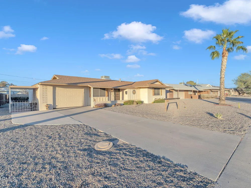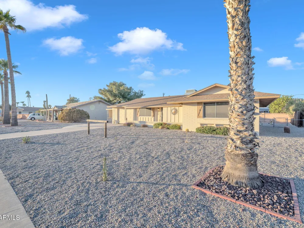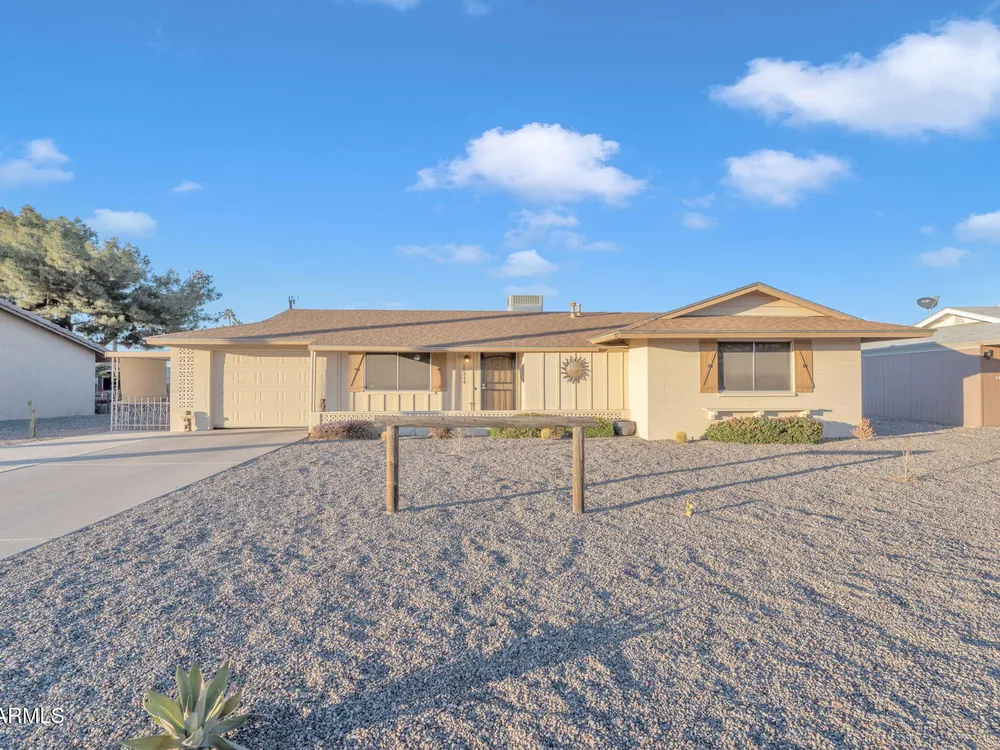 Welcome to this delightful 2-bedroom, 1.75-bath home with a versatile den or hobby room, perfectly situated on a desirable north/south-facing lot in the heart of Sun City, Arizona. Located just a few blocks north of the South Golf Course, this home combines comfort, convenience, and peace of mind, with key updates already completed. The low-maintenance front and back yards make outdoor living effortless, while the fully fenced backyard ensures privacy and provides a secure space for your pets to roam freely. Sun City offers an unmatched lifestyle for active 55+ living, featuring 8 golf courses, 8 recreation centers, tennis and pickleball courts, a dog park, and a vibrant array of clubs and activities. This move-in-ready home is your gateway to enjoying all the incredible amenities Sun City has to offer. Don't miss this opportunity to live the dream in this beautiful home!