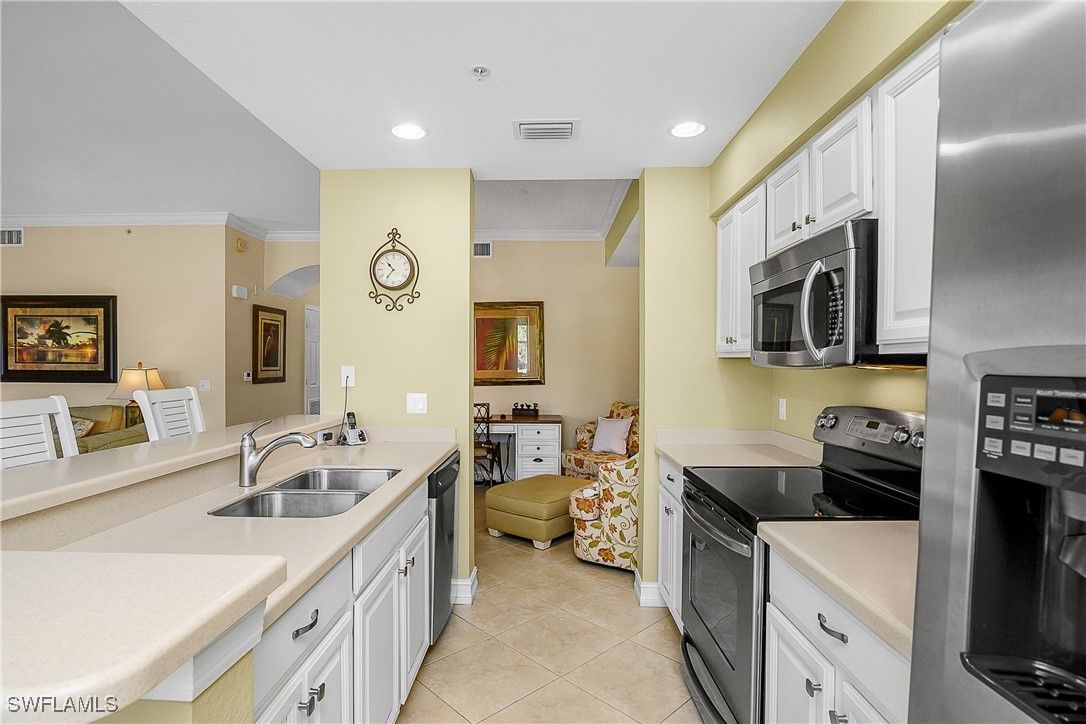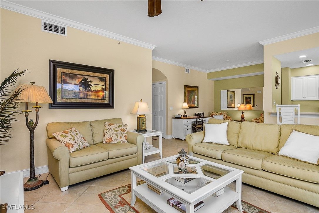Step into luxury with this beautifully furnished, turnkey 2-bedroom, 2-bath Brookside condo at the Terraces in Heritage Bay—where every day feels like a vacation. Perfectly positioned for panoramic views of the shimmering lake, scenic golf course, and tranquil preserve, this residence offers an unmatched blend of comfort and elegance. Enjoy morning coffee or evening cocktails on the screened, tiled lanai while soaking in the scenery. Inside, the bright, open floor plan is enhanced with white kitchen cabinets, crown molding, oversized baseboards, upgraded bedroom carpets, designer lighting, and stylish window treatments. Recent upgrades include a brand-new AC and water heater (2024) for worry-free living. Everything you need is within easy reach: an elevator, nearby storage, and covered parking just steps away. Plus, you’re just a short walk to one of five satellite pools. Heritage Bay isn’t just a community—it’s a lifestyle destination. Ownership includes full access to 27 holes of championship golf, 7 Har-Tru tennis courts, 2 pickleball courts (with more on the way), and a modern, staffed fitness center. The $10MM enhancement project has elevated the club to true resort status, featuring a stunning zero-entry pool, 3 bocce courts, a vibrant social calendar curated by a full-time activities director, and the Cabana—an outdoor dining oasis. Wrap up your day with friends at the expanded Grille Room, perfect for casual elegance and lively gatherings. This is more than a home—this is your personal retreat in paradise.
