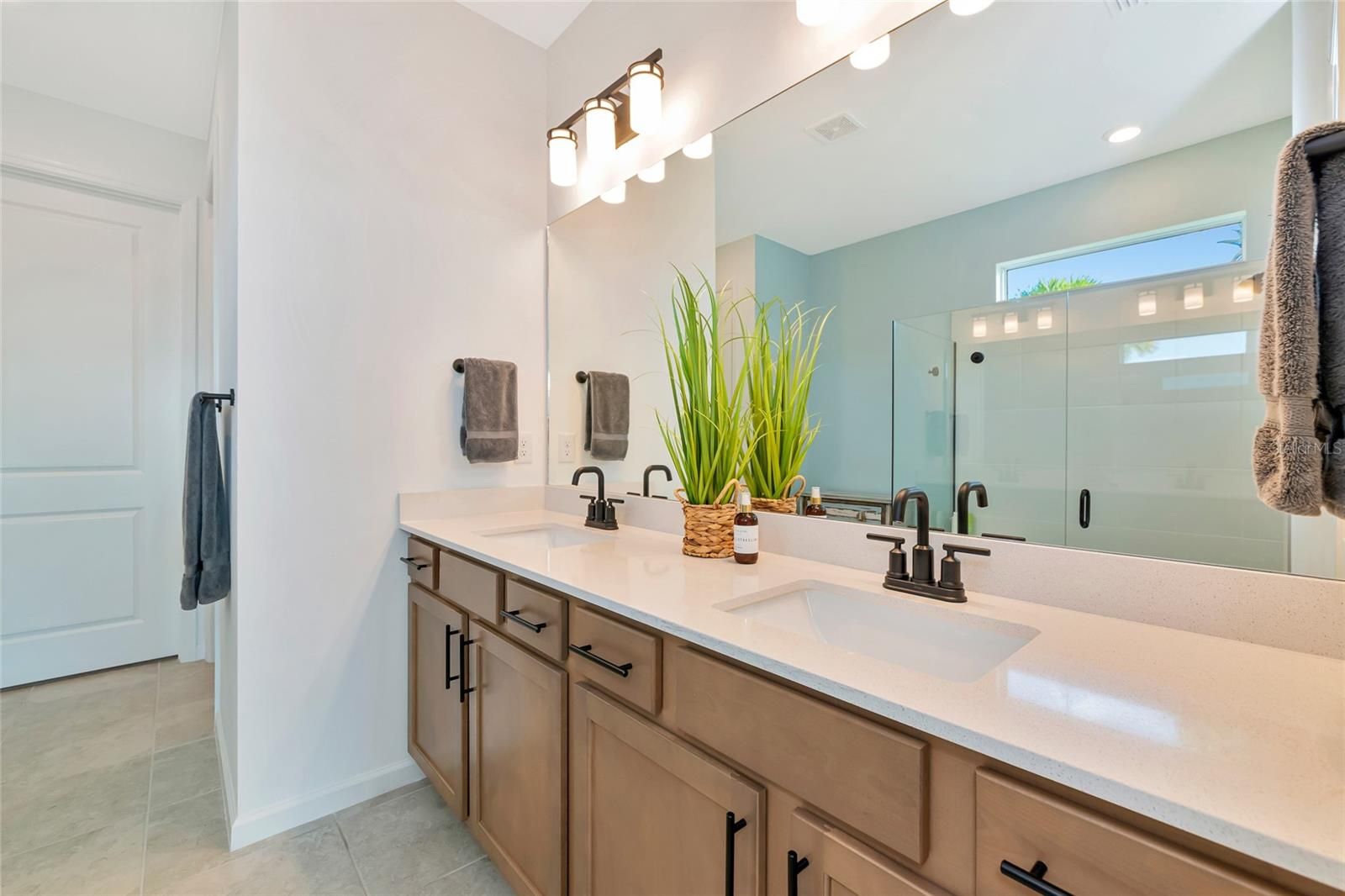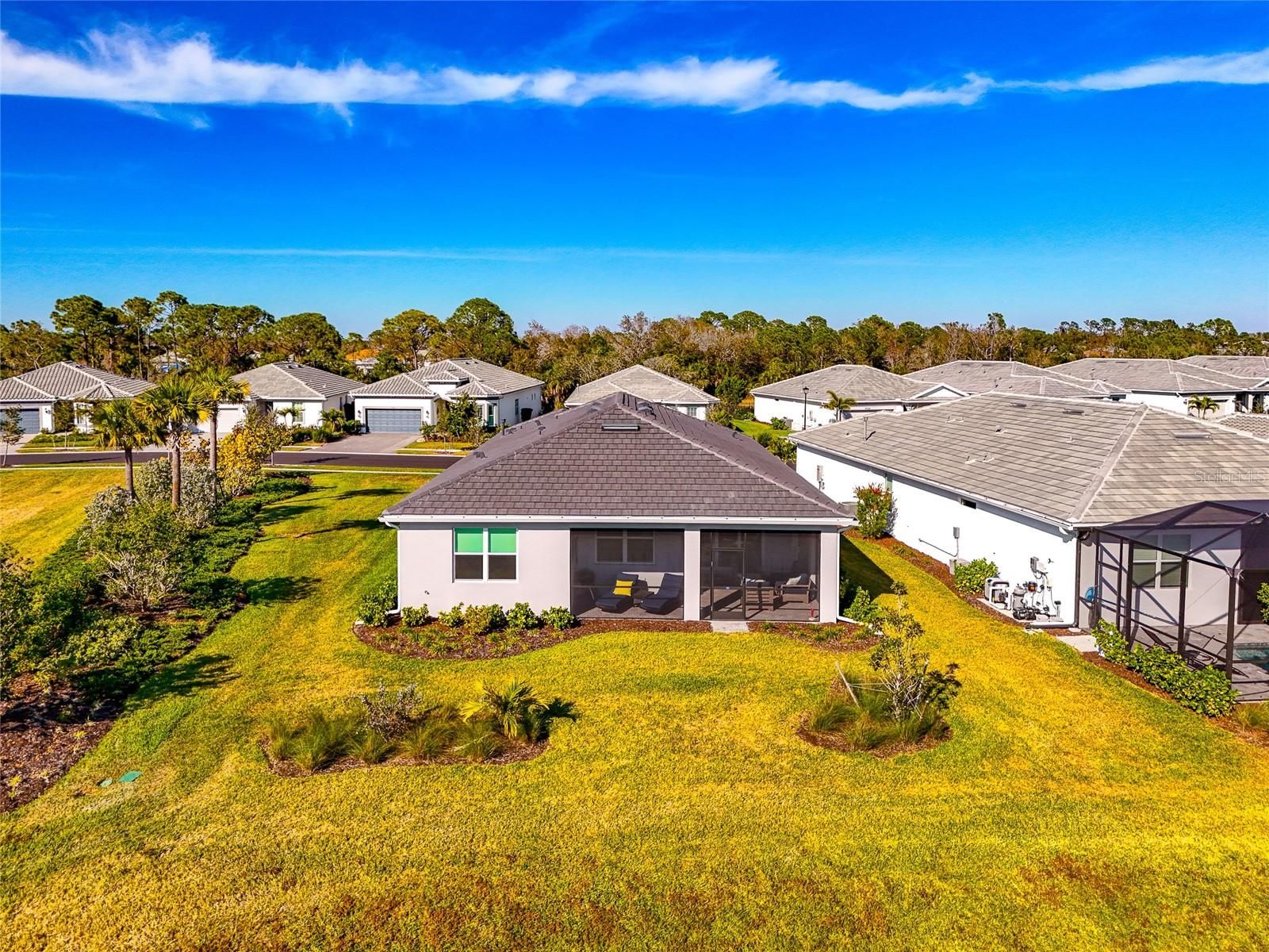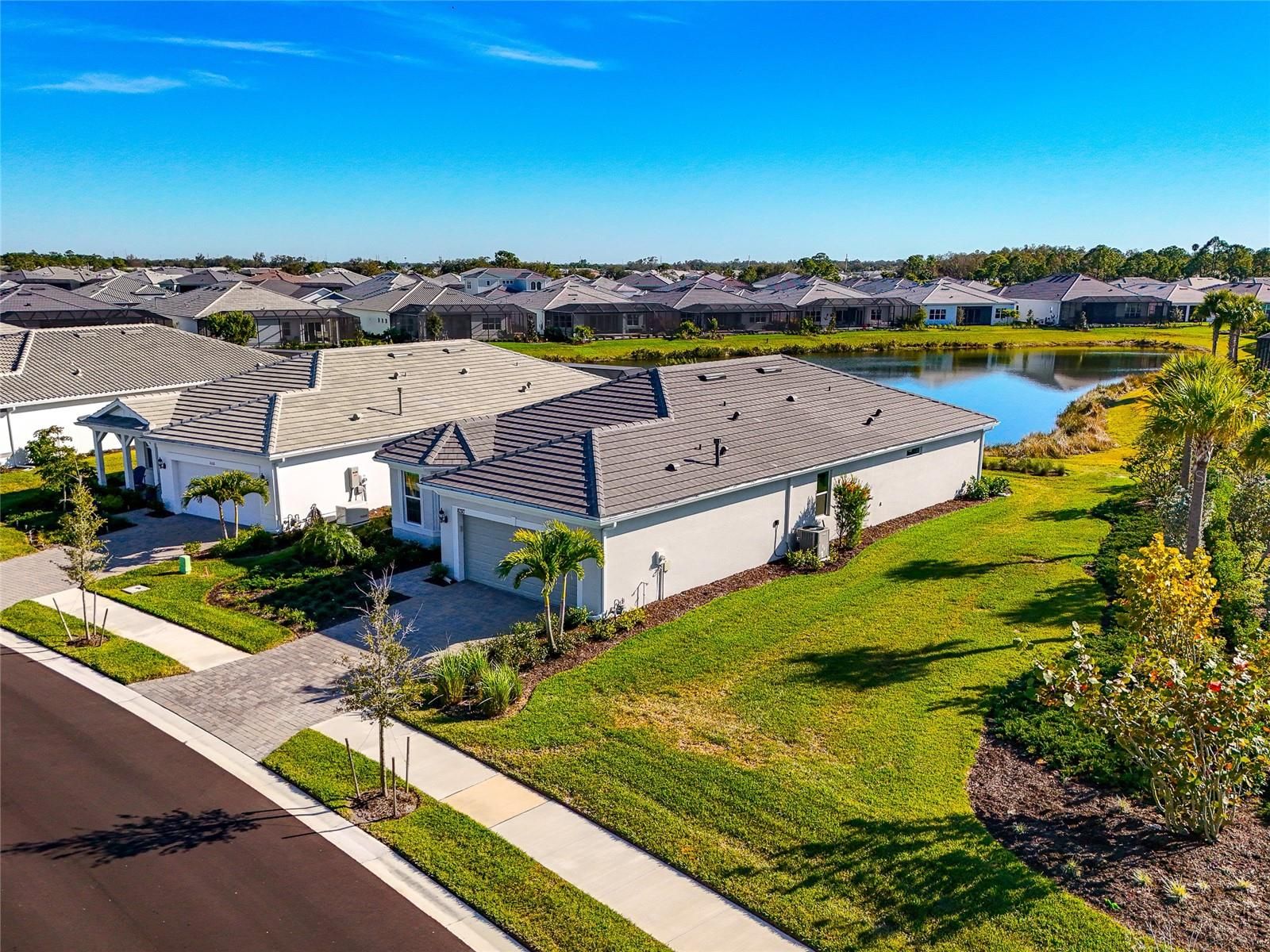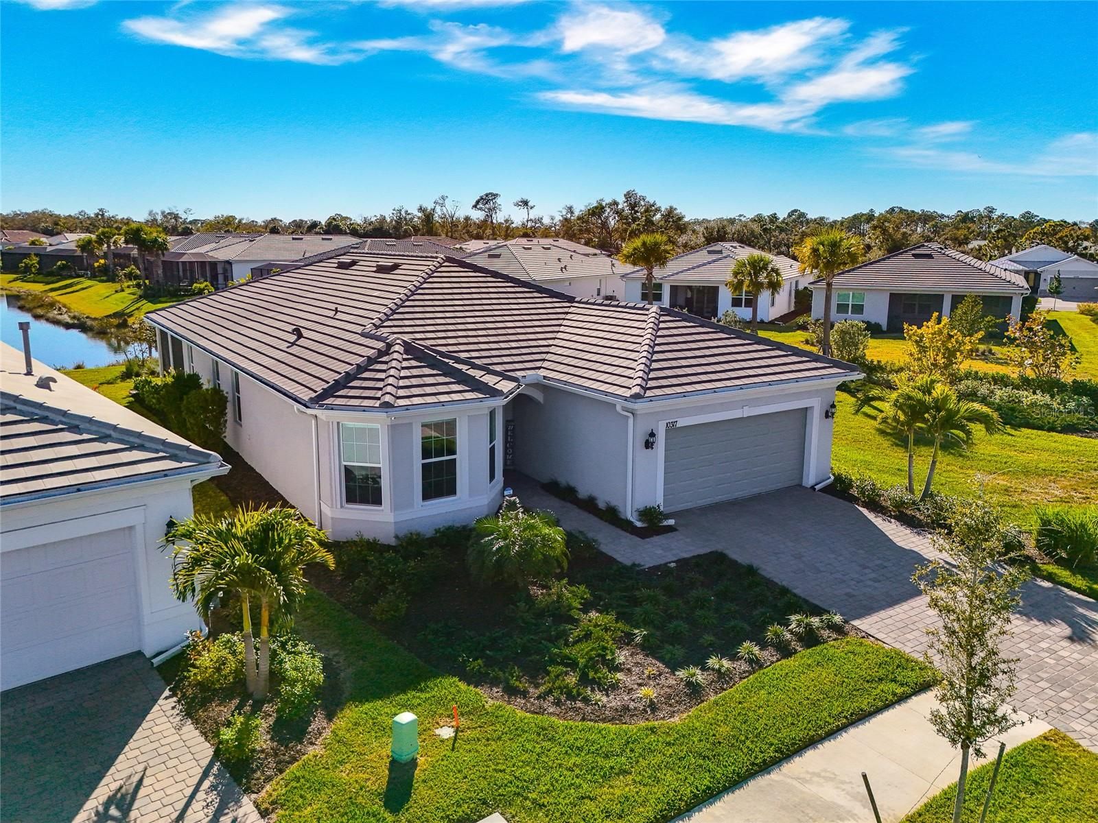 Welcome to this beautifully appointed 3 bedroom 3 bath Mystique model home located ON THE WATER in the highly desirable Beachwalk by Manasota Key community. ONLY 2.5 MILES TO THE BEACH. This thoughtfully designed home offers a bright, open-concept layout that blends comfort, style, and everyday functionality ideal for embracing the Florida lifestyle. The spacious kitchen serves as the heart of the home, featuring 42' white shaker cabinets, Quartz countertops, center island and modern stainless steel appliances, all flowing seamlessly into the main living and dining areas. The 8 FOOT DOORS and Natural light enhances the airy feel, creating a warm and inviting atmosphere throughout. DECORATVE WALL MOLDINGS add to the chic beachy vibe. IMPACT GLASS WINDOWS & DOORS. The private primary suite provides a relaxing retreat with a well-appointed bathroom and walk-in closet, while the additional bedrooms and flex living space offer versatility for guests or a home office. Designed with indoor/outdoor living in mind, EXIT THE ZERO CORNER DOORS TO THE EXTENDED LANAI is an inviting outdoor space perfect for enjoying morning coffee, evening sunsets, or entertaining friends and family. Enjoy a resort style lifestyle which includes the ON SITE HIGH TIDE TIKI BAR, the Waterline upscale restaurant (opening in 2026), 21 sports courts for PICKLEBALL, tennis, and bocce ball, a resort style pool with beach entry and attached lap pool, amenities center, Cafe', fitness center, boardwalk, Veterans memorial park, community garden, dog park, and miles of trails. The full time activity directors ensure a vibrant and engaging social calendar. Conveniently located near some of Florida’s most beautiful beaches, boating, exceptional dining, shopping, schools, and endless outdoor recreation. This home offers the perfect blend of luxury, comfort, and location, so don't miss your opportunity to live in Paradise!