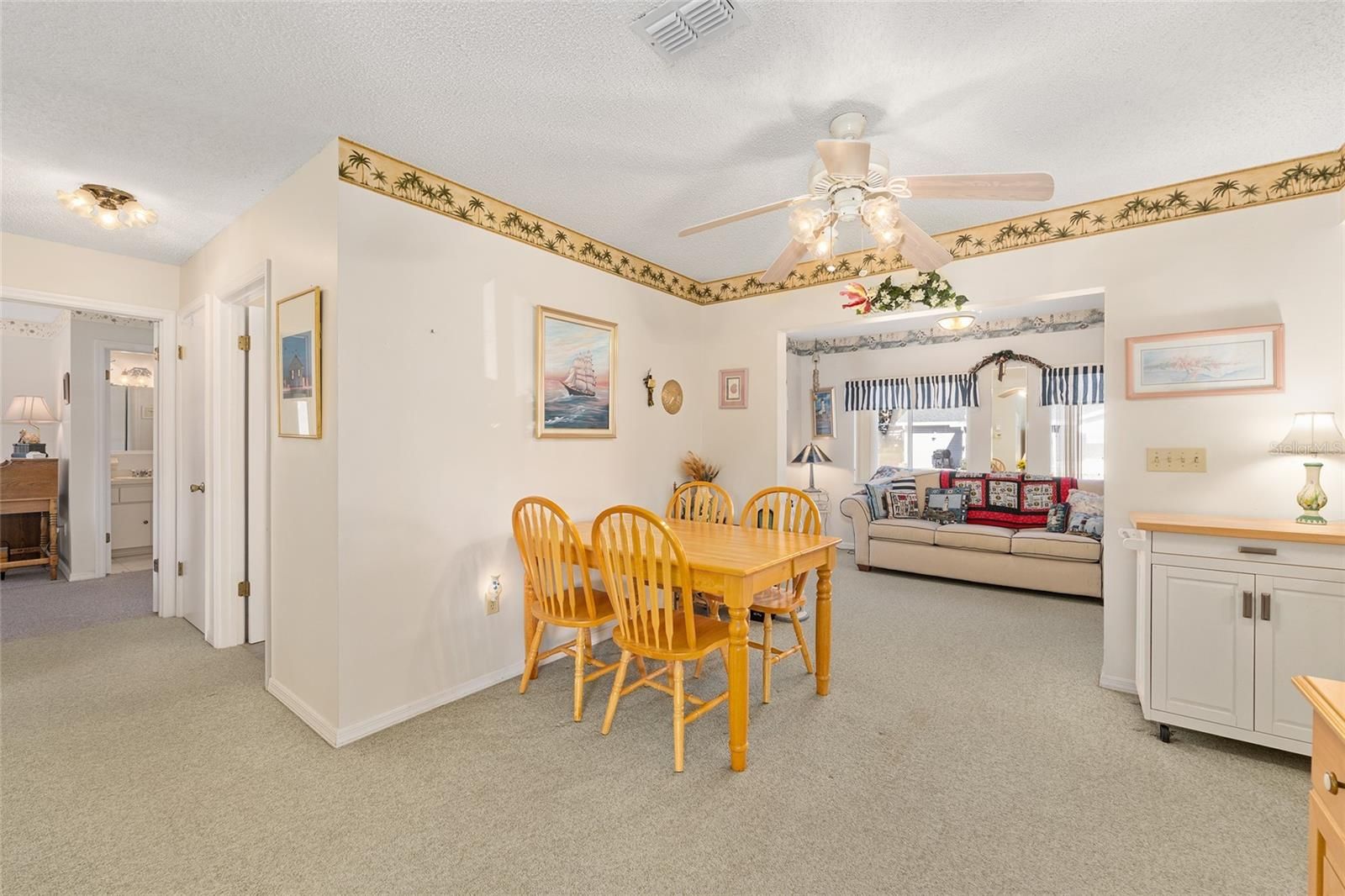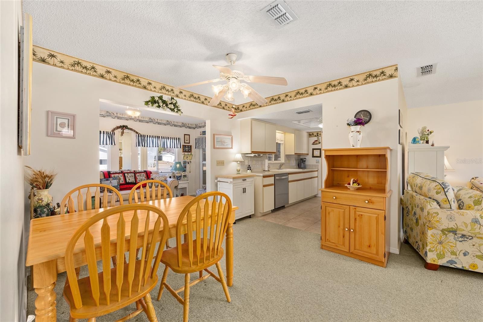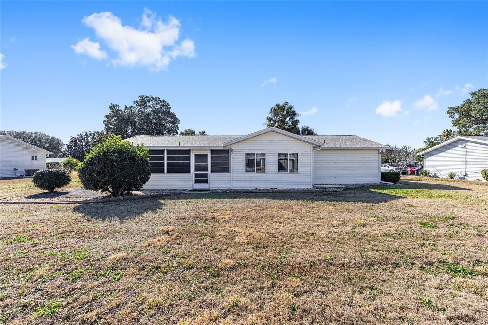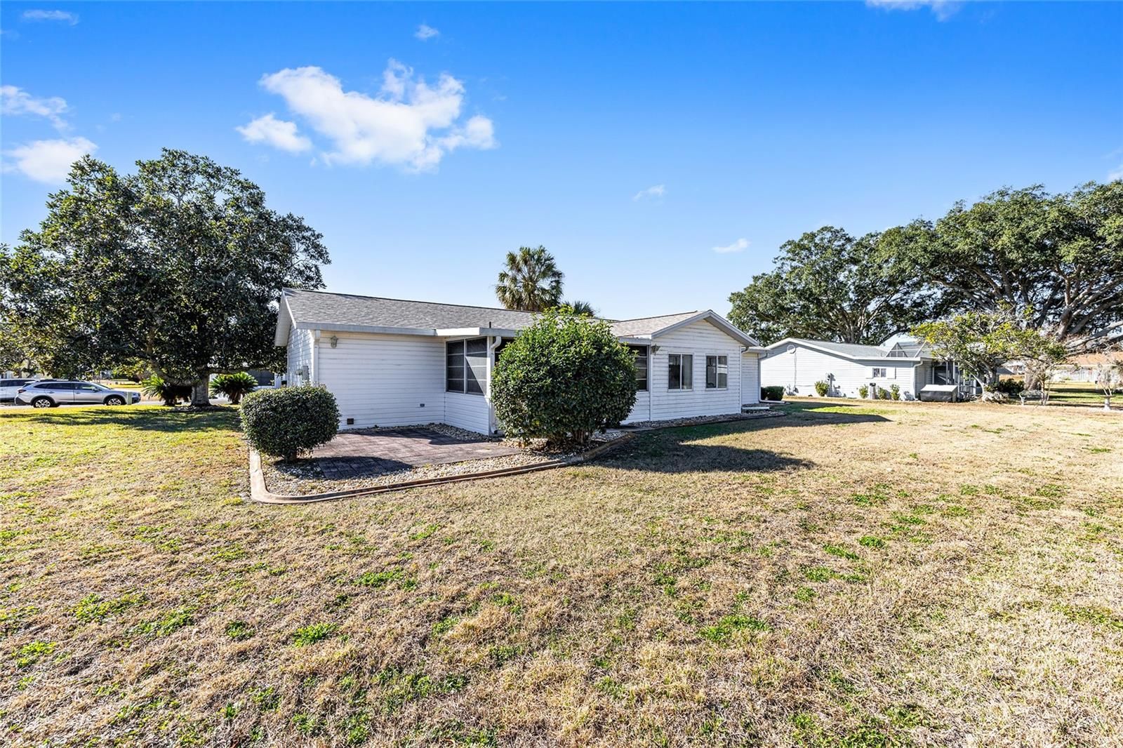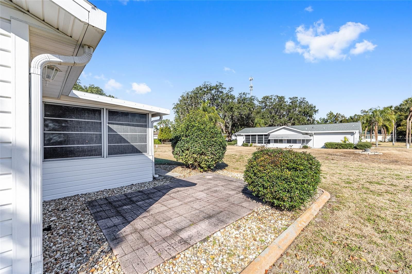Nestled in the heart of the serene 55+ gated community of SPRUCE CREEK SOUTH this charming PECAN model offers comfortable Florida living. You'll enjoy proximity to shopping centers and restaurants making errands and dining out a breeze. The house boasts a (2026) BRAND-NEW ROOF and (2026) new REFRIGERATOR and DISHWASHER, ensuring worry-free maintenance. This spacious floor plan has 2 Bedrooms and 2 Bathrooms. The Primary Bedroom features a ceiling fan and walk-in closet and En-Suite Bathroom with walk-in shower and built-in linen closet. The Guest Bedroom is equipped with ceiling fan and closet with extra shelving. The open living-dining area flows seamlessly into the Florida Room and Lanai, filling the home with natural light and providing extra space for morning coffee, relaxing, hobbies and year round comfort. The 2 car garage (including washer and dryer) has 2 ceiling fans with entry to the Lanai and Kitchen. The back yard paver patio is perfect for barbeques and gatherings and the generous flat yard is ready to be fenced for pets, play or gardening. The covered front porch with planter, landscaped beds with rock mulch and concrete edging add to the charm of this home. Situated in the friendly community of Spruce Creek South with amenities of a clubhouse, pool, golf course, pickleball, tennis courts and many social activities you'll also enjoy easy access to shopping, dining and entertainment - plus golf cart access for fun trips to nearby plazas. Don't miss this lovely home in this active community that is a perfect blend of comfort, convenience and Florida charm! ROOF-2026 - HVAC-2004 - 1,143 Sq.Ft. Home comes Partially Furnished.