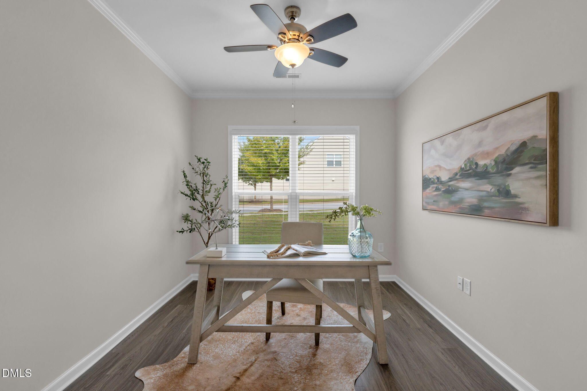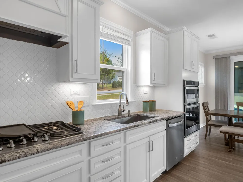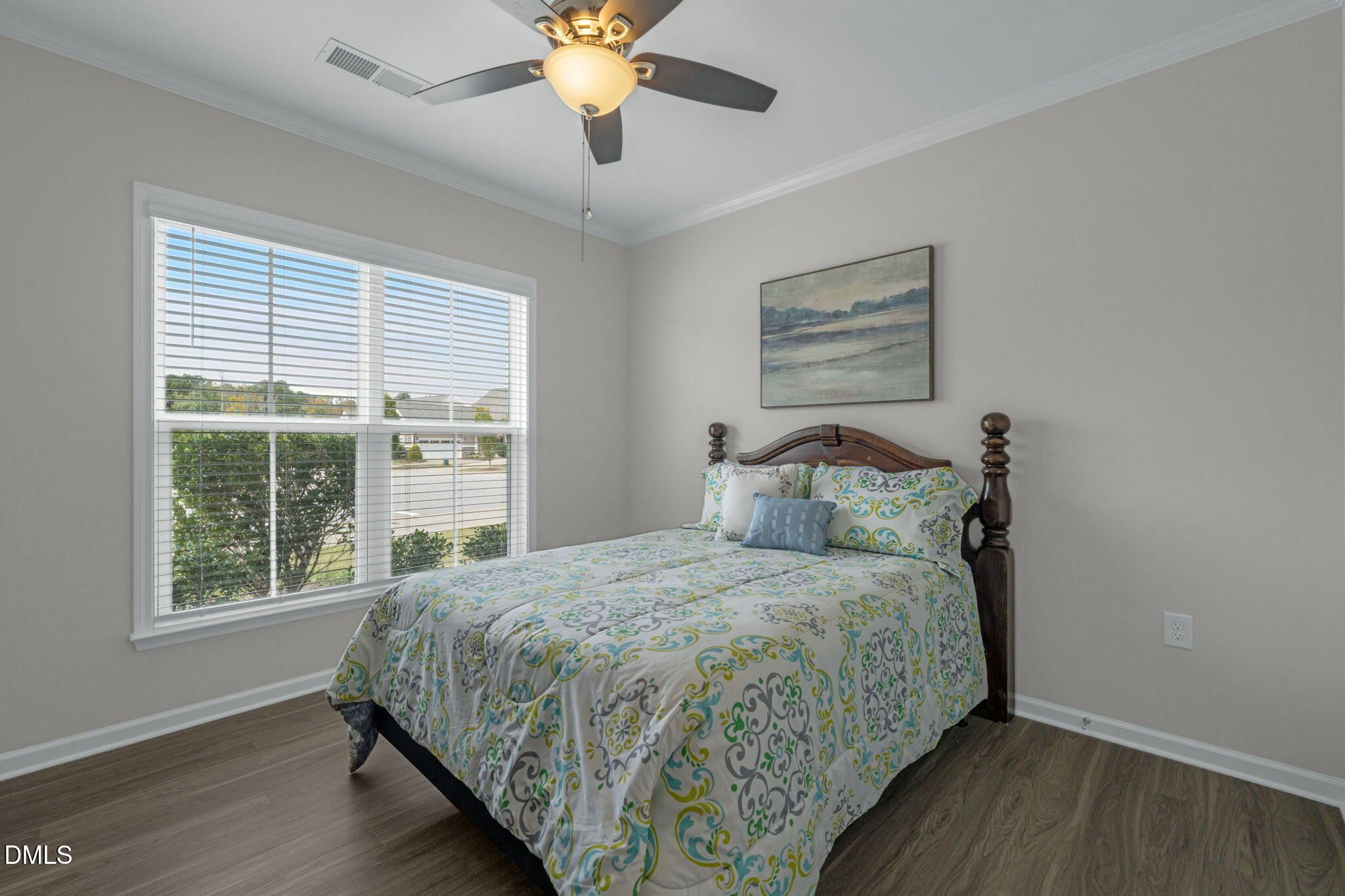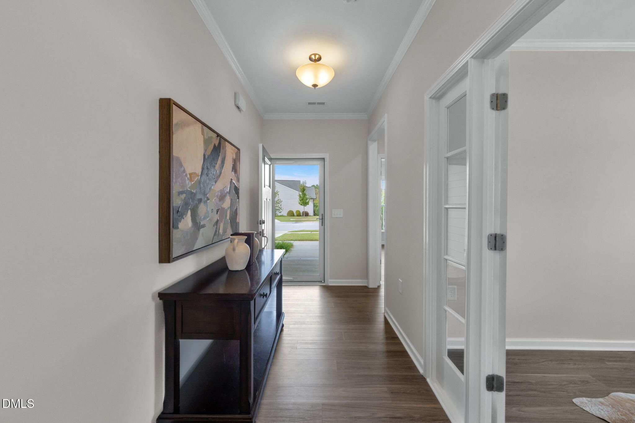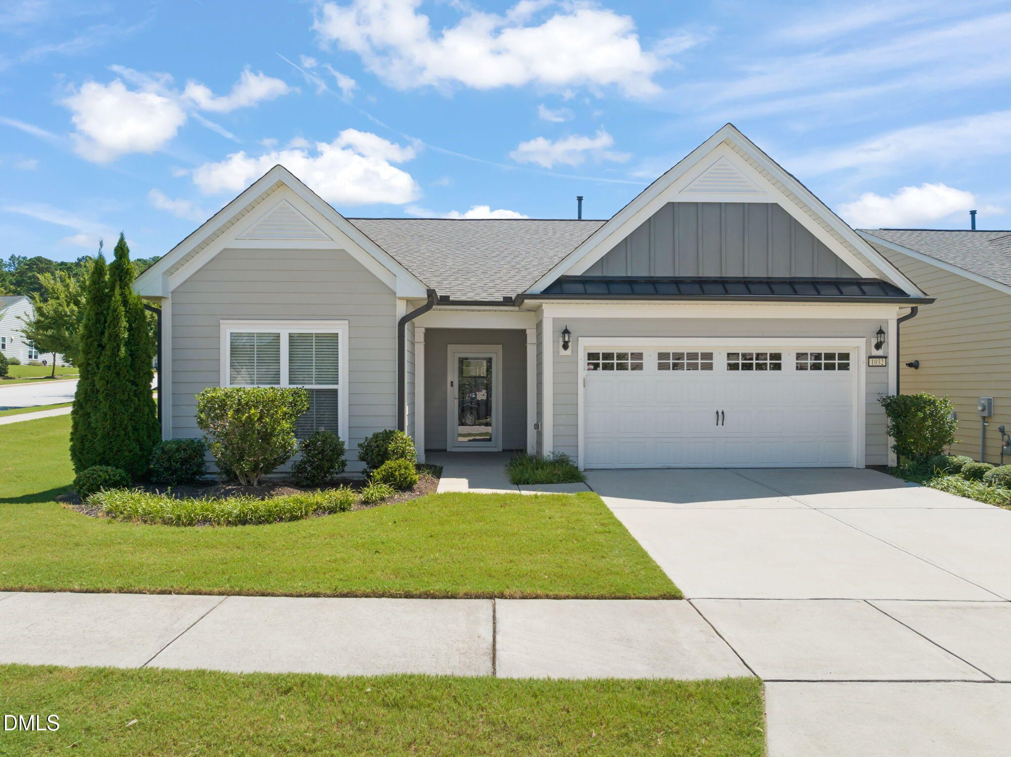 Discover one of the finest and best-value move-in ready ranch homes currently available in Wake Forest. Conveniently located in the premier and sought-after adult community of Del Webb at Traditions, this impeccably maintained and upgraded home boasts many custom features and recent updates, including new interior paint, fully finished garage with custom shelving and epoxy floor coating, a security/home automation system and much more. Featuring large rooms, high ceilings, an open floor plan, and beautiful and durable LVP throughout, this home creates a welcoming atmosphere perfect for everyday living and entertaining guests. The modern kitchen is sure to satisfy the culinary enthusiast, complete with a gas cooktop and wall oven, an island with additional storage and seating, granite countertops, and stainless steel appliances. Other highlights of this plan are the expansive master suite, a second guest bedroom, a dedicated home office/flex space, and an open living area that also opens up to the screened porch via a beautiful 3 panel glass doorway. Fiber cement siding ensures durability and aesthetic appeal while minimizing maintenance needs. The large 1/5 ac premium corner lot is perfect for those not wanting to feel overly squeezed between neighbors. Life in Del Webb includes access to a range of resort-style amenities, including the impressive clubhouse with fitness center and indoor pool, scenic walking trails, and well-lit streets for evening strolls. Additionally, the neighborhood's appeal is enhanced by convenient access to shopping centers, restaurants, and cafes, as well as nearby parks, recreational areas and fishing and hiking at the Reservoir. Experience the perfect blend of luxury, comfort, and convenience in this exceptional home. Schedule your visit today and see how this property stands out in Wake Forest and the Del Webb community as a premium property without the premium price.