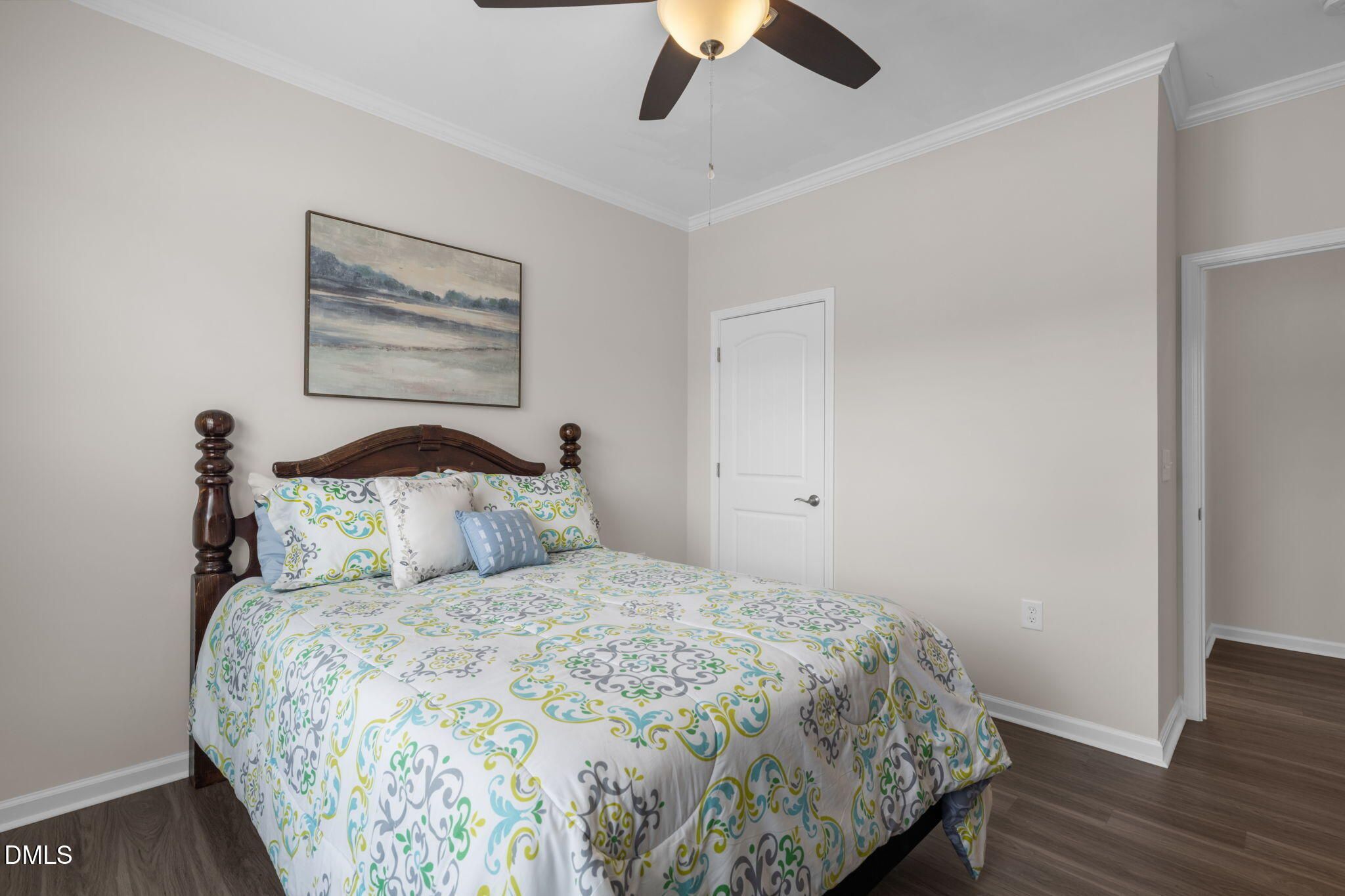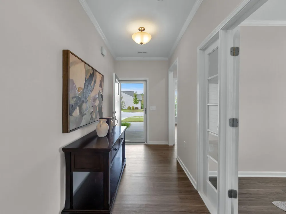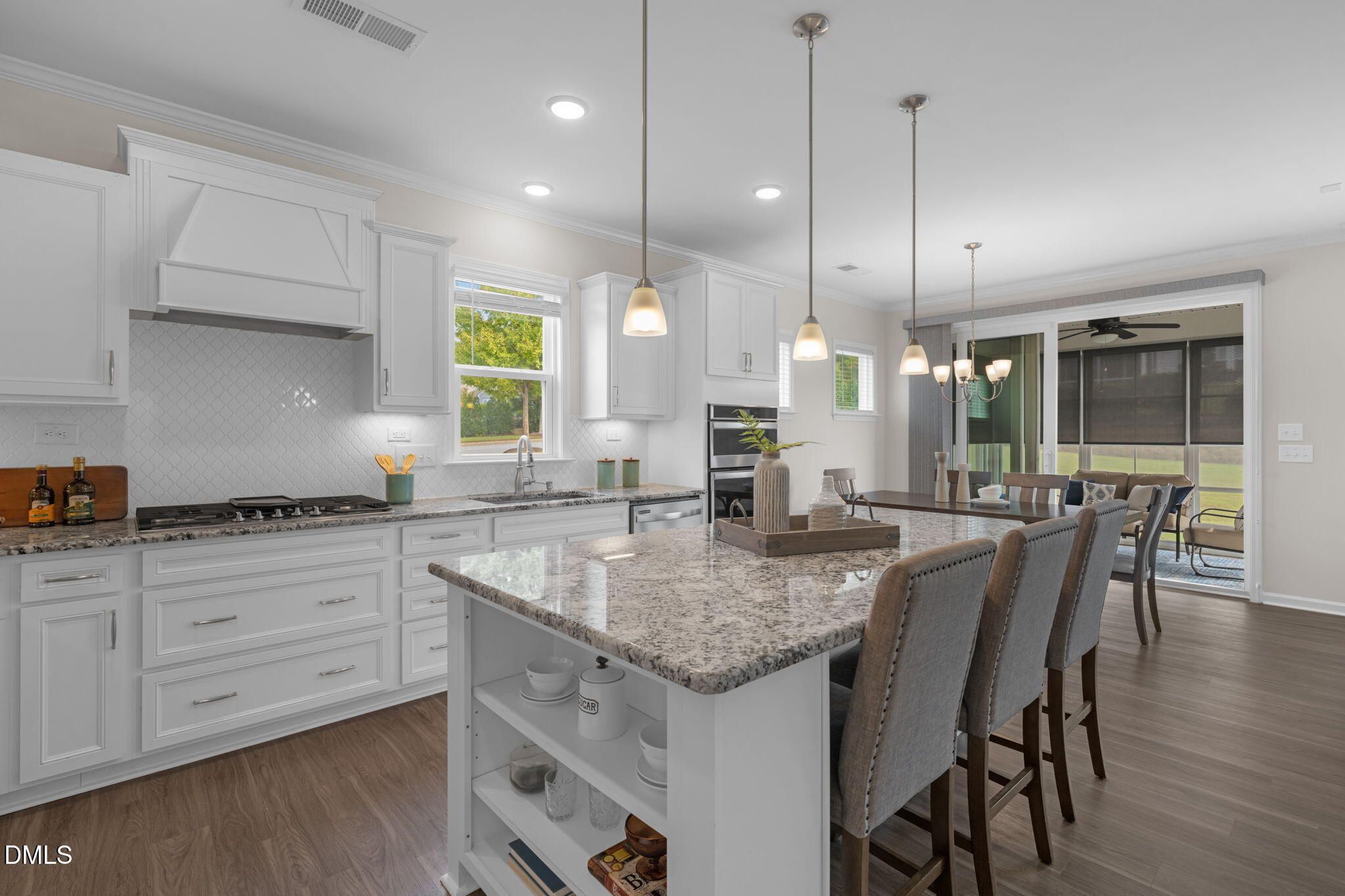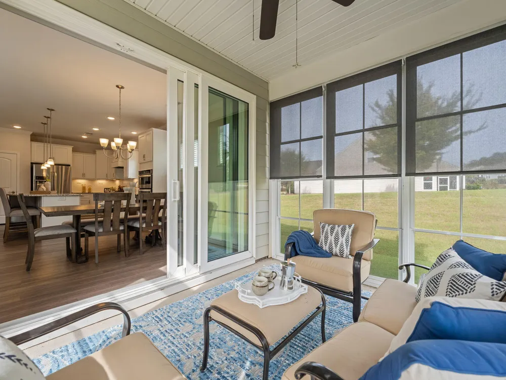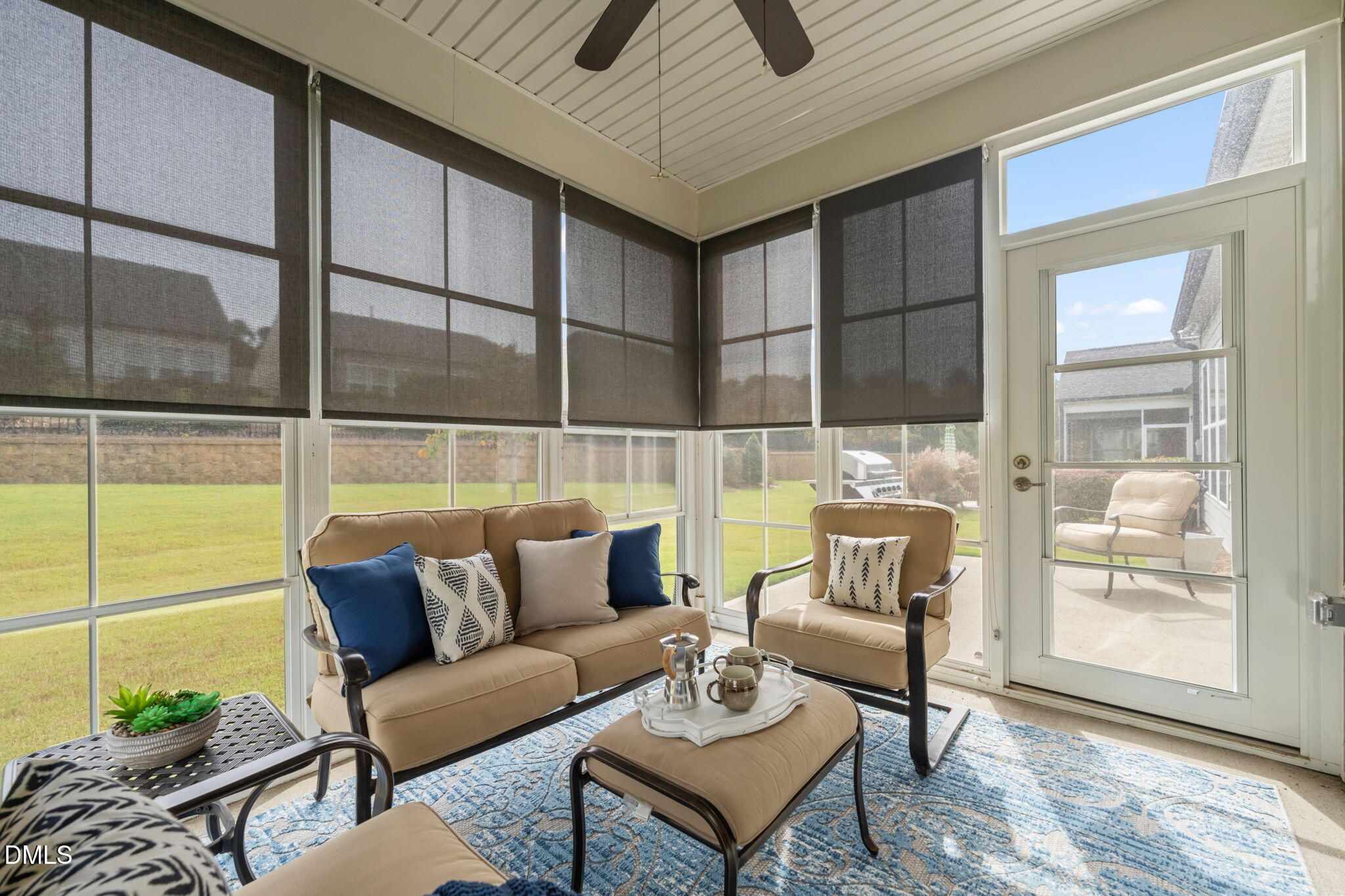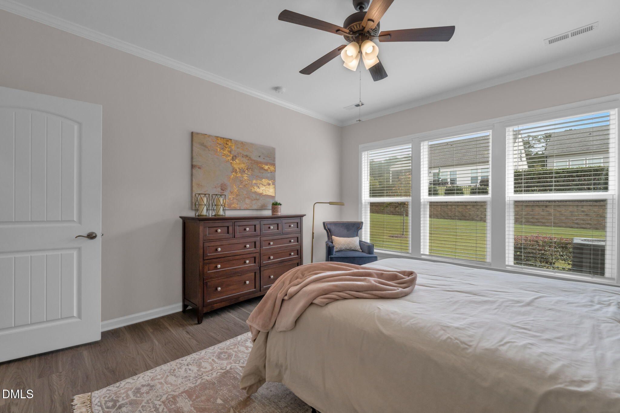 Discover one of the finest and best-value move-in ready ranch homes currently available in Wake Forest. Conveniently located in the premier and sought-after adult community of Del Webb at Traditions, this impeccably maintained and upgraded home boasts many custom features and recent updates, including new interior paint, fully finished garage with custom shelving and epoxy floor coating, a security/home automation system and much more. Featuring large rooms, high ceilings, an open floor plan, and beautiful and durable LVP throughout, this home creates a welcoming atmosphere perfect for everyday living and entertaining guests. The modern kitchen is sure to satisfy the culinary enthusiast, complete with a gas cooktop and wall oven, an island with additional storage and seating, granite countertops, and stainless steel appliances. Other highlights of this plan are the expansive master suite, a second guest bedroom, a dedicated home office/flex space, and an open living area that also opens up to the screened porch via a beautiful 3 panel glass doorway. Fiber cement siding ensures durability and aesthetic appeal while minimizing maintenance needs. The large 1/5 ac premium corner lot is perfect for those not wanting to feel overly squeezed between neighbors. Life in Del Webb includes access to a range of resort-style amenities, including the impressive clubhouse with fitness center and indoor pool, scenic walking trails, and well-lit streets for evening strolls. Additionally, the neighborhood's appeal is enhanced by convenient access to shopping centers, restaurants, and cafes, as well as nearby parks, recreational areas and fishing and hiking at the Reservoir. Experience the perfect blend of luxury, comfort, and convenience in this exceptional home. Schedule your visit today and see how this property stands out in Wake Forest and the Del Webb community as a premium property without the premium price.