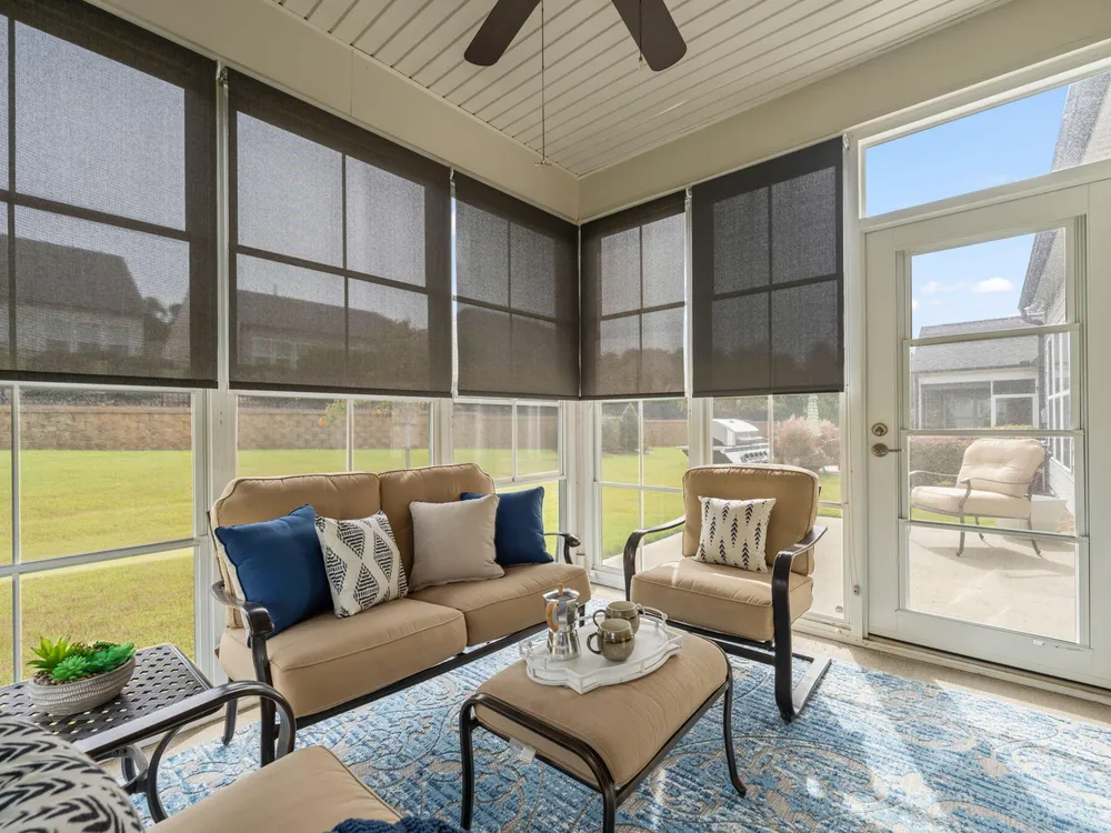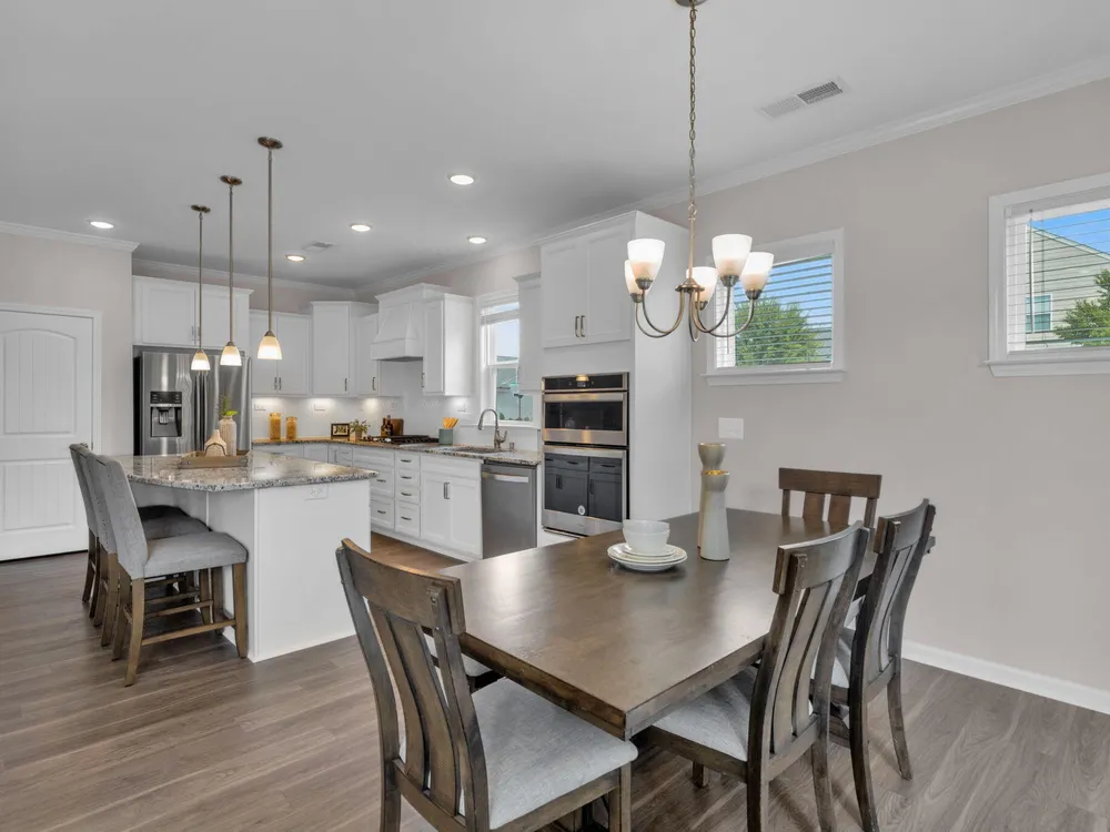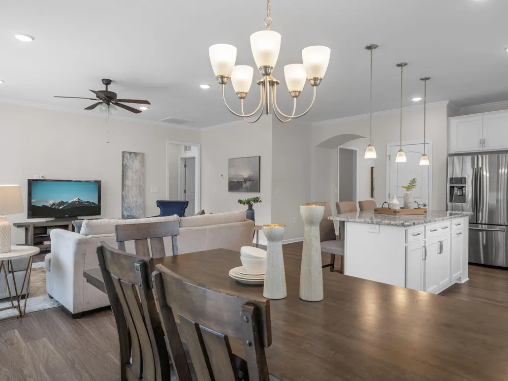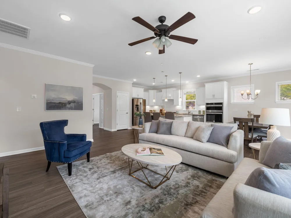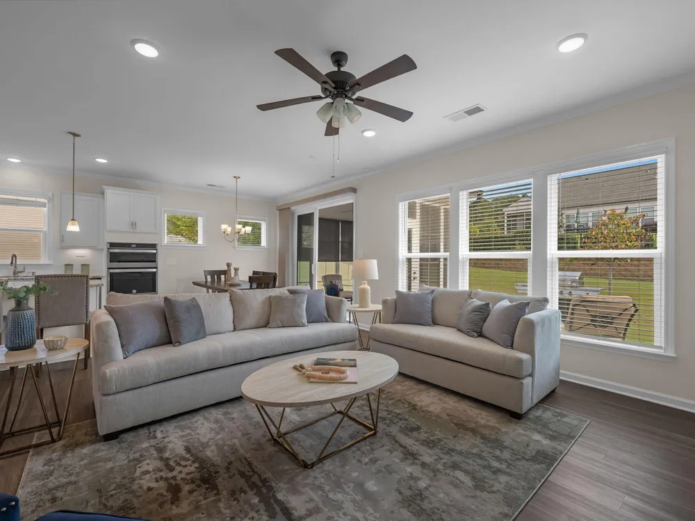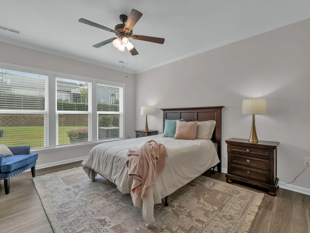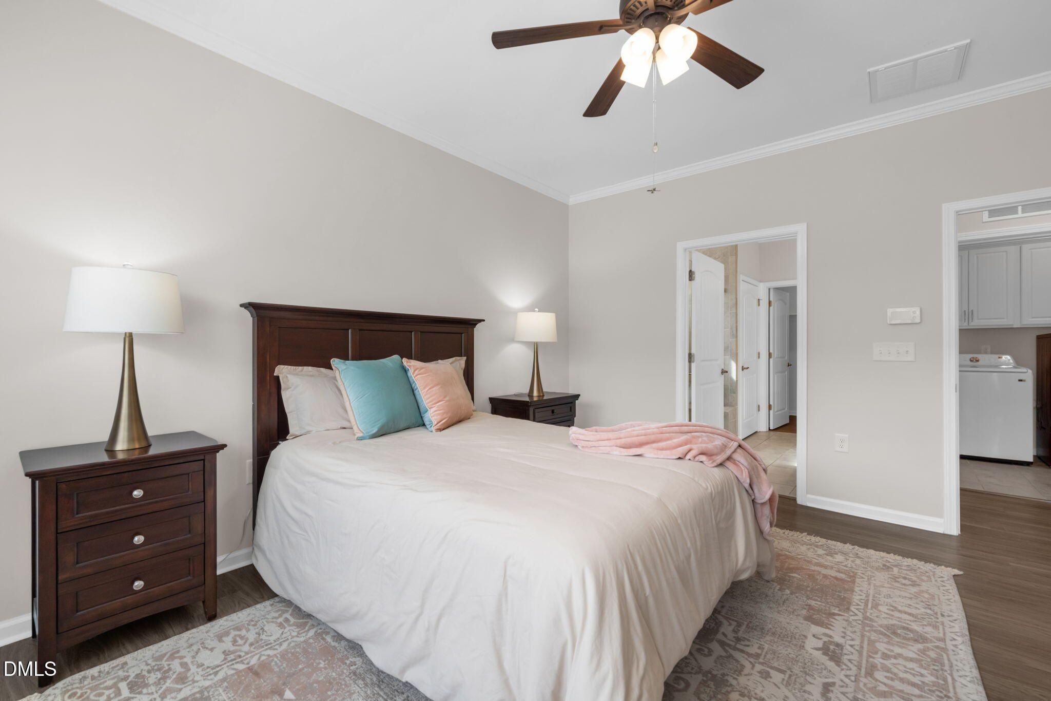 Discover one of the finest and best-value move-in ready ranch homes currently available in Wake Forest. Conveniently located in the premier and sought-after adult community of Del Webb at Traditions, this impeccably maintained and upgraded home boasts many custom features and recent updates, including new interior paint, fully finished garage with custom shelving and epoxy floor coating, a security/home automation system and much more. Featuring large rooms, high ceilings, an open floor plan, and beautiful and durable LVP throughout, this home creates a welcoming atmosphere perfect for everyday living and entertaining guests. The modern kitchen is sure to satisfy the culinary enthusiast, complete with a gas cooktop and wall oven, an island with additional storage and seating, granite countertops, and stainless steel appliances. Other highlights of this plan are the expansive master suite, a second guest bedroom, a dedicated home office/flex space, and an open living area that also opens up to the screened porch via a beautiful 3 panel glass doorway. Fiber cement siding ensures durability and aesthetic appeal while minimizing maintenance needs. The large 1/5 ac premium corner lot is perfect for those not wanting to feel overly squeezed between neighbors. Life in Del Webb includes access to a range of resort-style amenities, including the impressive clubhouse with fitness center and indoor pool, scenic walking trails, and well-lit streets for evening strolls. Additionally, the neighborhood's appeal is enhanced by convenient access to shopping centers, restaurants, and cafes, as well as nearby parks, recreational areas and fishing and hiking at the Reservoir. Experience the perfect blend of luxury, comfort, and convenience in this exceptional home. Schedule your visit today and see how this property stands out in Wake Forest and the Del Webb community as a premium property without the premium price.