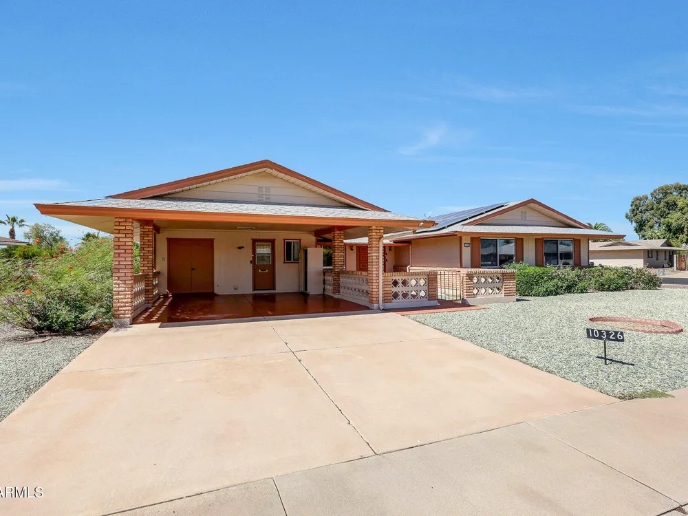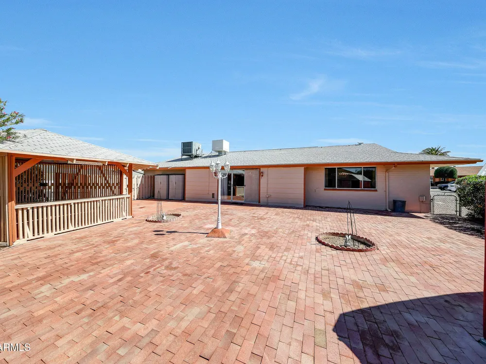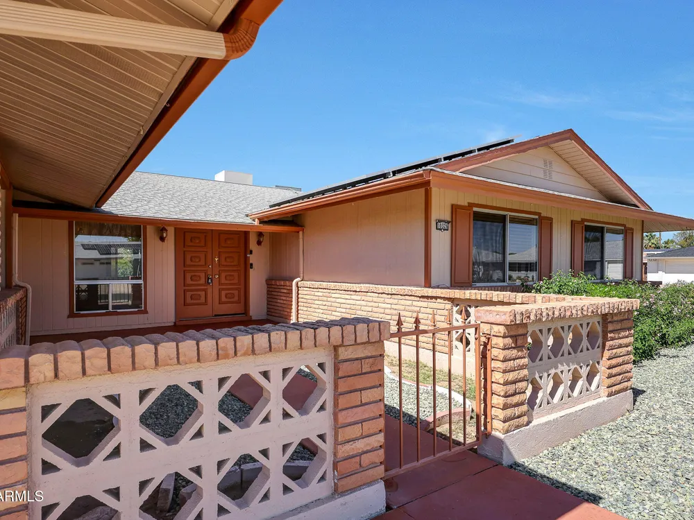 Welcome To This Expanded Buckhorn Model Home In Sun City! This Home Comes With A Fully Owned Solar System With No Monthly Payments! The Electrical Panel Has Been Updated Too, Giving You Peace Of Mind And Modern Efficiency. The Expansion Adds Extra Living Space Just Off The Living Room Where The Original Back Patio Once Was Now Making A Perfect Spot For Relaxing Or Entertaining. The Kitchen Features An Electric Cooktop, Double Oven, And A Spacious Pantry. Step Outside To A Low-Maintenance Backyard Finished With Concrete And Brick Pavers. The Yard Is Fully Fenced, Offering Both Privacy And Ease Of Care. This Is Truly A Must-See Home.