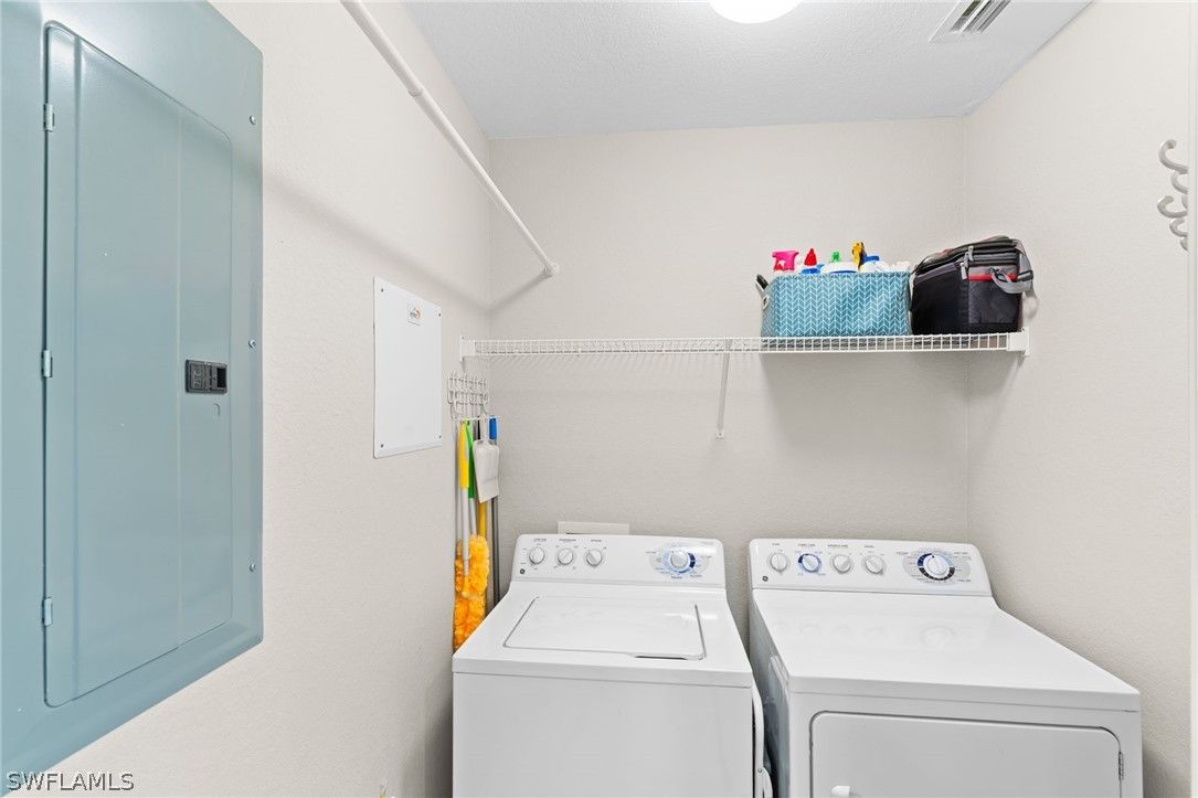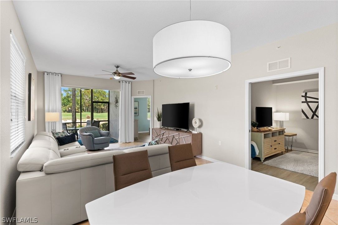 Welcome to your slice of paradise in one of Naples' most coveted bundled golf communities! This beautifully maintained first-floor end-unit in the Terraces at Heritage Bay Golf & Country Club offers the ultimate low-maintenance Florida lifestyle, complete with a bundled golf membership. That’s right - FULL and IMMEDIATE access to 27 holes of championship golf, country club living, and sub-tropical weather right at home. This spacious 2-bedroom plus den, 2-bath condominium shines bright - the open layout enhanced by additional windows that flood the home with natural light. Immaculately maintained and upgraded to your liking. Everything you need to start living at Heritage Bay Golf and Country Club. The flexible den includes a pull-out sofa, making it an ideal space for overnight guests, a quiet home office, or a cozy retreat. Best of all, the residence is sold fully turnkey with everything included - unpack and start enjoying the Naples lifestyle right away. Even the HVAC; tankless hotwater tank, flooring, and paint are all newer! This is the most private unit in the Terraces, with complete views of the water and preserve from every window - you’ll forget you have any neighbors at all! Step outside to your private, tiled, screened-in lanai overlooking the expansive preserve and lake. This peaceful vantage point is perfect for morning coffee or unwinding in the evening surrounded by tranquility and nature. And conveniently located right near the private satellite pool! The first-floor location offers the ultimate convenience—no stairs to navigate and easy parking access—plus a private storage unit just outside your front door, ideal for golf clubs, beach gear, or seasonal items. Heritage Bay stands out as one of Naples’ premier bundled golf communities, featuring 27 holes of championship golf, tennis, pickleball, bocce, a stunning resort-style pool with full-service cabana, on-site dining, a state-of-the-art fitness center, elegant Clubhouse, and a vibrant social calendar full of events. Whether you’re seeking a seasonal retreat, full-time residence, or smart investment property, this exceptional turnkey condo delivers the effortless, amenity-rich lifestyle that makes Naples so desirable. Don’t miss your chance—schedule your private showing today!