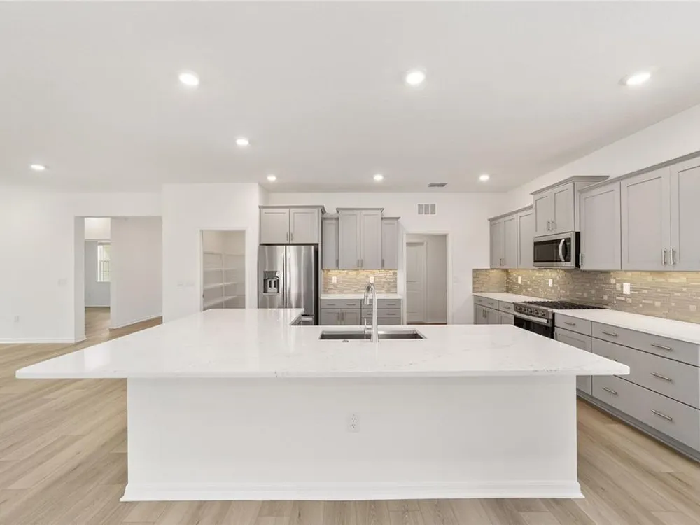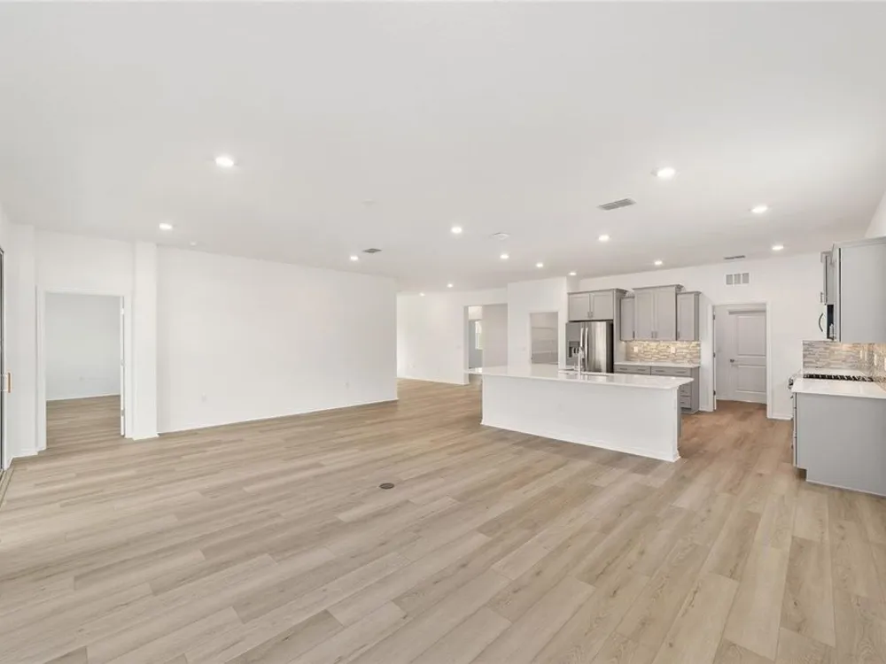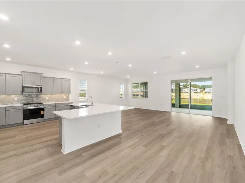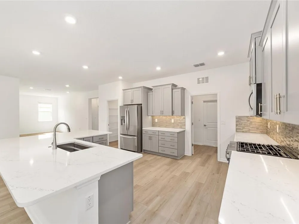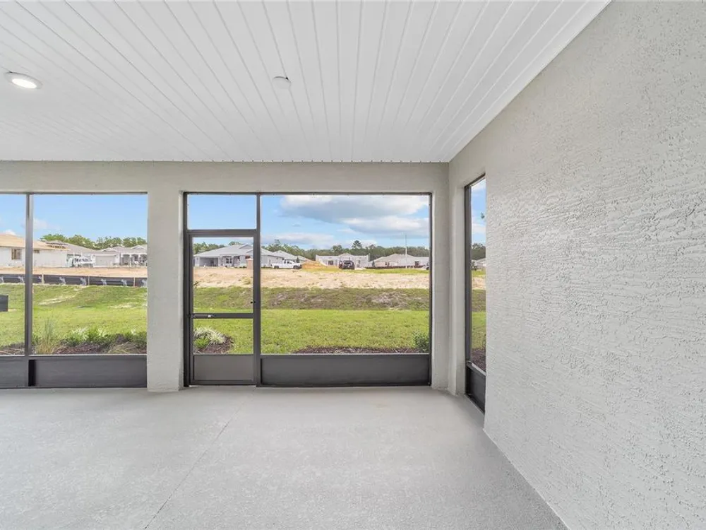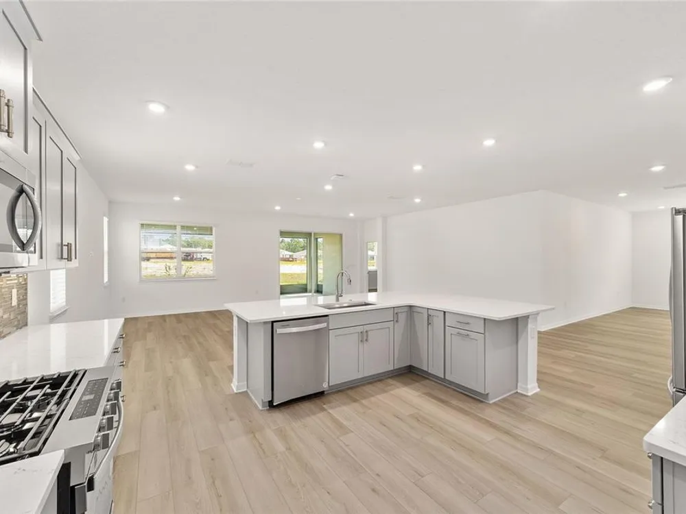 Charming Wisteria Model in LongLeaf Ridge at On Top of the World! Step into this beautifully designed 3-bedroom, 2-bath home with a 2-car garage and open-concept floor plan, offering both style and functionality. The gourmet kitchen is a chef’s delight, featuring staggered cabinets with crown molding, quartz countertops, tile backsplash, stainless steel appliances, under-cabinet lighting, a walk-in pantry, and a spacious L-shaped island perfect for entertaining. The living area flows seamlessly to the screened lanai through sliding glass doors, creating a natural indoor-outdoor connection. The primary suite provides a serene retreat with an ensuite boasting dual quartz vanities, a tiled walk-in shower with glass door, a linen closet, and a large walk-in closet. The second bedroom features a spacious closet and is conveniently located near the second bathroom, which offers an extended single-sink vanity with quartz and a tiled tub/shower combination. Enjoy the vibrant, active lifestyle of On Top of the World, a premier 55+ community in Ocala with world-class amenities, golf, swimming, fitness, and endless social opportunities designed for enjoyment and connection.