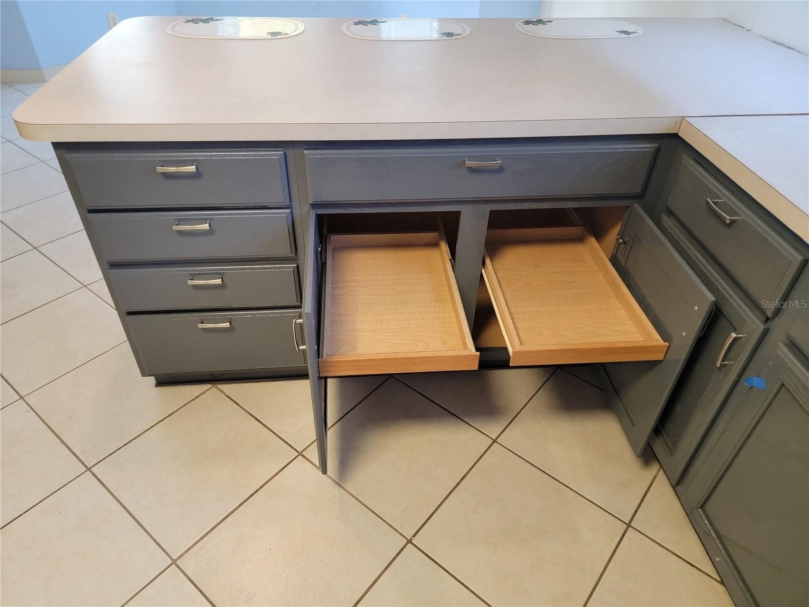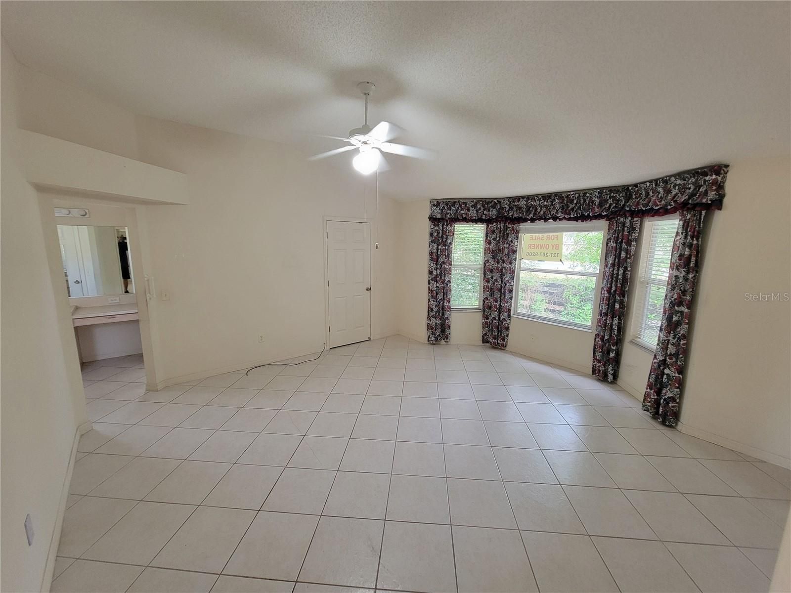 - Accessibility Features, Ceiling Fan(s), Eat-in Kitchen, High Ceilings, L-Shaped Dining Room, Living/Dining Room, Open Floorplan, Main Level Primary, Solid-Wood Cabinets, Split Bedrooms, Thermostat, Walk-In Closet(s)