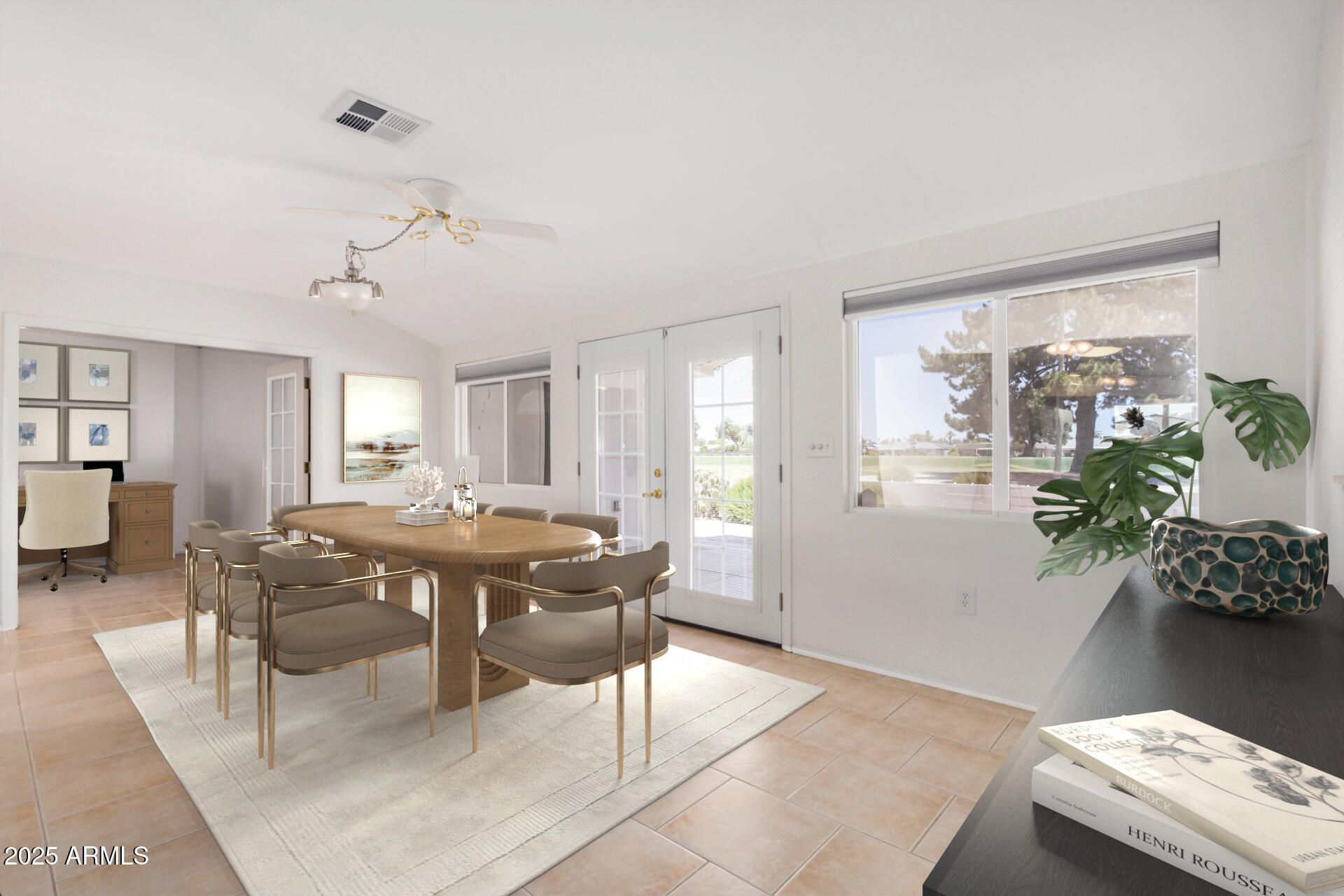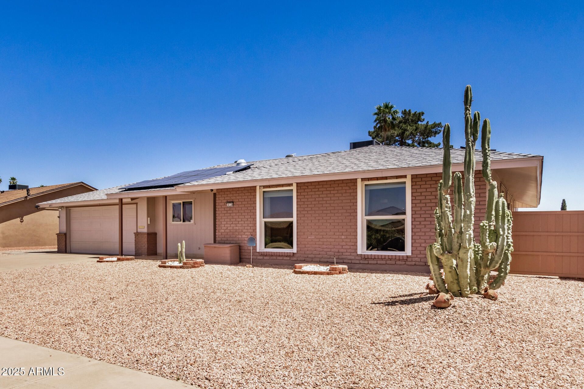 Golf Course Living at Its Finest! Immaculate 3-bed, 2-bath home with open-concept living, golf course views, and a spacious covered patio perfect for entertaining or relaxing. Enjoy a modern kitchen with breakfast bar, a private office with French doors, and a spacious Primary Suite with patio access. The Solar will save you money all year long. Low-maintenance landscaping in both the front and backyard means you'll spend more time enjoying and less time working. For golf lovers or hobbyists, the Golf Cart Garage includes extra space perfect for a workshop or storage. Don't miss your chance to live where every day feels like a vacation!