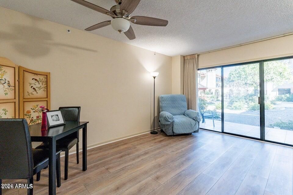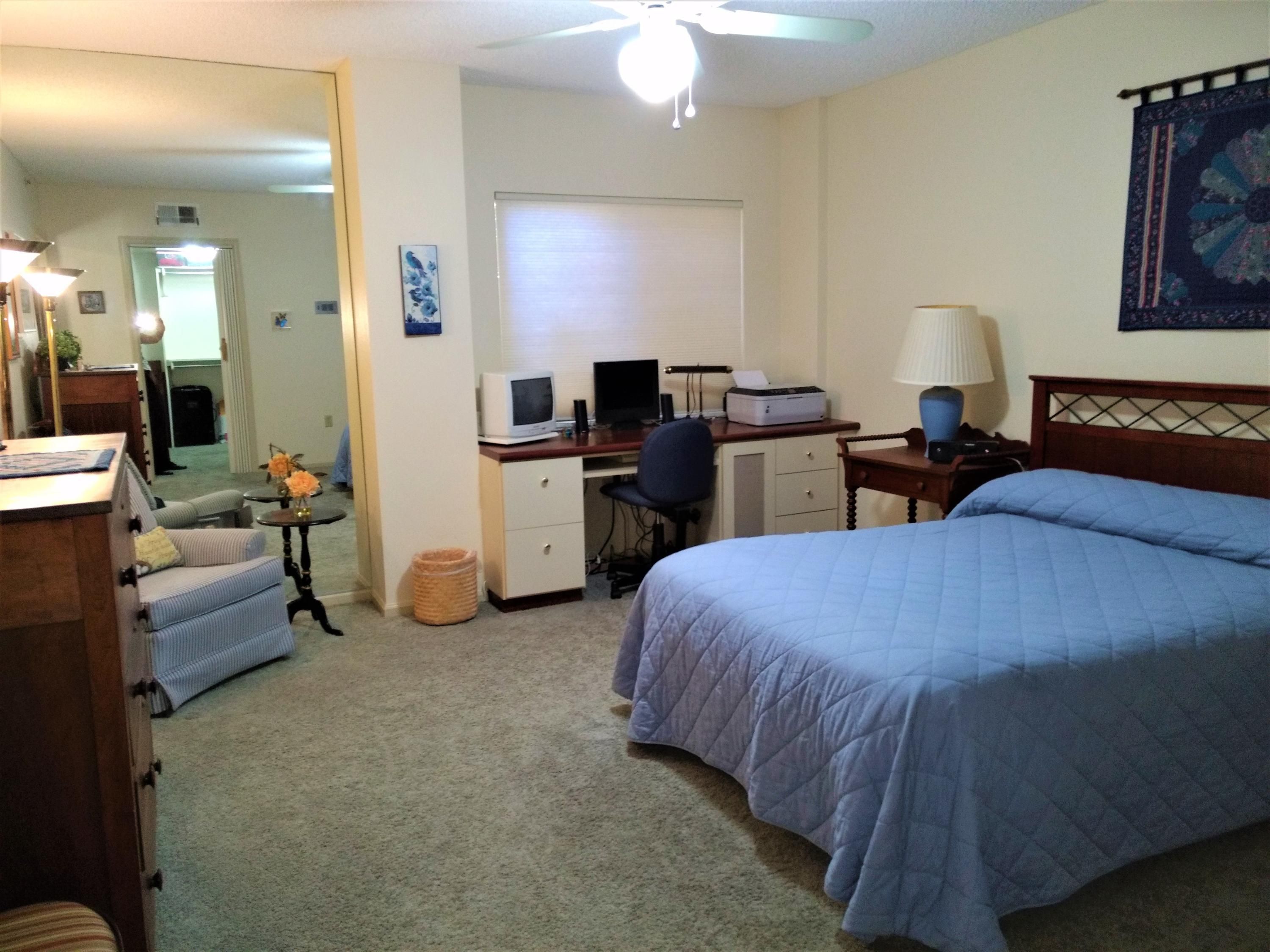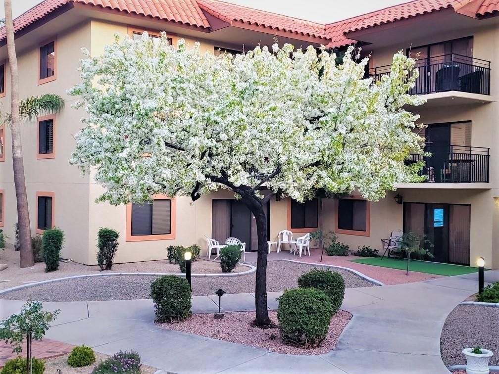 This is the largest 1 bedroom, 1 bath floorplan at El Dorado! Three huge closets total with an extra large bedroom and living room. Did I mention the view! Gorgeous courtyard with gazebo view make this home so special and it is also right next door to an in house lounge/card table area. This home includes outstanding amenities like 30 four course meals a month, weekly housekeeping with linen service, chauffeured transportation with airport service, basic cable TV, RN on staff 24/7 for emergencies and advocacy, water, sewer, trash, covered parking, complimentary laundries, activities galore and so much more!