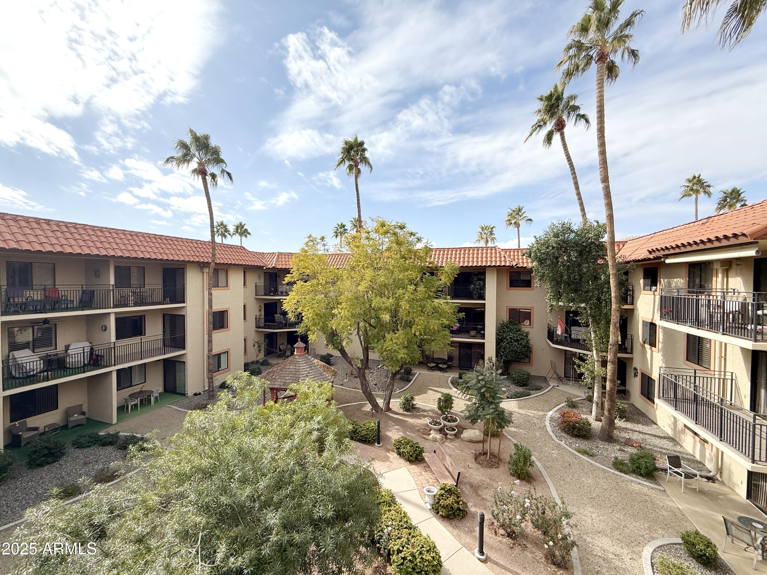 Delightful 1-bedroom, 1-bath condominium is located on the 3rd floor with no neighbors above, offering peaceful privacy and a view of the serene Secret Garden Courtyard. It features vertical blinds, carpet and tile in all the right places, and a spacious walk-in closet in the bedroom. Enjoy the many amenities and services El Dorado has to offer, including a daily meal in the dining room, weekly housekeeping, chauffeured transportation, and access to fitness and activity programs. On-site amenities include tennis courts, a pool, a spa, an exercise room, a barber/beauty shop, a library, and both card and TV rooms. Monthly HOA is $1,725/MO. Second person $790 additional.