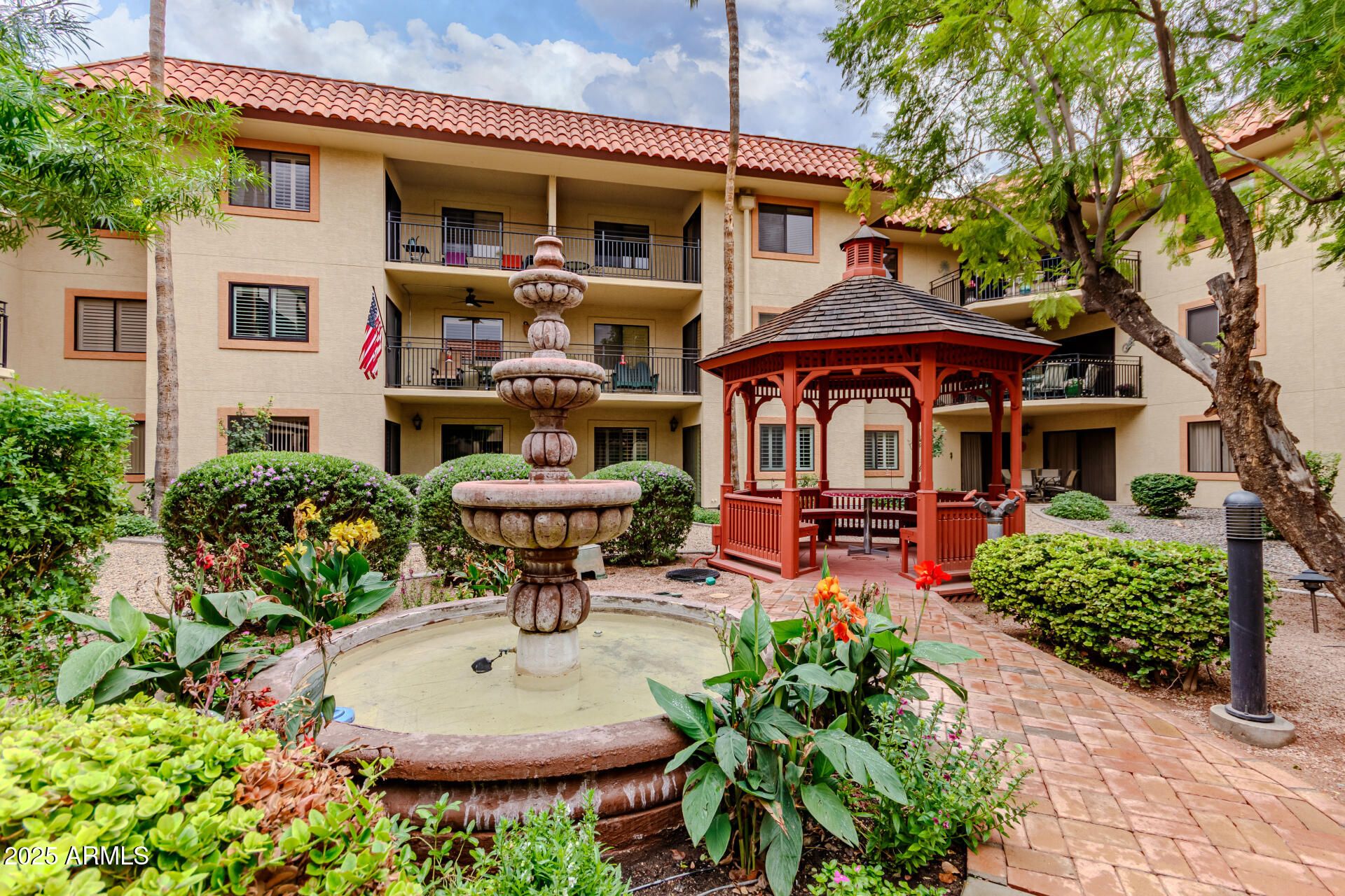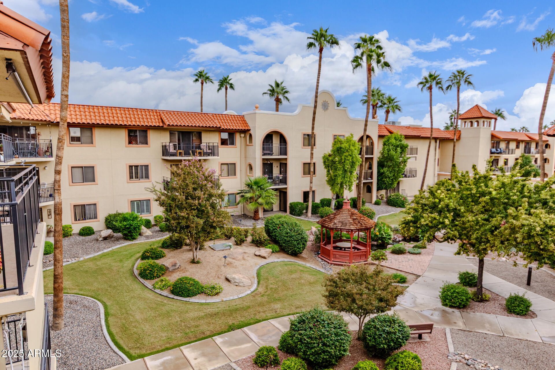 Want Independent Living but with some support when needed. El Dorado is the answer for a much lower price than assistive living. Spacious1 bedroom/ 1 full bath remodeled condo. 2 huge walk-in closets. Custom Shutters. It is light, and bright, with a private patio over looking beautiful grounds with flowering plants, gazebos and koi ponds. It includes internet, cable TV, emergency call system, nurse, transportation, & housekeeping. Days are filled lively events, creative activities, and off-site shuttle excursions. El Dorado offers resort-style dining with fabulous salads, sandwiches, steak, salmon and chicken, wine and dessert. There is a pool, spa, lakes w/ fishing, beauty salon, barber, library, billiards, fitness center & game rooms all on site. Plus Sun City has tons of amenities Situated on the south shore of sparkling Viewpoint Lake, El Dorado offers an unparalleled location conveniently located in the heart of Sun City. Close by you'll find shopping, churches, country clubs, medical offices, and recreation centers offering tennis, golf and many more activities. Banner Boswell Memorial Hospital, offering excellent medical and emergency care and an award winning "heart center," is located directly across the street. For relaxing and enjoying life, there is no better community than El Dorado of Sun City.