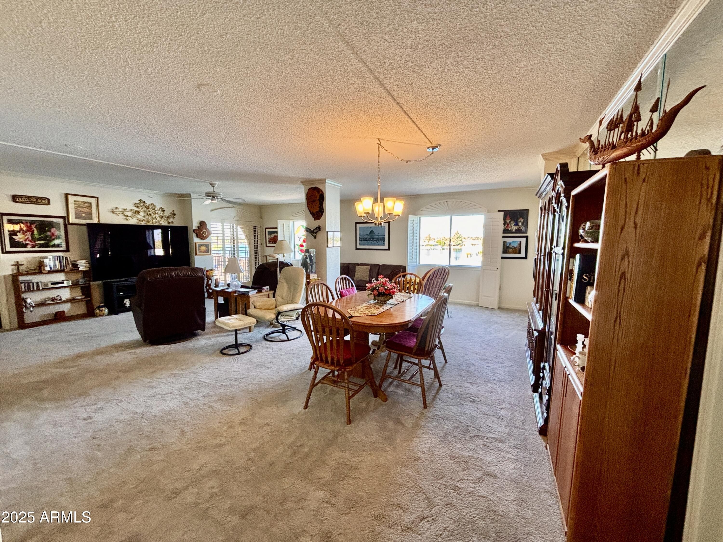 WOW, WHAT A VIEW! A BREATHTAKING 3RD FLOOR PANORAMA OF VIEWPOINT LAKE AND THE MOUNTAINS TO THE NORTH! 55+ INDEPENDENT LIVING IN THIS 2 BR, 2BA LAKEFRONT PROPERTY! BEAUTIFUL 3RD FLOOR CONDO FEATURES 2 BALCONIES, A DEN WITH EXTRA CLOSET & CABINETS, PLANTATION SHUTTERS ON ALL WINDOWS & DOORS, NEWER CARPET, KITCHEN WITH ALL APPLIANCES & NEWER FRIDGE, CLOSE TO ELEVATOR & LAKEFRONT LOUNGE AREA! AND IT GETS EVEN BETTER WITH Amenities for El Dorado including one four course gourmet meal a day, weekly housekeeping with linen service, basic cable, chauffeured transportation for medical & airport, nurse or security 24/7, activities and entertainment galore, fitness center, library, remodeled entertainment area, & much more! Monthly fee is $2,725 for one, 2nd person is $830 SEE ADDL INFO BELOW Enjoy cruise ship style living at El Dorado! Your deed includes home OWNERSHIP! and 1/249th of the common areas of El Dorado in this non-profit organization. This community is located on Viewpoint Lake in Sun City. HOA fees include the following: Elegant Dining Room that serves breakfast, lunch, dinner and monthly fee covers 30 four course meals a month, Weekly housekeeping (one to two hours) with linen service and beds re made, Medical transportation with in 8 miles of community and Sky Harbor transportation included, Nurses on staff for emergencies and advocacy from 7am -11pm and security staff from 11pm to 7am, water, sewer, trash, Covered parking for your car and golf cart, personal keyed mailbox, Basic Cox cable and In-House TV Channel included, 12 complimentary laundry rooms throughout the building, Infrared Perimeter Security System and all perimeter doors are key locked with resident access only, Outdoor Heated pool and spa, Fitness Center, TV Lounge with WiFi, Small Private Storage Space, Library, Card Room, Billiards Room, Auditorium, Lakeside Lounges, Art Gallery, Lakefront Fishing, And much, much more
