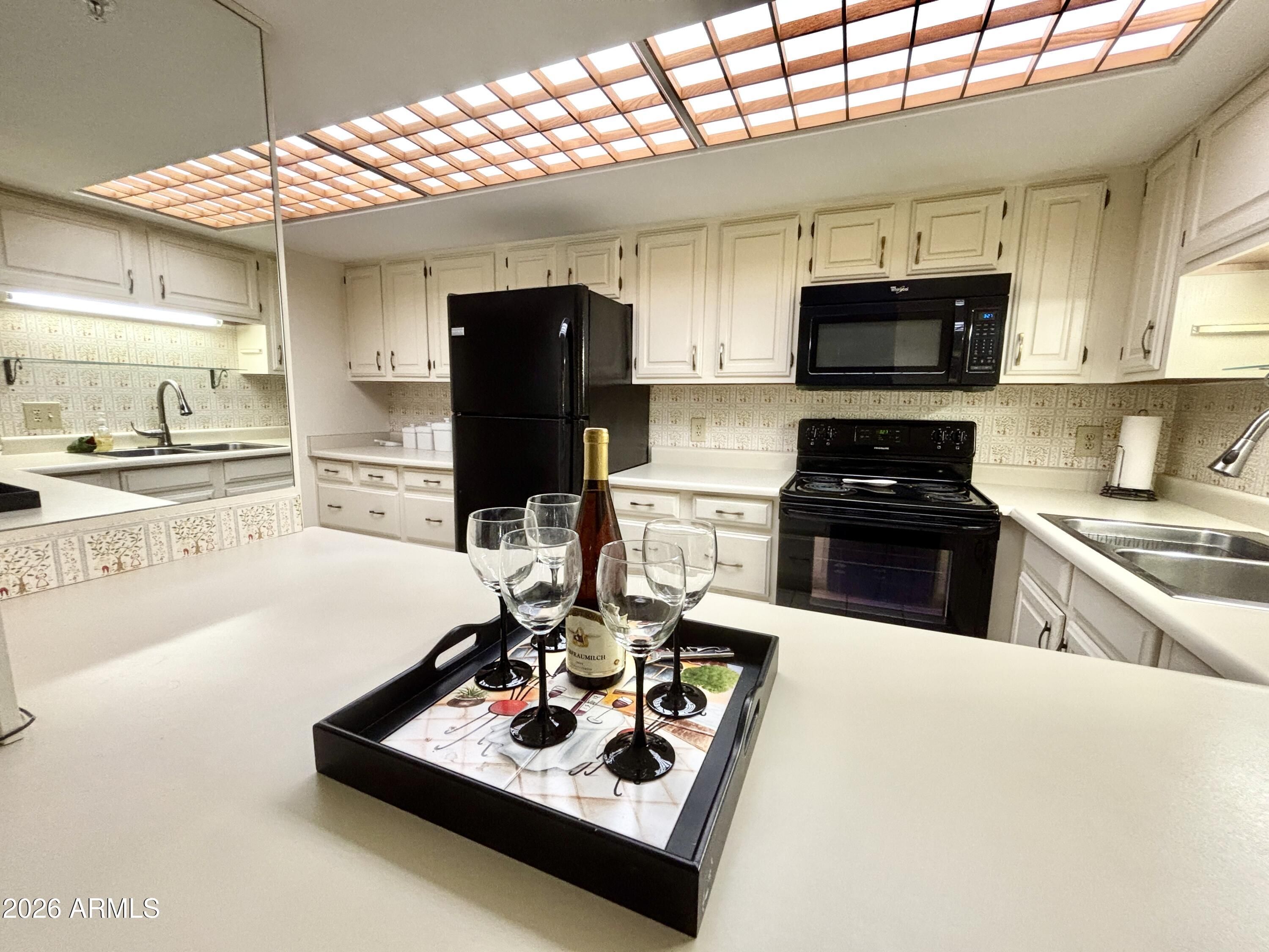 Enjoy 55+ independent living with resort-style amenities in this rare, one-of-a-kind condominium. This spacious 2-bedroom, 2-bath residence features two versatile den/craft/office areas, offering exceptional flexibility. The unique floor plan welcomes you with a generous entryway and opens to an expansive kitchen, living, and dining area accented by attractive wood-look vinyl flooring. Bedrooms are thoughtfully arranged in a desirable split plan and feature new, plush carpeting. Step outside to an oversized patio overlooking a beautifully maintained courtyard and sparkling pool--perfect for relaxing or entertaining. Community features weekly housekeeping with linen service, chauffeured transportation, 30 four course meals a month and much more! HOA fee is $2,725 and $830 for addl person. Enjoy cruise ship style living at El Dorado! Your deed includes home OWNERSHIP! and 1/249th of the common areas of El Dorado in this non-profit organization. This community is located on Viewpoint Lake in Sun City. HOA fees include the following: Elegant Dining Room that serves breakfast, lunch, dinner and monthly fee covers 30 four course meals a month, Weekly housekeeping (one to two hours) with linen service and beds re made, Medical transportation with in 8 miles of community and Sky Harbor transportation included, Nurses on staff for emergencies and advocacy from 7am -11pm and security staff from 11pm to 7am, water, sewer, trash, Covered parking for your car and golf cart, personal keyed mailbox, Basic Cox cable and In-House TV Channel included, 12 complimentary laundry rooms throughout the building, Infrared Perimeter Security System and all perimeter doors are key locked with resident access only, Outdoor Heated pool and spa, Fitness Center, TV Lounge with WiFi, Small Private Storage Space, Library, Card Room, Billiards Room, Auditorium, Lakeside Lounges, Art Gallery, Lakefront Fishing, And much, much more