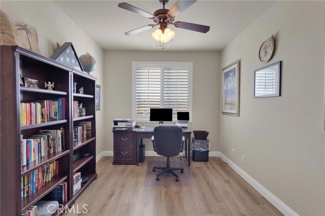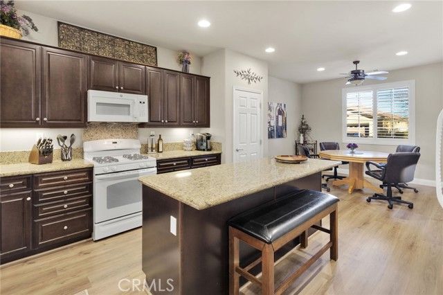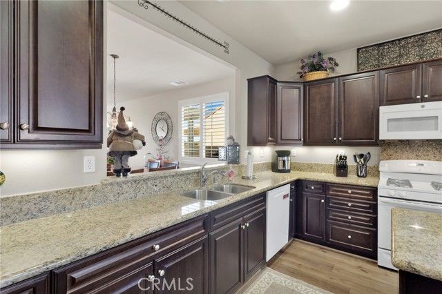 Discover one of Solera at Del Webb's most sought-after floor plans-beautifully maintained, thoughtfully upgraded, and perfectly positioned to enjoy incredible views of the San Gabriel Mountains. This 2-bedroom, 2-bath home also features a spacious bonus room ideal for an office, hobby space, or guest area. Inside, you'll love the large, separate kitchen with generous cabinet space, granite counters, and a bright breakfast nook. The open-concept living and dining room makes entertaining easy. The primary suite is a true retreat with the largest walk-in closet offered in this floor plan and an upgraded walk-in shower in the ensuite bath. Enjoy the convenience of indoor laundry, plus overhead storage racks in the garage to help keep everything organized. Step outside to the beautifully landscaped backyard where you can relax under the covered patio and take in sweeping mountain views. Located in the heart of Solera, this home offers resort-style living with access to a clubhouse, fitness center, pool, spa, pickleball, and a vibrant calendar of activities. Move-in ready and welcoming from the moment you arrive-this is the one you've been waiting for.