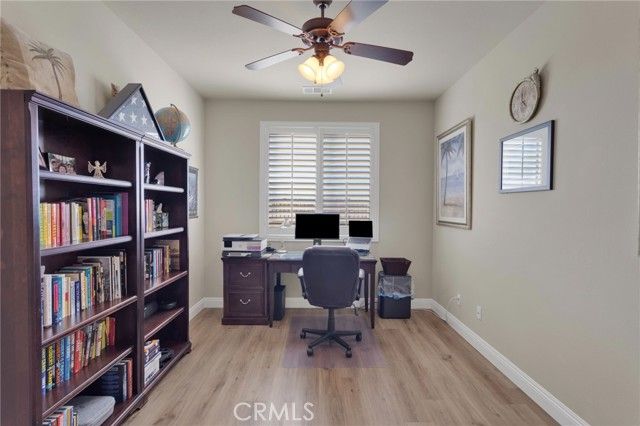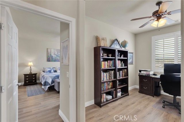 Imagine waking up each morning in your cozy, beautifully-maintained home nestled in the heart of Solera at Del Webb. As you sip your morning coffee, you're treated to stunning views of the San Gabriel Mountains right from your own backyard. The peaceful landscape, the sound of birds chirping, and the fresh air make it feel like a daily retreat. Inside, the home welcomes you with an open-concept living area, perfect for both relaxation and entertaining. The spacious kitchen, with its granite countertops and generous cabinet space, invites you to whip up your favorite meals. And when you're done, a bright breakfast nook is the perfect spot to enjoy your meal while soaking in the sunshine. The bonus room offers endless possibilities—whether it’s your quiet office for peaceful work-from-home days, a hobby space for creative projects, or a guest room for family and friends. The primary suite is your personal haven, with a huge walk-in closet to keep everything organized and an upgraded walk-in shower that adds a touch of luxury to your daily routine. And after a day of enjoying the resort-style amenities—whether you’ve been working out in the fitness center, playing pickleball with neighbors, or lounging by the pool—you can unwind in your beautifully landscaped backyard, resting under the covered patio with breathtaking mountain views in the background. This home isn't just a place to live—it’s a lifestyle. Whether you're hosting friends or enjoying a quiet evening at home, every detail is designed to enhance your comfort and happiness. With easy access to everything you need, from indoor laundry to a garage that keeps everything organized, this home makes life simpler and more enjoyable. Welcome to the lifestyle you’ve been dreaming of.