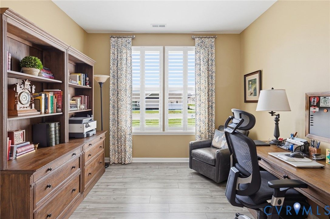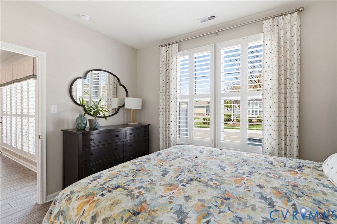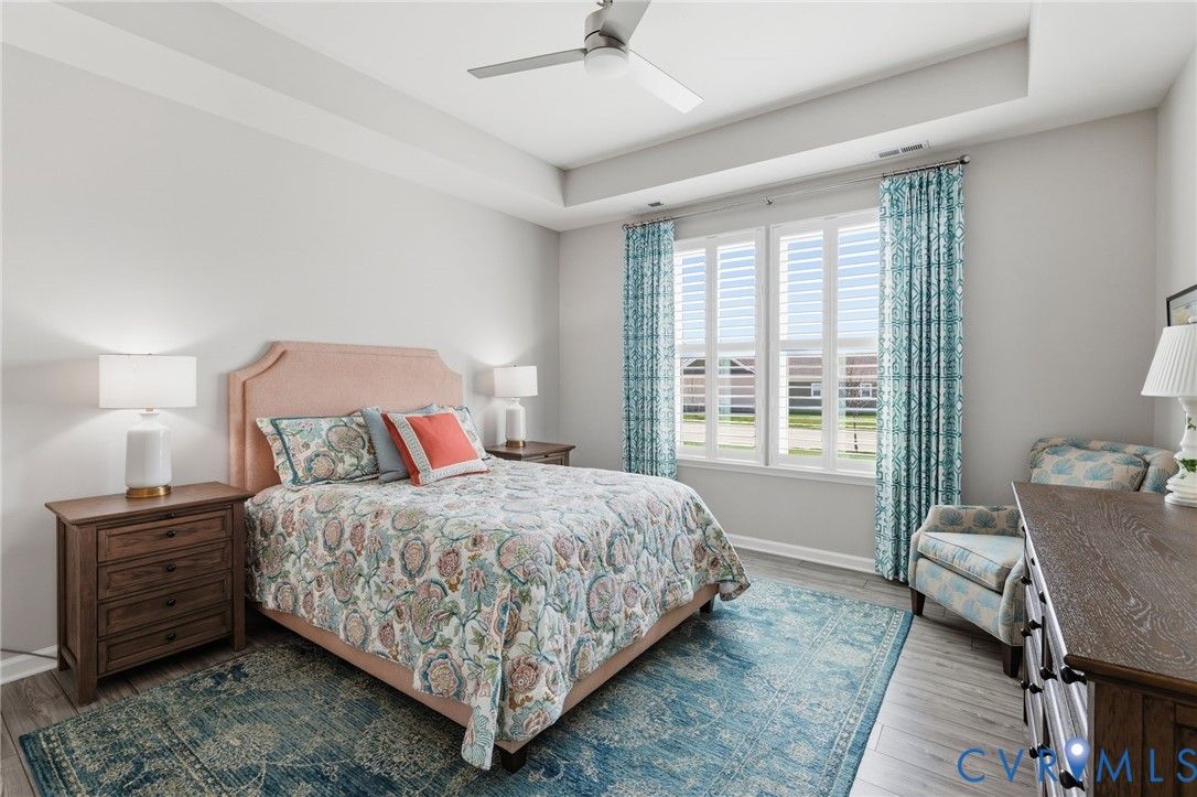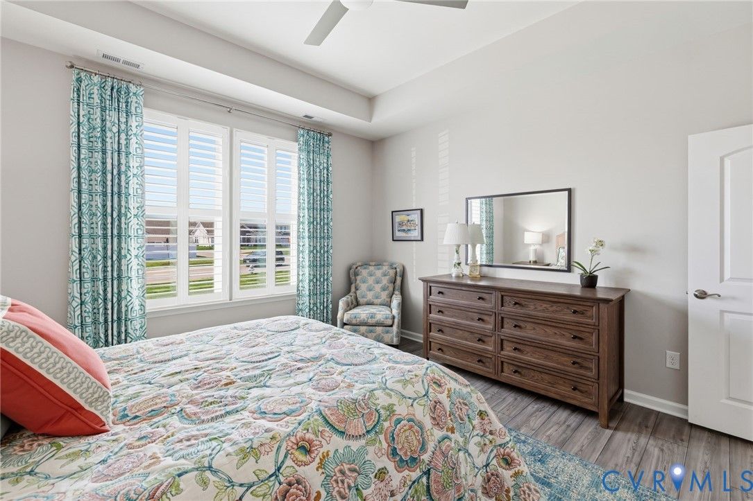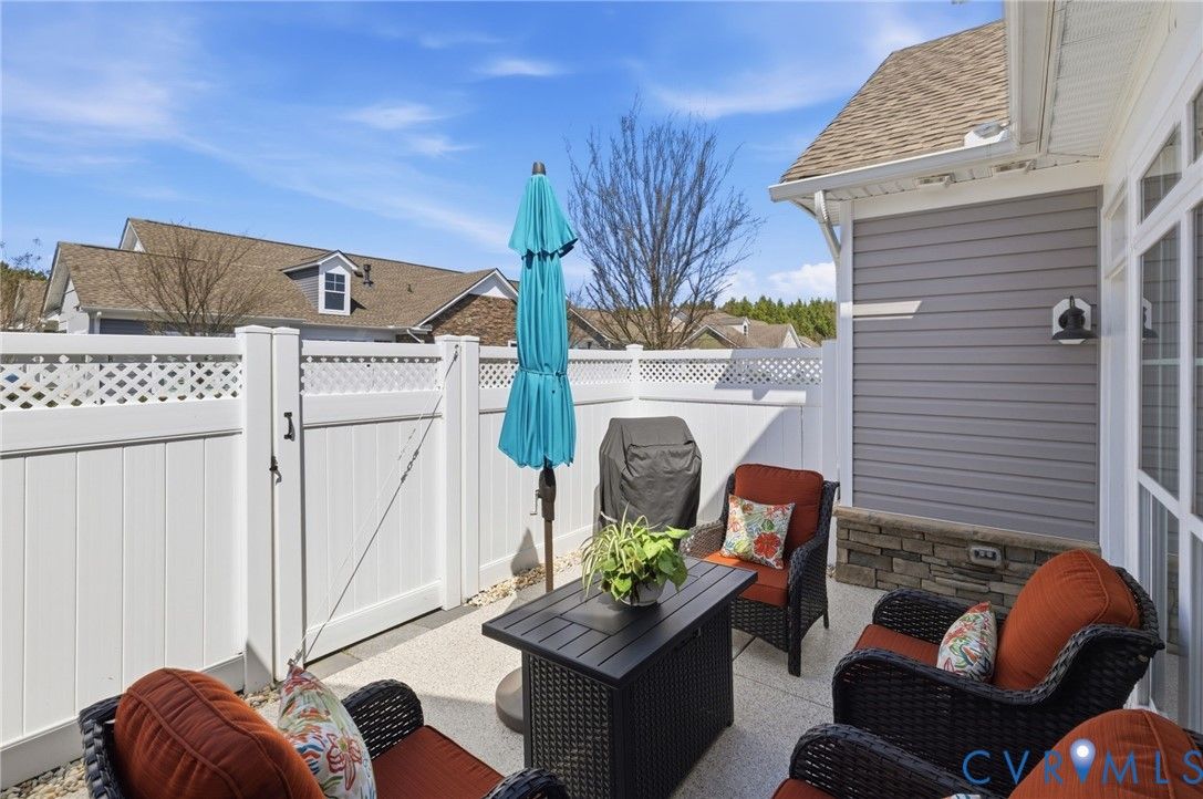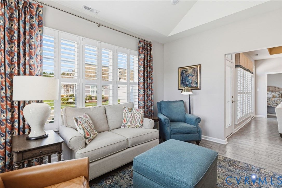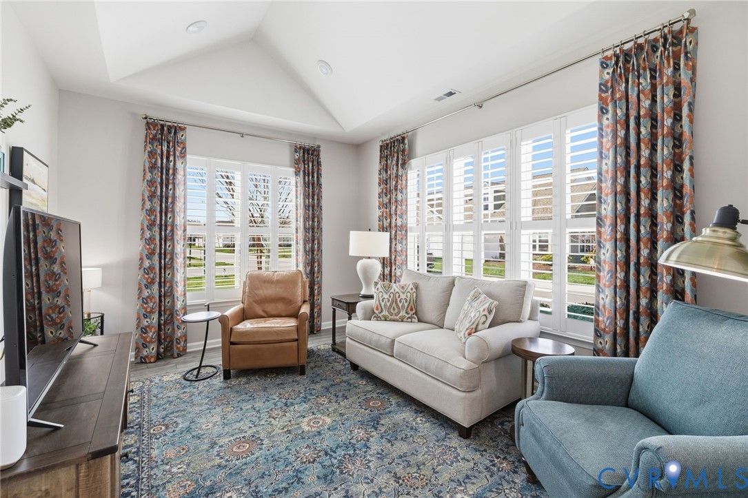 Welcome to the former model home for the Farmstead Villas at Chickahominy Falls, Glen Allen's award-winning 55+ community! This home is just five years old and sits on a light-filled corner lot a stone's throw from the saltwater community pool, fitness center, and community center. Here you'll find the largest layout in the Farmstead with step-free, first-floor living plus a huge upstairs loft bedroom and bath, perfect for another living suite or workspace. The owners have added numerous custom upgrades including: Closet Factory closets, plantation shutters in all windows, new epoxy resin flooring in the garage and patio, built-in cabinets throughout the upstairs loft, butler's pantry, and dining room, and new vinyl plank flooring and upgraded stair carpet. This home has 3.5 baths, an attached two-car garage, a private patio with fence and gate, and ample storage in closets and the walk-in attic. Chickahominy Falls stands out for its amenities including regular social events, walking trails, community farm, pool, and clubhouses, and is near the Fall Line Trail leading to Ashland and Richmond. Central location just off I-95 and I-295 enables quick trips to all points around Richmond and Ashland! Come see this exceptional low maintenance home in this special community.