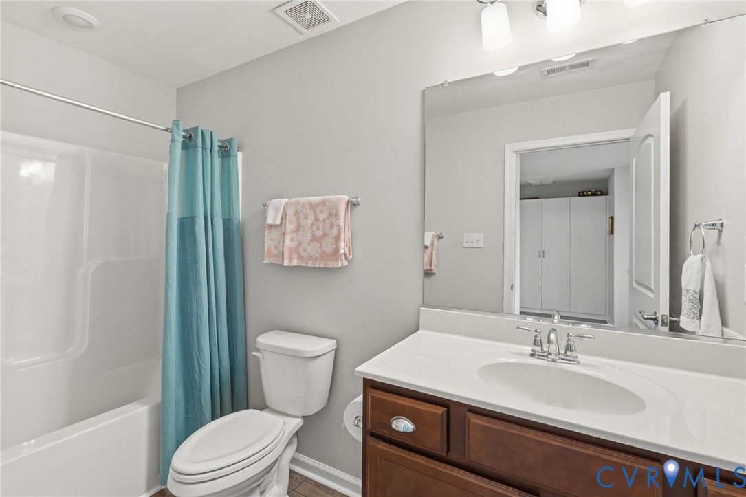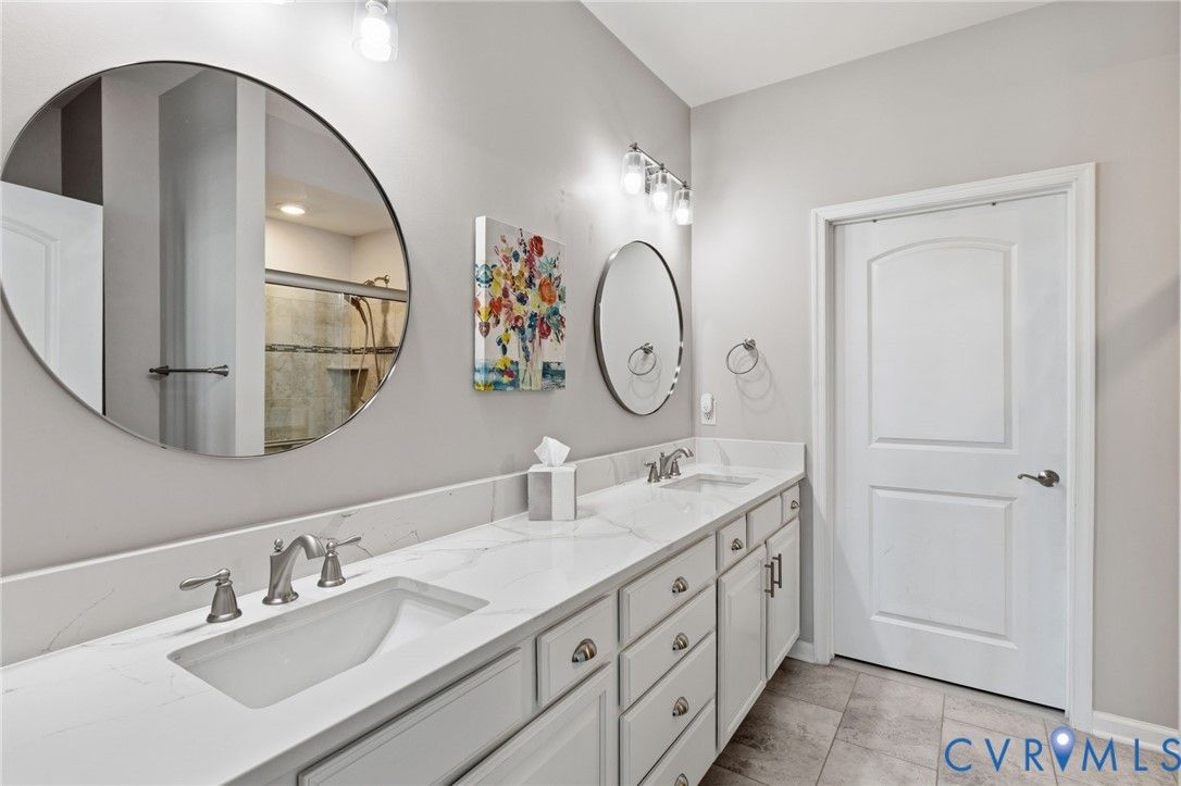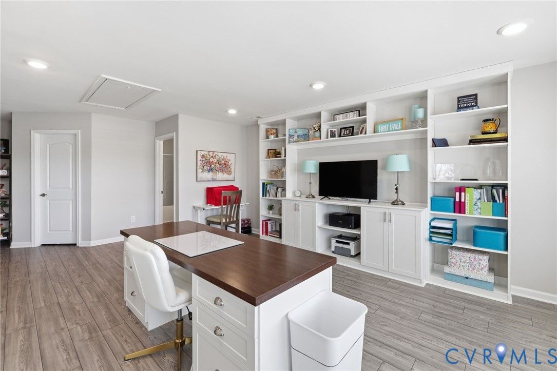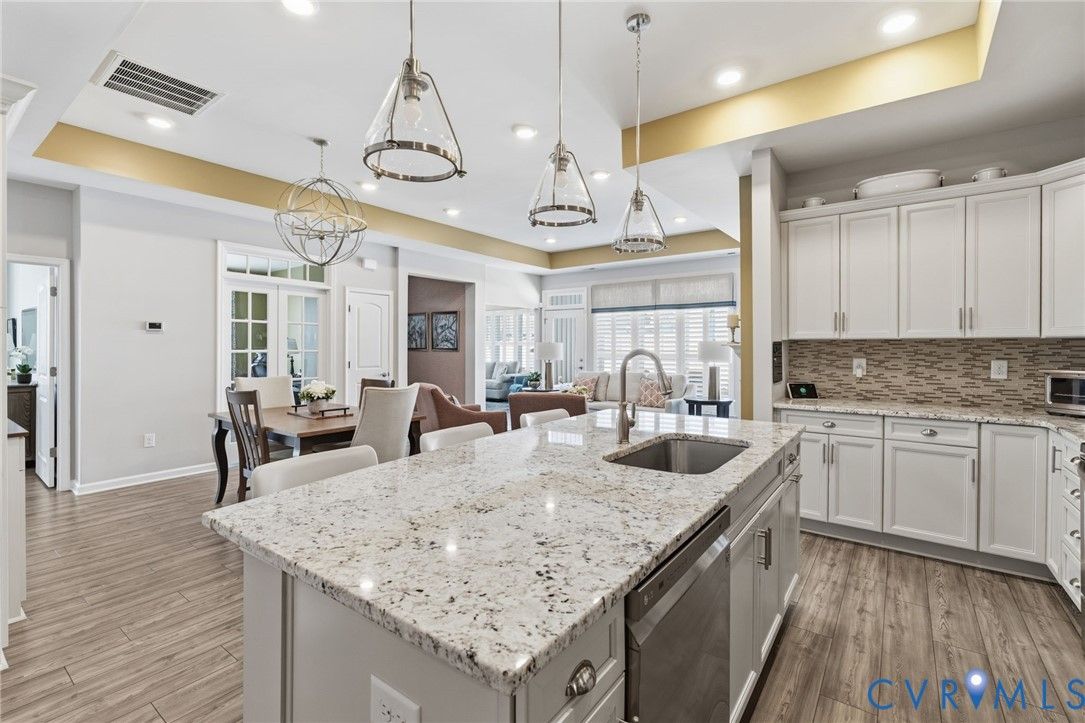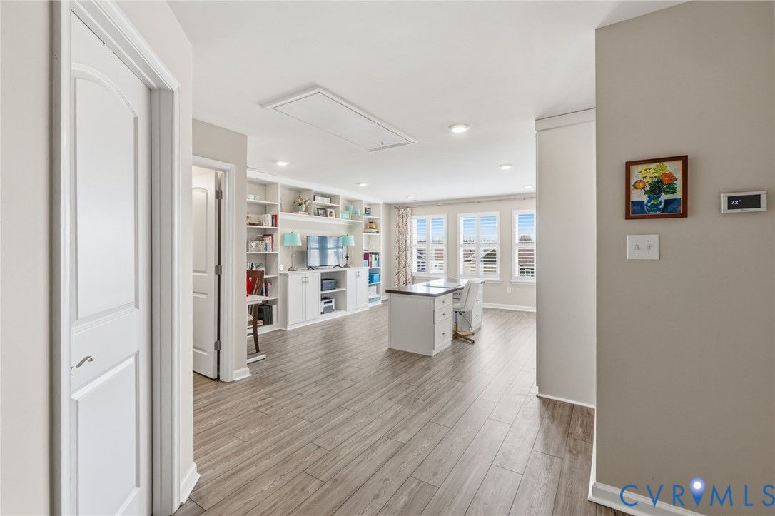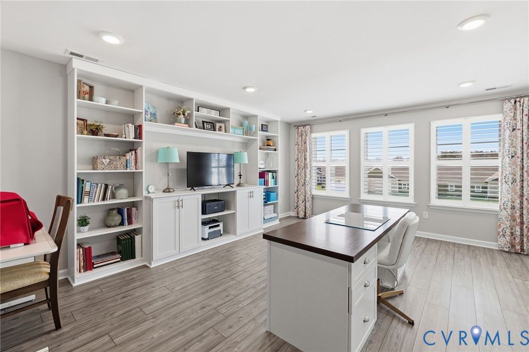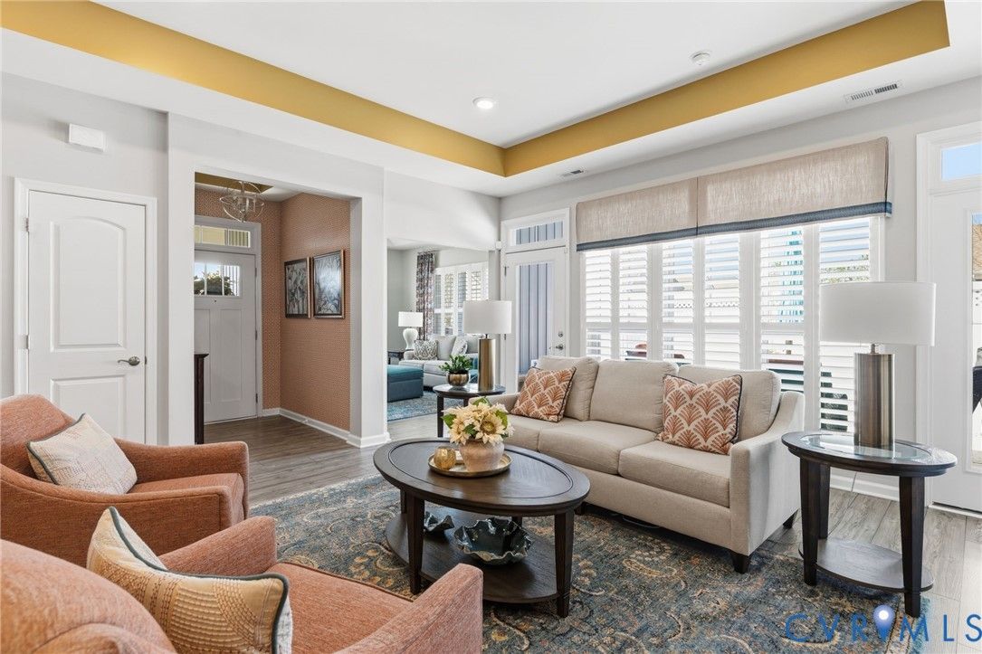 Welcome to the former model home for the Farmstead Villas at Chickahominy Falls, Glen Allen's award-winning 55+ community! This home is just five years old and sits on a light-filled corner lot a stone's throw from the saltwater community pool, fitness center, and community center. Here you'll find the largest layout in the Farmstead with step-free, first-floor living plus a huge upstairs loft bedroom and bath, perfect for another living suite or workspace. The owners have added numerous custom upgrades including: Closet Factory closets, plantation shutters in all windows, new epoxy resin flooring in the garage and patio, built-in cabinets throughout the upstairs loft, butler's pantry, and dining room, and new vinyl plank flooring and upgraded stair carpet. This home has 3.5 baths, an attached two-car garage, a private patio with fence and gate, and ample storage in closets and the walk-in attic. Chickahominy Falls stands out for its amenities including regular social events, walking trails, community farm, pool, and clubhouses, and is near the Fall Line Trail leading to Ashland and Richmond. Central location just off I-95 and I-295 enables quick trips to all points around Richmond and Ashland! Come see this exceptional low maintenance home in this special community.