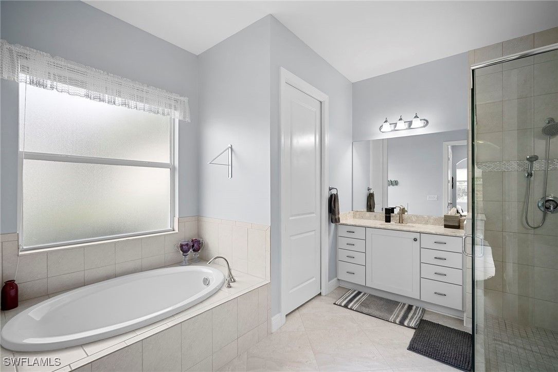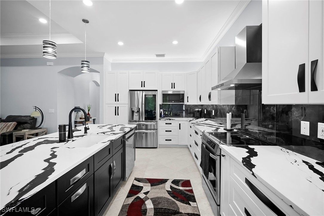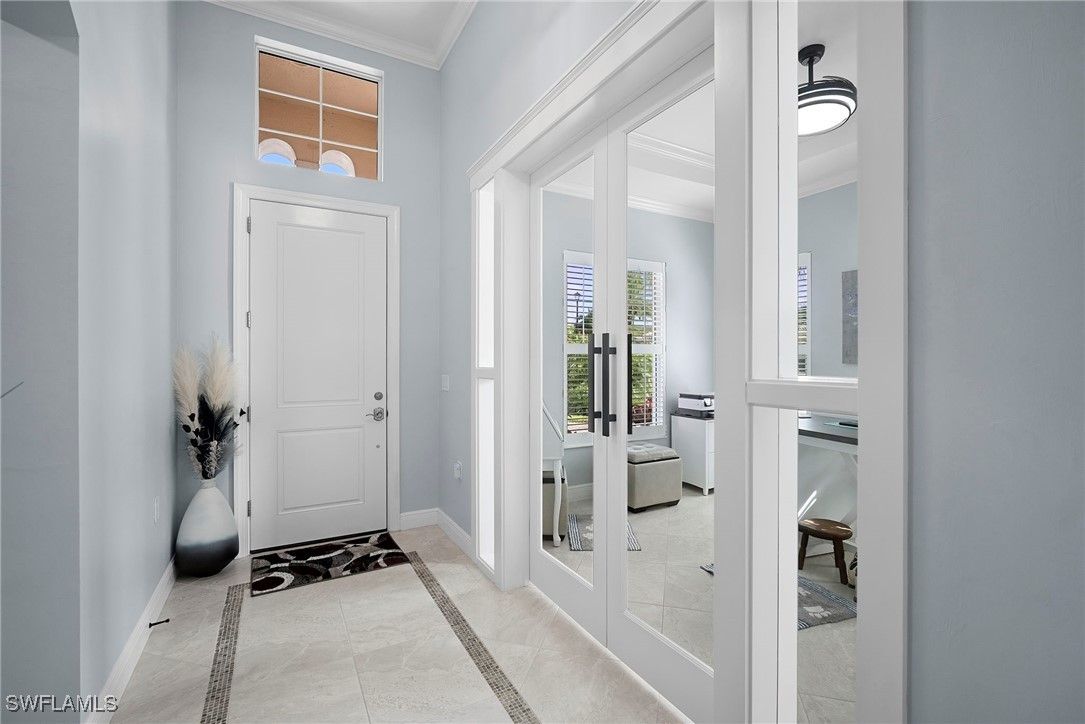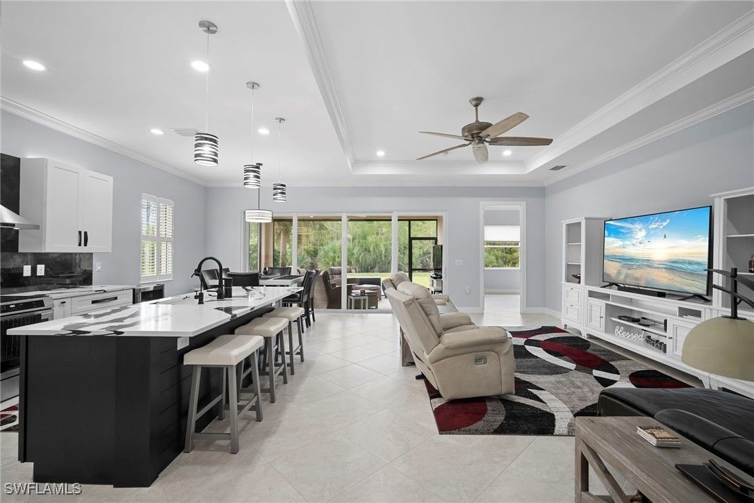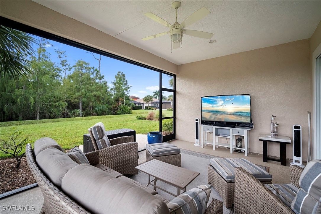 Welcome to 10335 Materita Drive, the best value in Pelican Preserve! This meticulously maintained home sits on an oversized lot with coveted southern exposure. A 3-car garage and large roundabout driveway provide for plenty of storage space and parking. Walking through the front door, a converted enclosed office provides flexibility for working from home, hobbies, or an extra guest space. The completely redesigned kitchen offers a timeless modern aesthetic, with new high-end appliances and custom paint, backsplash, and hardware. The large, flat Island opens up to the living room and dining areas, exaggerating the highly-desired open floor plan. The home features a brand new Trane A/C system, energy efficient impact windows and lovely plantation shutters and window coverings. The spacious great room opens to an oversized lanai, perfect for entertaining or relaxing in your private outdoor oasis. The Kevlar Storm Smart screen/shutter adds an extra layer of privacy and storm protection. There's also plenty of room for the new owner to add a pool or extended lanai. The home also includes a reverse osmosis system, new paint, crown molding throughout and designer fixtures that elevate every room. A brand new generator and golf cart are also negotiable. Pelican Preserve’s Town Center offers an unbeatable active lifestyle, featuring 3 different pools, cabana bar, full fitness center, pickleball and tennis courts, restaurant, theater, and countless social activities. Optional golf memberships are available with low initiation fees, providing access to 27 holes of championship golf, a private gym, and additional dining venues. This home truly has it all — luxury finishes, thoughtful updates, and access to one of Southwest Florida’s premier active adult communities. Don't hesitate - schedule a showing today!