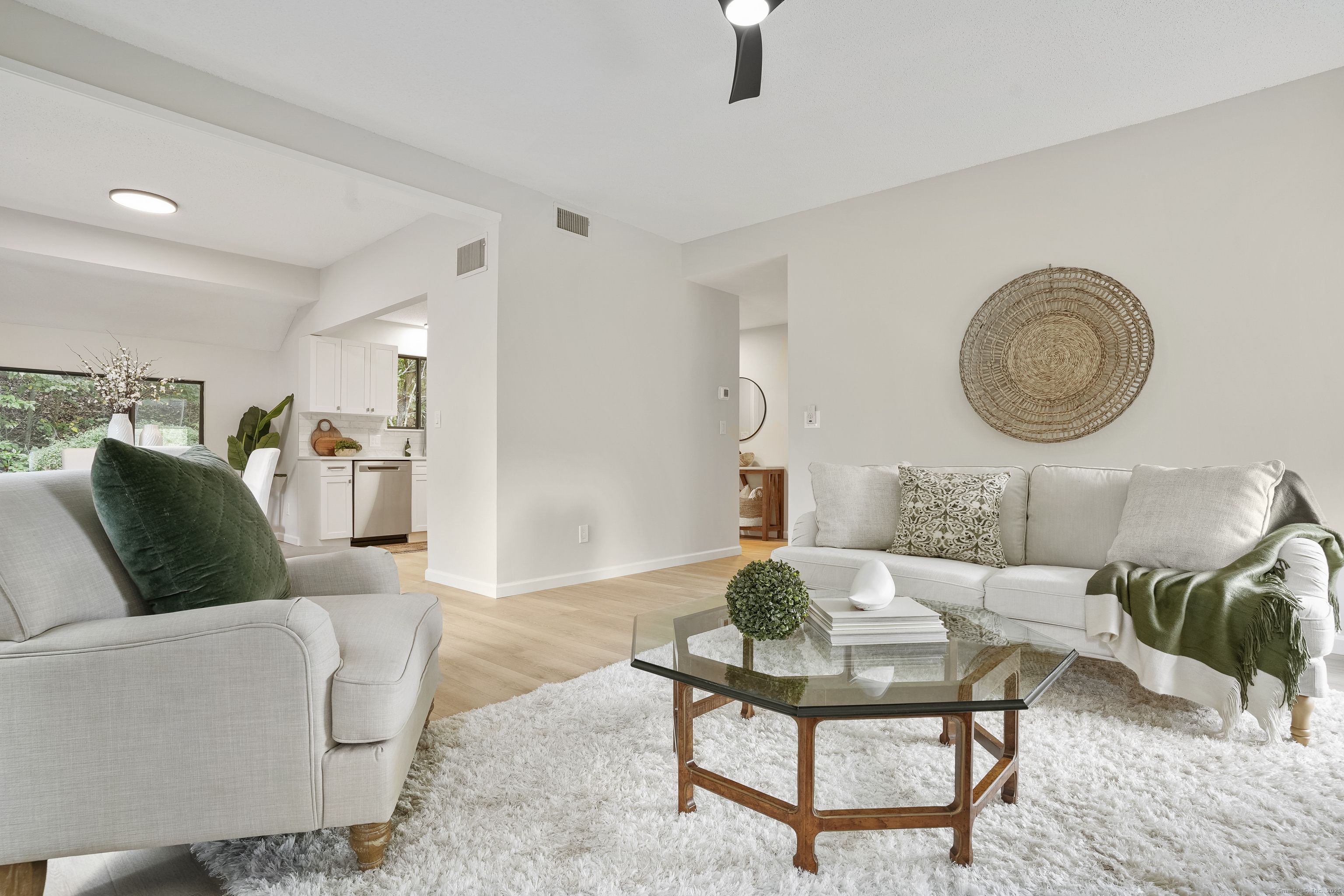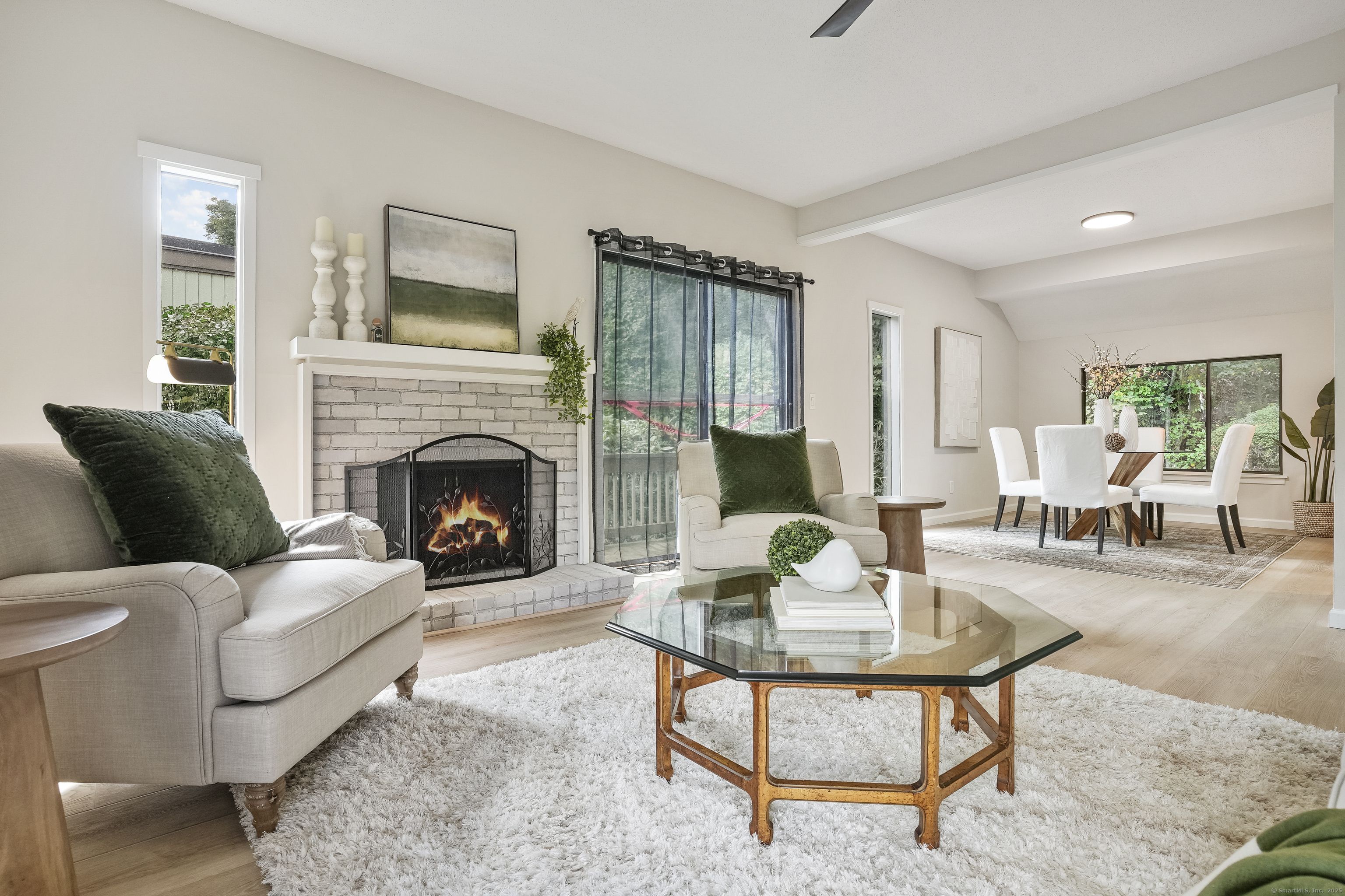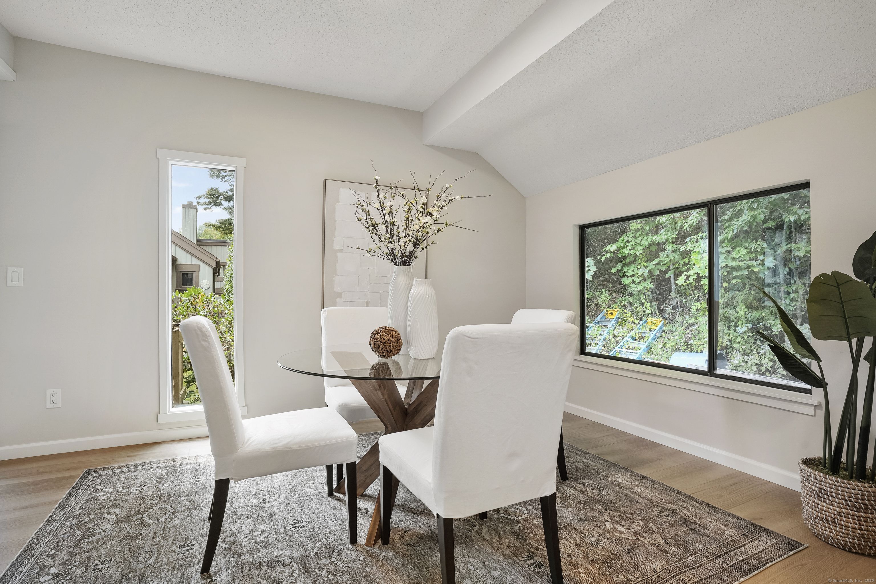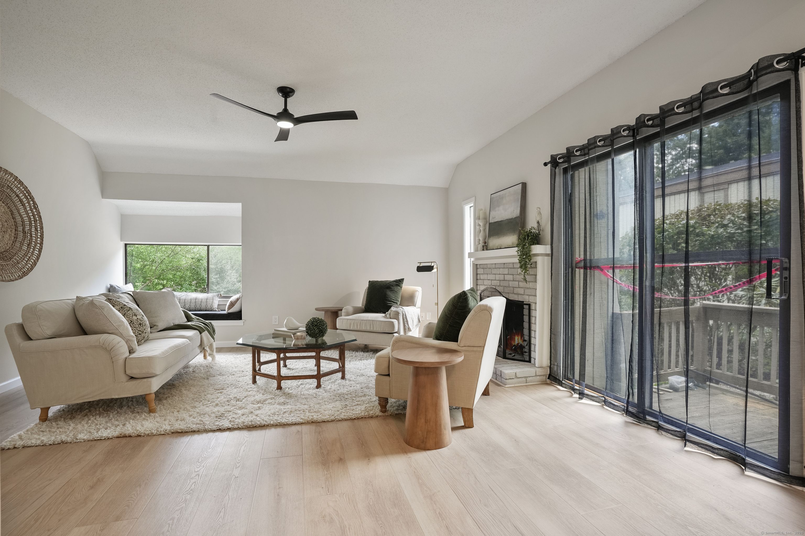 Be the first to enjoy this beautifully renovated 1-bedroom, 1-bath condo located in the sought-after 55+ active adult community of Heritage Village. This condo has been meticulously updated inside and out! The exterior has just been restored, including the replacement of cedar planks and a fresh coat of paint. The roof was replaced in 2023. Inside, this stylish unit offers plenty of room for two, with a smartly redesigned layout that maximizes comfort and convenience. Chic wide-plank hybrid waterproof laminate flooring throughout, that look and feel like real hardwood. The kitchen boasts new shaker cabinets with soft-close hinges, a rechargeable under cabinet motion light, sleek stainless steel appliances, stunning quartz countertops, a tile backsplash, and a remodeled open floor plan. The renovated bathroom showcases an elegant, floor-to-ceiling tiled shower, a spacious double vanity with a modern lighted mirror featuring dual illumination, and a smartly integrated laundry area-blending contemporary design with everyday convenience. The large primary bedroom is filled with natural light and includes a charming window seat. Energy-efficient updates include a new heat pump, water heater, LED lighting, and ceiling fans. New interior doors, baseboards, and a fresh coat of paint create a polished, modern look that instantly elevates the space. Even the garage has been refreshed with a new LiftMaster opener and updated hardware. HOA fee includes Spectrum cable/inter.