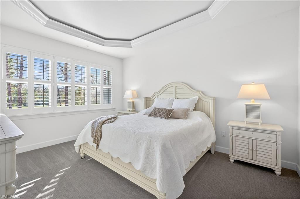 Skip the wait—this turnkey home includes a golf membership with no waiting list.Turnkey and move-in ready, this beautiful second-floor carriage home offers 2,297 sq. ft. of spacious living with serene golf course views. Meticulously maintained by the original owners, the residence features 3 bedrooms plus a den, 2.5 bathrooms, and a 2-car attached garage.The open floor plan showcases lighted coffered ceilings, crown molding, plantation shutters, and tasteful finishes throughout. The kitchen and living areas flow seamlessly to the lanai with upgraded flooring—an ideal space to relax or entertain while enjoying views of golfers on the course.The residence offers an inviting great room and formal dining area, perfect for both everyday living and entertaining. The expansive primary suite boasts picturesque golf course views, dual closets, and a well-appointed ensuite bath with dual sinks, a soaking tub, and a walk-in shower. Two additional bedrooms and a versatile den provide ample space for family, guests, or a home office. A dedicated laundry room includes a washer, dryer, and utility sink for added convenience.Being sold fully turnkey, this home allows for immediate enjoyment with an effortless transition for seasonal or full-time living. For added peace of mind, the home is not located in a flood zone and is well protected with Storm Smart electric Kevlar roll-down shutters on the lanai, accordion hurricane shutters on all other windows, and a security system—ideal whether you are home or away. The seller holds a Plantation Golf & Country Club membership, giving buyers the rare opportunity to skip the waiting list and purchase a golf membership immediately, if desired. HOA fees include cable, high-speed internet, lawn care, pest control, water, trash, exterior insurance, and maintenance. Plantation Golf & Country Club, located within the gated community, features a Hurdzan-Fry championship 18-hole golf course, clubhouse, and restaurant. Golf and social memberships are optional. Residents enjoy resort-style amenities including tennis, pickleball, bocce ball, a fitness center, two pools, a spa, and vibrant social clubs. Conveniently located near I-75, shopping, dining, RSW Airport, and Gulf beaches—offering effortless Florida living.