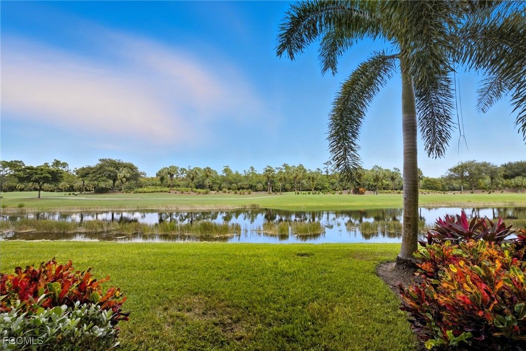 Step into this beautifully appointed first-floor Brookside model in the prestigious Heritage Bay Golf & Country Club. Featuring all-new furniture, a new water heater, and a newer A/C, this 2-bedroom + flex space for office, 2-bathroom home is completely move-in ready for either full-time or seasonal residents looking for an Active lifestyle with access to world-class amenities at an affordable price. An extra storage closet is perfect for beach gear, while your covered parking adds convenience and peace of mind. With its ground-floor location, you’ll enjoy the ease of no stairs or elevator wait times. Take in sweeping views of the Cypress Tee #13 and 14th fairway, creating a serene backdrop for morning coffee or evening relaxation from your private lanai with a no-see-um screen offering protection from the outside. Life at Heritage Bay offers an unbeatable blend of luxury, recreation, and community. Your bundled golf membership includes access to 27 holes of championship golf, an aqua driving range, and full-service locker rooms. Stay active with an incredible tennis and pickleball program or enjoy bocce ball, and a full-service fitness center and a clubhouse with a sauna. Relax and recharge at the resort-style pool, one of the 5 satellite pools, or meet friends at the Cabana poolside bar and grill for a casual bite. The vibrant Grille Room features indoor and outdoor dining, plus a lively bar, while the community calendar of activities ensures there’s always something fun and social to enjoy. This home is the ideal blend of comfort, convenience, and a true resort lifestyle — making it a rare opportunity in one of Naples’ most desirable golf and country club communities. Once you have made Heritage Bay home, you will never want to leave, but when you do, you are just minutes away from top medical facilities, shopping, and dining. Come see why so many have chosen Heritage Bay as their home away from home!