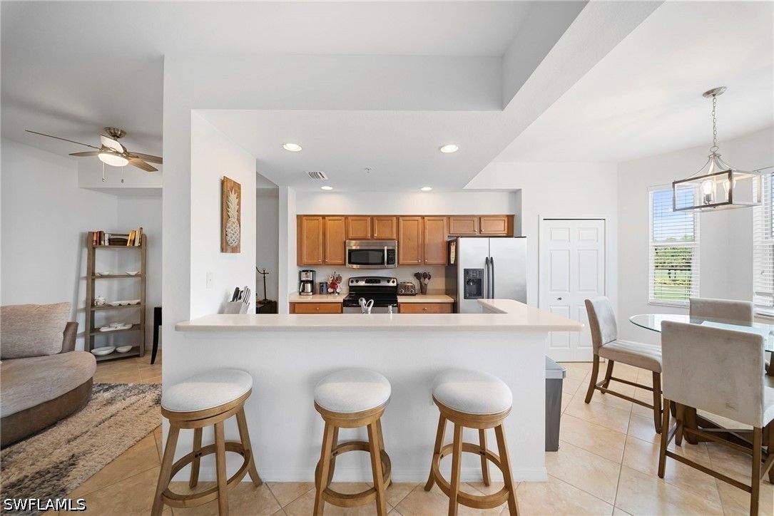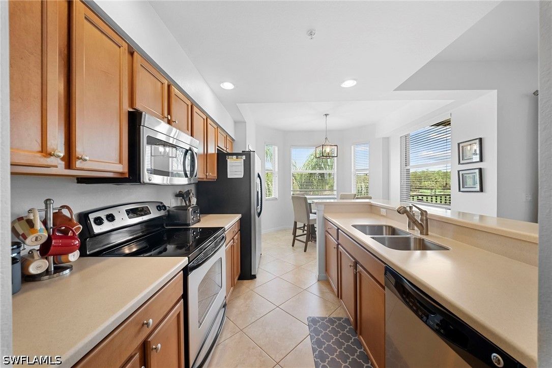 This 3rd floor "Brookside" model condo features an incredible view of multiple holes of golf, water, & preserve; offered fully TURNKEY and move-in ready, with a FULL golf membership to Heritage Bay- the only 27 hole bundled golf community in Naples (never closes for maintenance!). The A/C, water heater, and washer/dryer are all NEW as well! Enjoy hurricane IMPACT windows & sliders throughout, along with other additions including frameless glass shower door, updated window coverings, newer fans and fixtures, large diagonal tile & stainless appliances. Heritage Bay features a stunning 27-hole Lewis-Azinger designed golf course and aqua driving range. The grand clubhouse offers diverse dining options, elegant event spaces, and a lively social scene. Have a bite to eat in The Grille Room- a casual indoor/outdoor bar & dining area, with an incredible southern view of the 27th green. Enjoy reciprocal play with 50+ clubs from May 1-October 30. Members can also enjoy a resort-style pool area with heated spa & 'The Cabana' poolside bar & grille with a full service kitchen. The community also includes a top-notch tennis program with 6 har-tru clay courts, 6 pickleball courts, bocce, and a state-of-the-art fitness center. With a calendar full of events and activities, Heritage Bay ensures a vibrant and luxurious lifestyle for its members. Whether you're a golf enthusiast or simply looking for serene views and luxury living, Heritage Bay offers it all.
