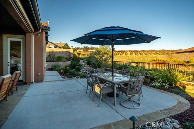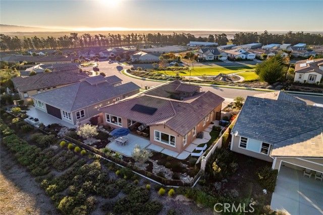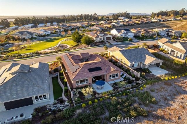 This home is stunning! Tucked into a tranquil cul-de-sac and perfectly positioned across from a scenic park, 1035 Gavin Ln offers a rare blend of refined luxury, modern design, and natural beauty. Backing to a greenbelt with sweeping vineyard views, this exquisite residence is a sanctuary of style and serenity. The handsome stone-clad English estate façade and flagstone courtyard—complete with a bubbling fountain—set a distinguished tone from the moment you arrive. Built in 2020, the home showcases today’s most sought-after features, including OWNED SOLAR, central A/C, automatic window treatments, indoor and outdoor fireplaces, designer lighting and luxurious, white oak hardwood flooring throughout. Inside, the open-concept layout flows effortlessly with 3 spacious bedrooms, a private den, and 2.5 baths. The heart of the home is a stunning chef’s kitchen with contemporary, white cabinetry, quartz countertops, an oversized farmhouse sink, built-in refrigerator, and wine fridge—perfectly blending style with function. Dramatic glass rolling walls open to a 300 sq. ft. covered patio with a luxurious fireplace, creating an exceptional indoor-outdoor living experience. The backyard is a private oasis, featuring a tranquil water fountain and riverbed, stately olive tree, low-maintenance landscaping, large patio spaces and walkways and scenic vineyard, greenbelt views. 1035 Gavin Ln. isn’t just a home—it’s a lifestyle. A rare opportunity to live surrounded by elegance and nature within the Central Coasts most desirable resort community, Trilogy Monarch Dunes.