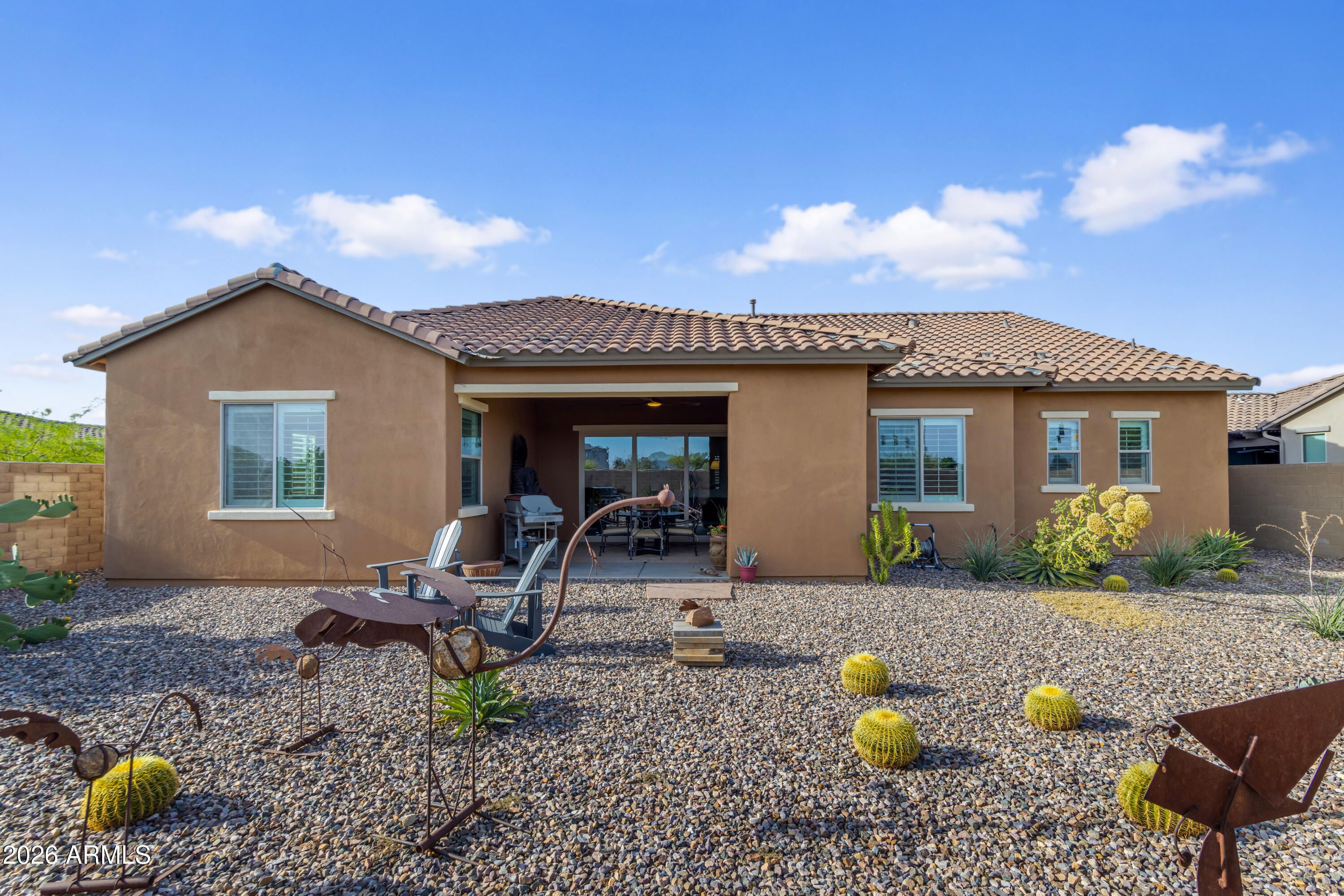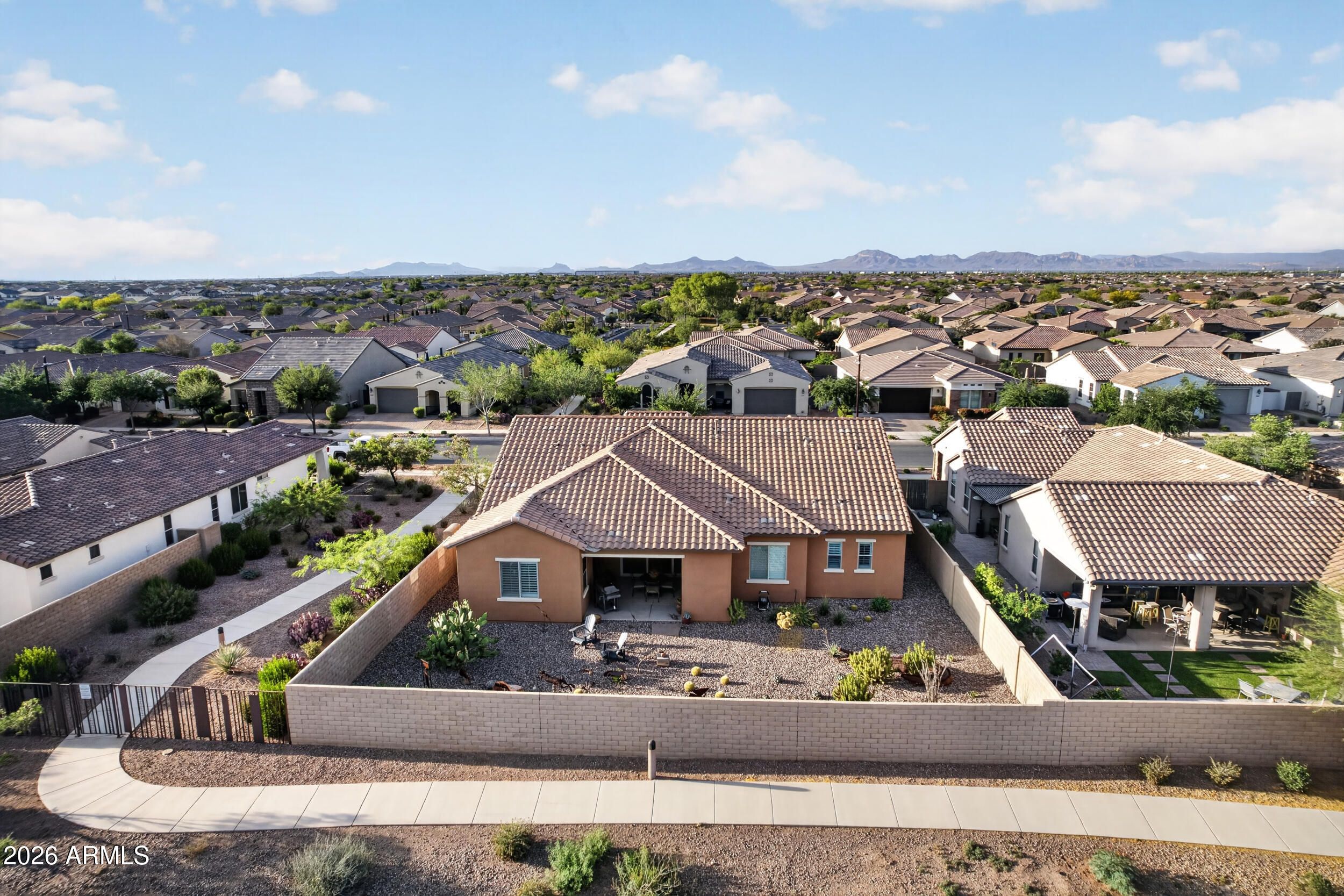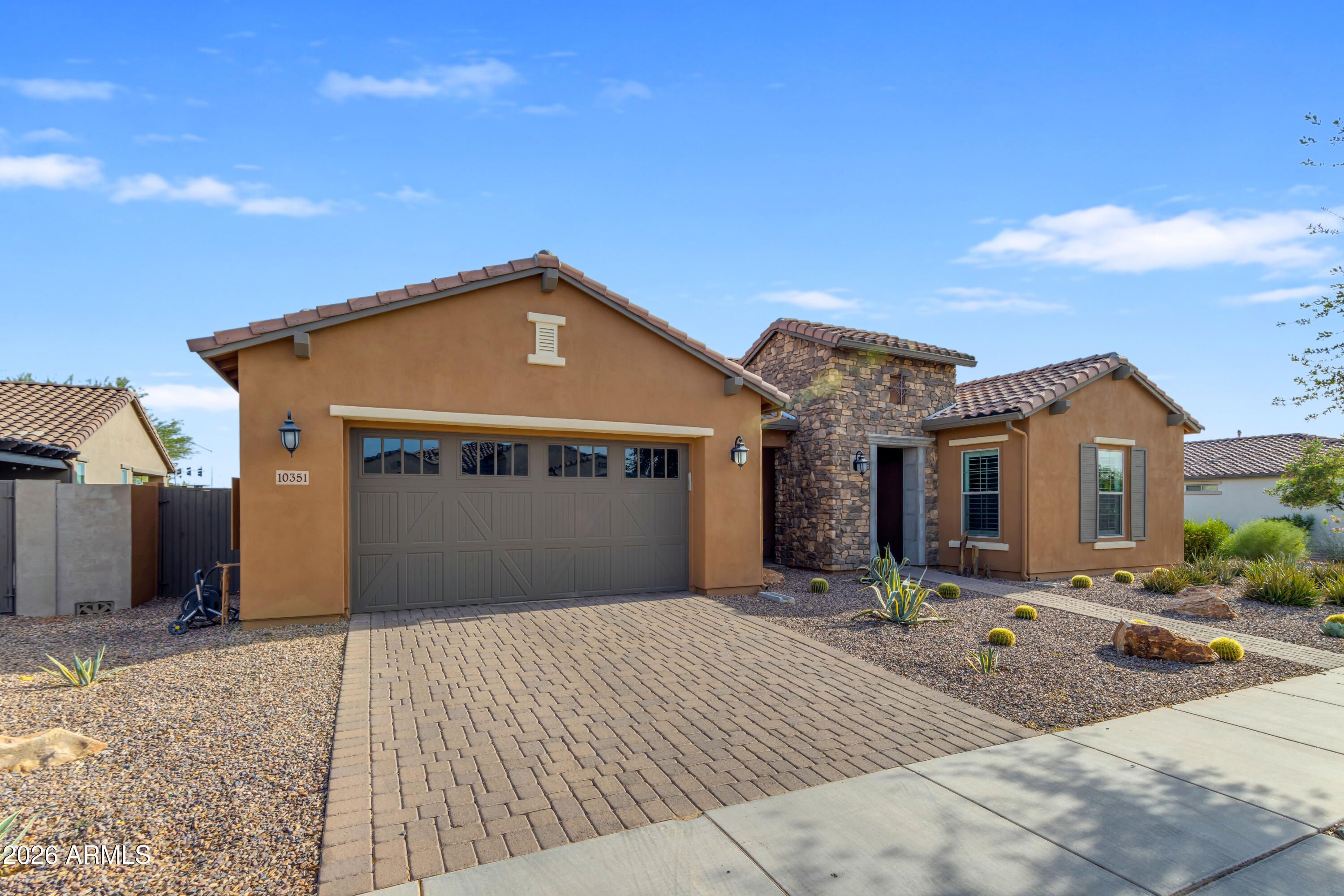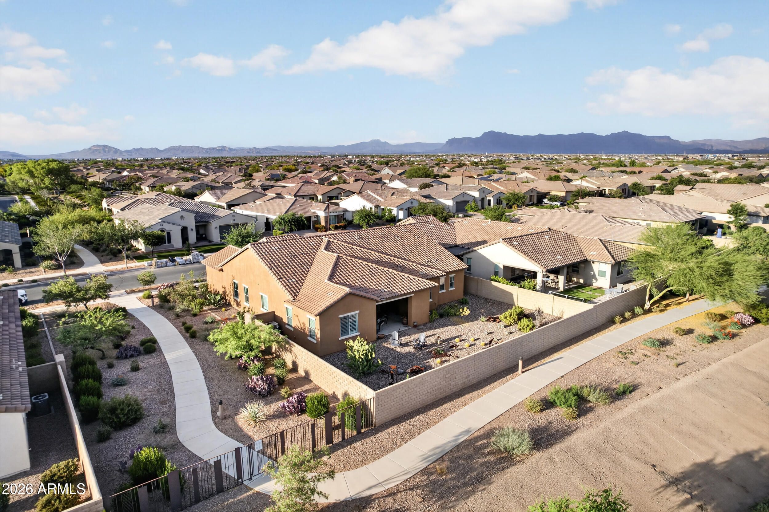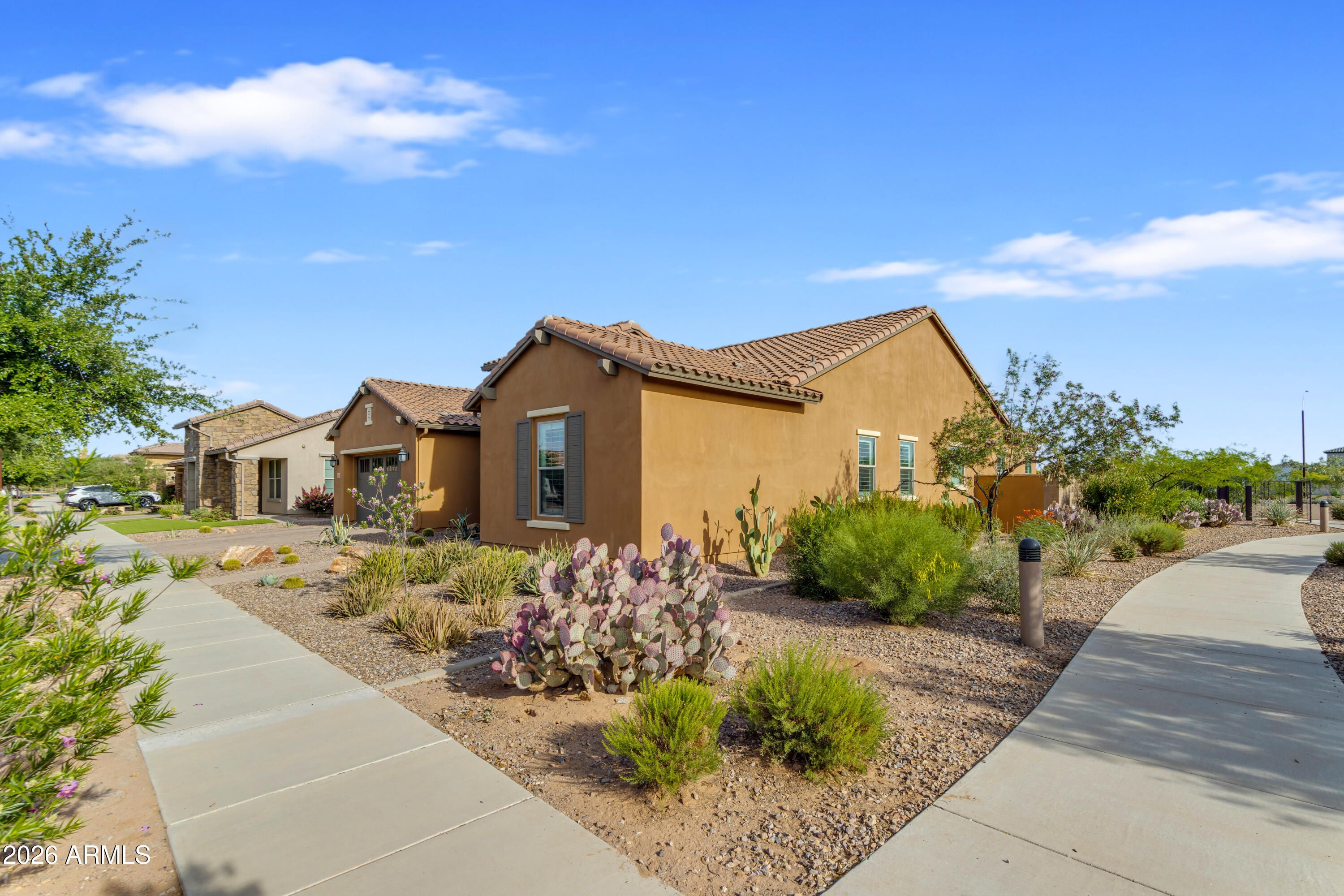 Experience the finest in living in this stunning, upgrade-rich home located in Encore at Eastmark, a premier 55+ community. Imported tile flooring creates a seamless flow throughout. The modern kitchen features dark honed granite countertops, a six burner gas cooktop, stainless steel vent with custom tile surround, and gorgeous cabinets that extend to 10-ft ceilings. A 12-ft sliding glass door fills the spacious great room with natural light and blends indoor-outdoor living. The primary suite offers a spa-like bath with soaking tub, custom tiled shower, and separate water closet. The large, private lot showcases low-maintenance desert landscaping, allowing you to fully enjoy Encore's amenities, including a café, newly redesigned pool, outdoor sports, and many exciting activities.