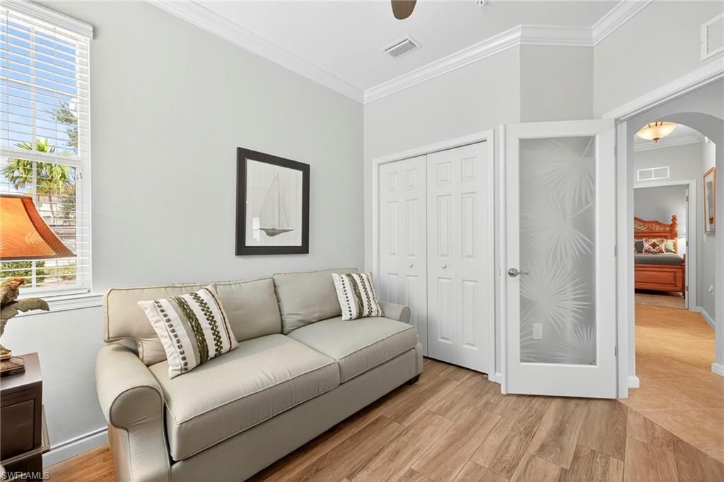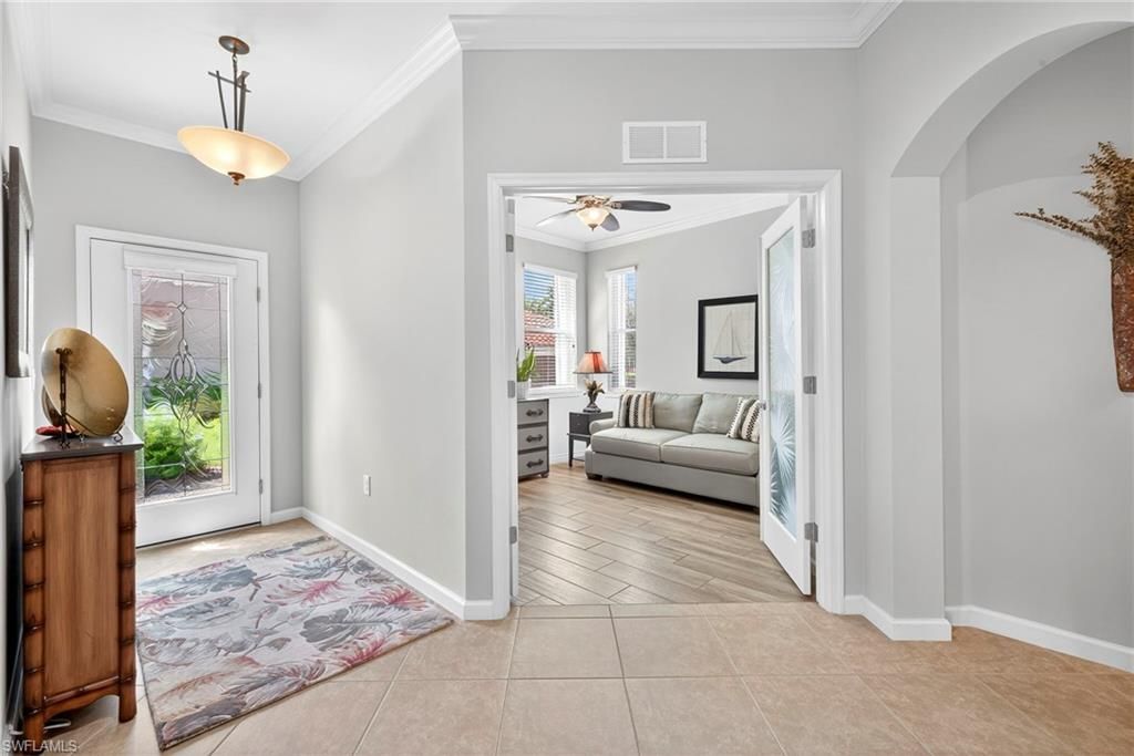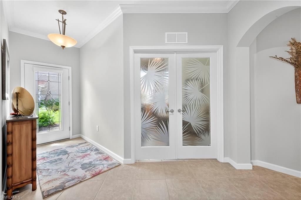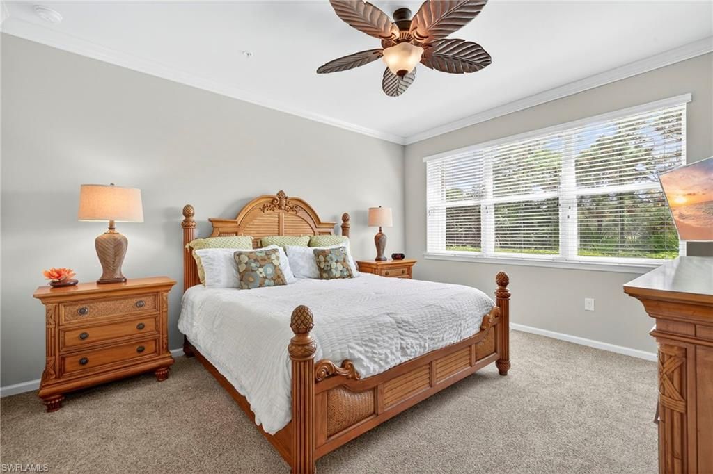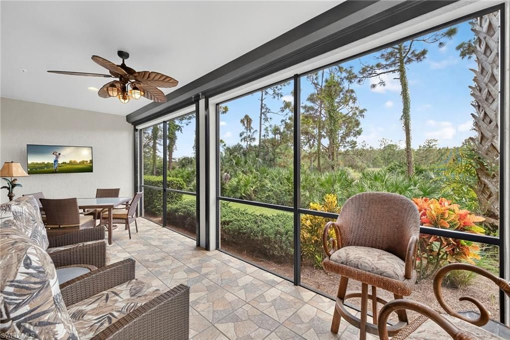 1ST-FLOOR TURNKEY CARRIAGE HOME Golf Views, Hurricane Protection, Upgrades Galore! Flexible closing - seller can accommodate fast timeline. This immaculate 1st-floor carriage home offers a view of the 8th green and comes fully turnkey furnished (2012) — just bring your suitcase and start enjoying the Florida lifestyle. Featuring 3 bedrooms, 2 baths, and an attached 2-car garage, this home is designed for effortless living and seasonal ease.The open-concept layout includes a spacious great room, breakfast bar, kitchen nook, and two sets of sliders leading to a screened-in lanai with tile flooring and a serene golf course backdrop. Whether you're sipping coffee or unwinding with a book, the patio offers a peaceful retreat in a quiet, well-kept neighborhood.The kitchen is designed with quartz countertops, tile backsplash, and upgraded appliances. The primary suite features a walk-in closet, oversized soaking tub, glass-enclosed walk-in shower, and split vanities. Hurricane protection includes electric roll-down shutters on the lanai, impact glass front door, and accordion shutters on all windows.Upgrades include a new A/C (2020), new hot water heater (2020), freshly painted interior, crown molding, designer glass door inserts, radon reduction system, security system, LED lighting, four mounted TVs for effortless entertaining, custom storage cabinets in the garage and epoxy-coated floor.Best of all, this home is not located in a flood zone. HOA fees cover cable, high-speed internet, lawn care, landscaping, pest control, water, trash, exterior insurance, and maintenance — making seasonal or full-time living truly carefree.Located in Somerset at The Plantation Golf & Country Club, a gated community offering tennis, pickleball, bocce, fitness center, resort-style pool and spa, and a variety of social clubs and activities. The Plantation Golf & Country Club features a Hurdzan-Fry championship 18-hole golf course, clubhouse, and restaurant. Golf and social memberships are optional, giving you the flexibility to enjoy amenities your way.Conveniently located near I-75, shopping, dining, RSW airport, and Gulf beaches. Whether you're escaping the cold or settling into sunshine, this fully furnished, move-in-ready home delivers comfort, connection, and carefree living.
