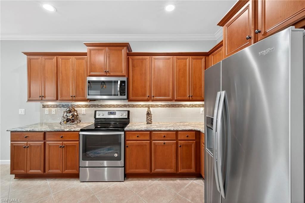 - Electric Garage Door, Dishwasher, Disposal, Dryer, Microwave, Range, Refrigerator, Ice Maker, Self Cleaning Oven, Smoke Detector, Washer