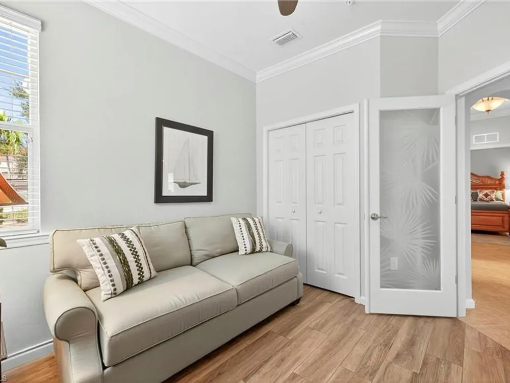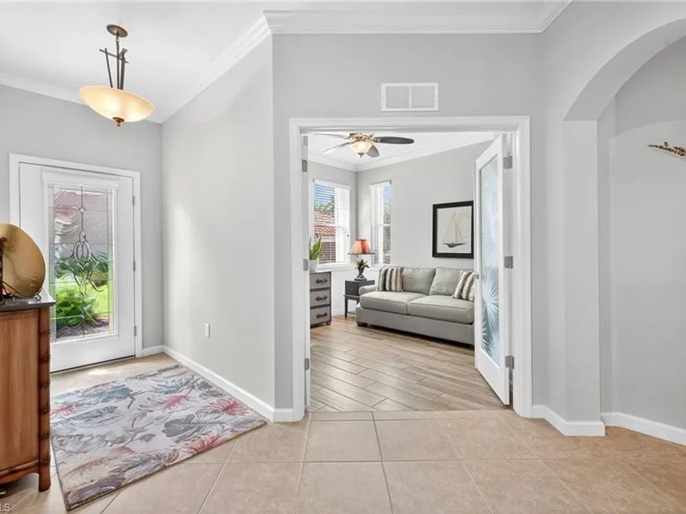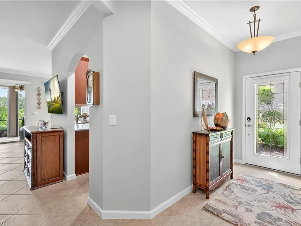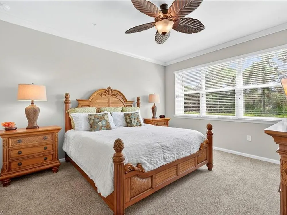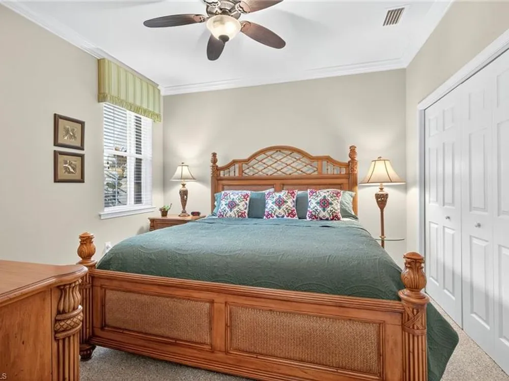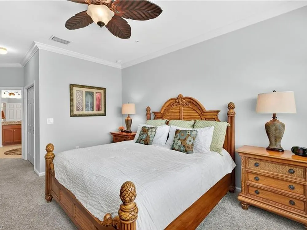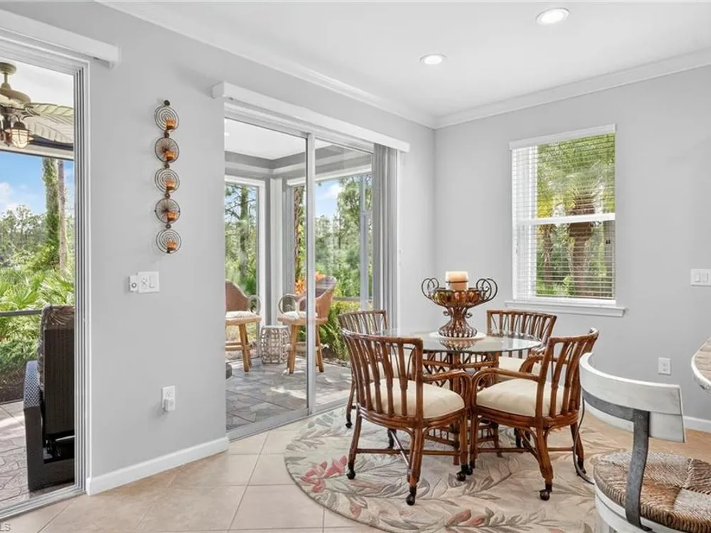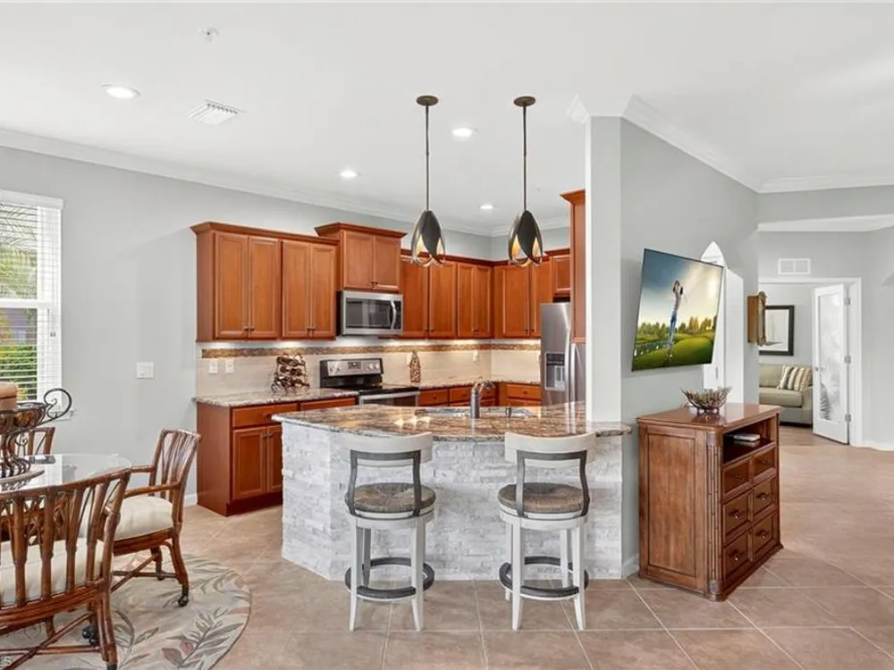 1ST-FLOOR TURNKEY CARRIAGE HOME Golf Views, Hurricane Protection, Upgrades Galore! This immaculate 1st-floor carriage home offers a view of the 8th green and comes fully turnkey furnished (2012) — just bring your suitcase and start enjoying the Florida lifestyle. Featuring 3 bedrooms, 2 baths, and an attached 2-car garage, this home is designed for effortless living and seasonal ease.The open-concept layout includes a spacious great room, breakfast bar, kitchen nook, and two sets of sliders leading to a screened-in lanai with tile flooring and a serene golf course backdrop. Whether you're sipping coffee or unwinding with a book, the patio offers a peaceful retreat in a quiet, well-kept neighborhood.The kitchen is designed with quartz countertops, tile backsplash, and upgraded appliances. The primary suite features a walk-in closet, oversized soaking tub, glass-enclosed walk-in shower, and split vanities. Hurricane protection includes electric roll-down shutters on the lanai, impact glass front door, and accordion shutters on all windows.Upgrades include a new A/C (2020), new hot water heater (2020), freshly painted interior, crown molding, designer glass door inserts, radon reduction system, security system, LED lighting, four mounted TVs for effortless entertaining, custom storage cabinets in the garage and epoxy-coated floor.Best of all, this home is not located in a flood zone. HOA fees cover cable, high-speed internet, lawn care, landscaping, pest control, water, trash, exterior insurance, and maintenance — making seasonal or full-time living truly carefree.Located in Somerset at The Plantation Golf & Country Club, a gated community offering tennis, pickleball, bocce, fitness center, resort-style pool and spa, and a variety of social clubs and activities. The Plantation Golf & Country Club features a Hurdzan-Fry championship 18-hole golf course, clubhouse, and restaurant. Golf and social memberships are optional, giving you the flexibility to enjoy amenities your way.Conveniently located near I-75, shopping, dining, RSW airport, and Gulf beaches. Whether you're escaping the cold or settling into sunshine, this fully furnished, move-in-ready home delivers comfort, connection, and carefree living.