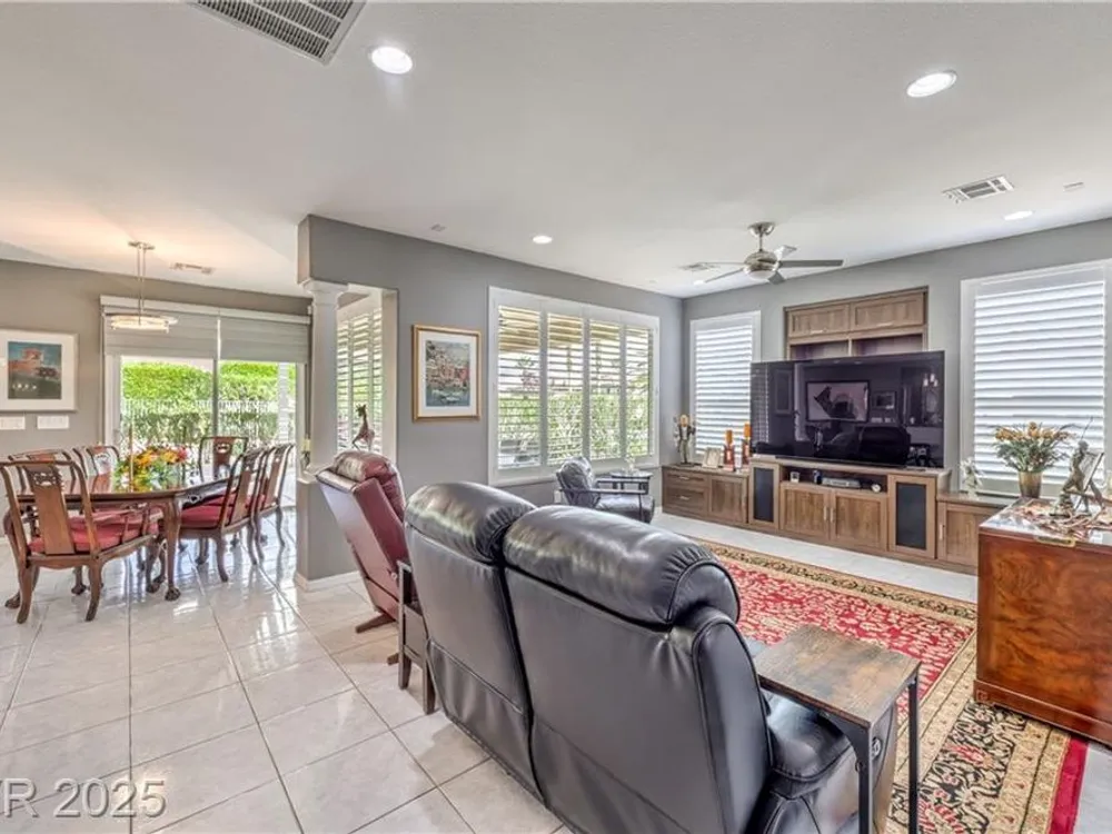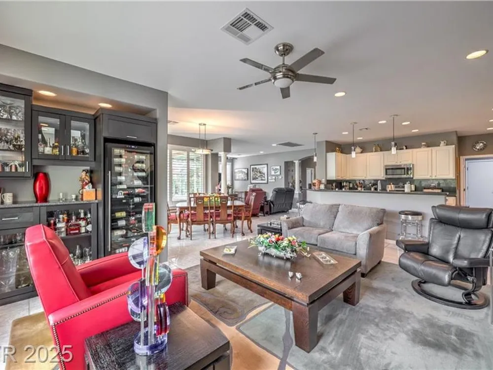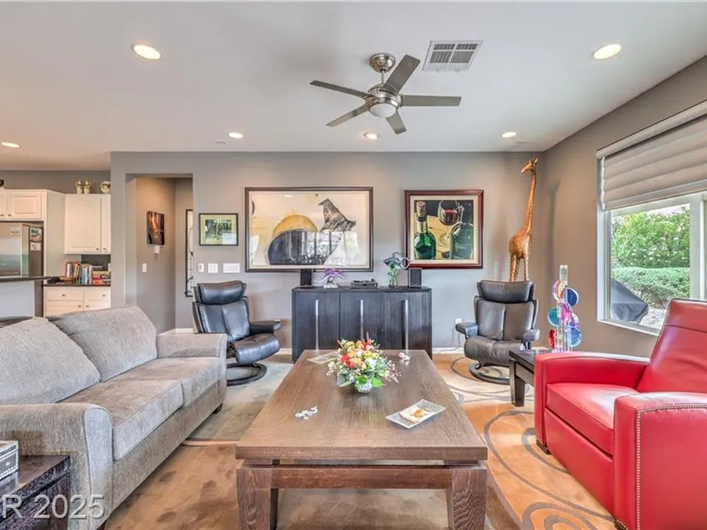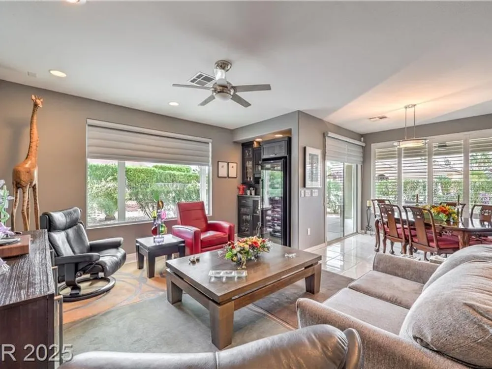 Experience resort-style living in the highly sought-after Siena Golf Community! This well-appointed home offers an inviting open layout with custom built-in entertainment centers and thoughtful upgrades throughout. The gourmet kitchen is perfect for entertaining, while the spacious great room flows seamlessly for comfortable living while featuring a convenient wine fridge. The remodeled primary bath is a true retreat, featuring a large walk-in shower tucked behind a pony wall, designed with both style and function in mind. Neutral finishes, abundant natural light, and quality craftsmanship create a warm, welcoming atmosphere. Enjoy all the amenities Siena has to offer, including golf, fitness, community events, and 24-hour guard-gated security—all within minutes of Summerlin’s best dining, shopping, and entertainment. This home blends luxury, convenience, and lifestyle in one exceptional package.