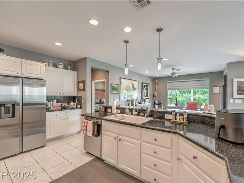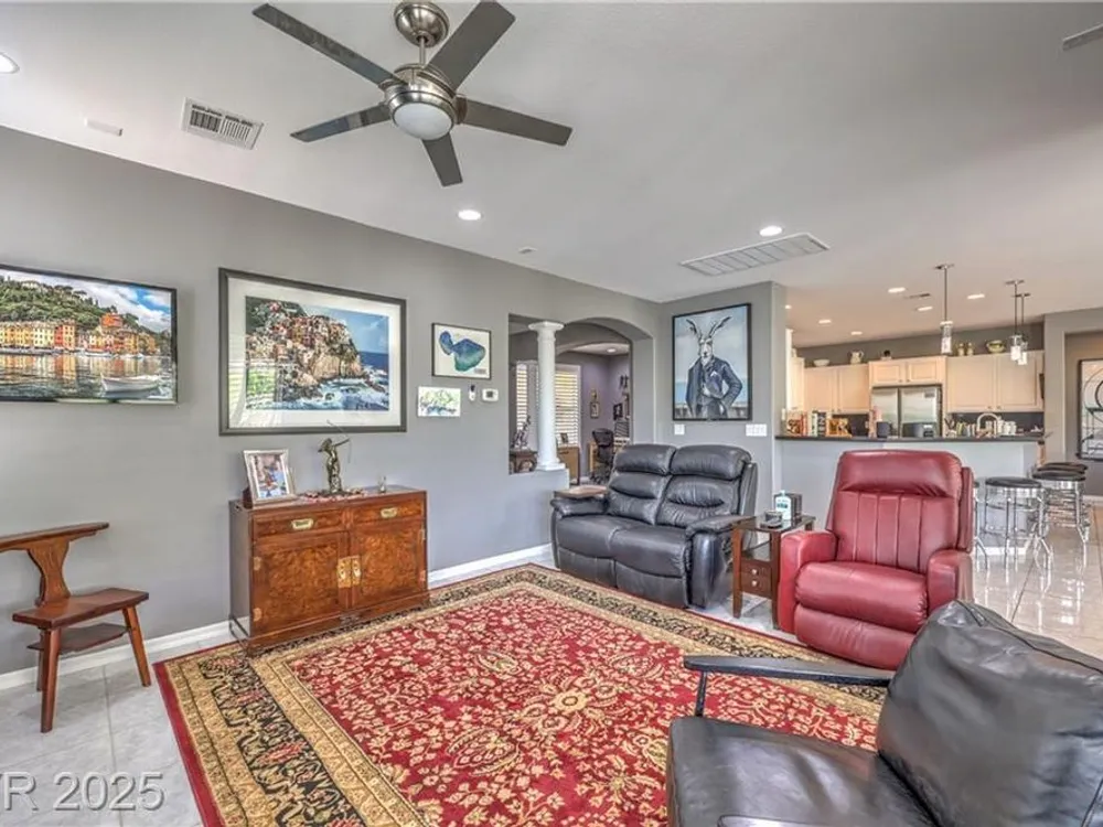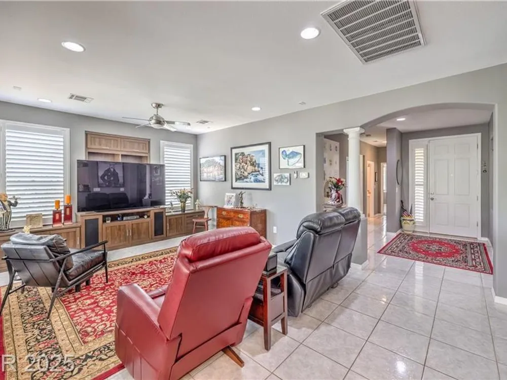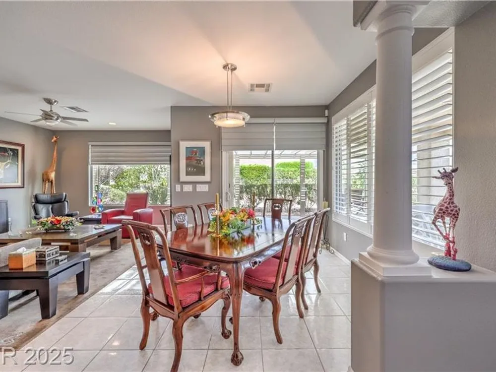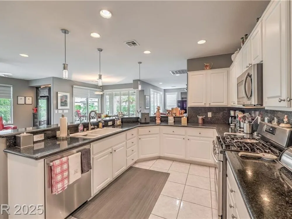 Experience resort-style living in the highly sought-after Siena Golf Community! This well-appointed home offers an inviting open layout with custom built-in entertainment centers and thoughtful upgrades throughout. The gourmet kitchen is perfect for entertaining, while the spacious great room flows seamlessly for comfortable living while featuring a convenient wine fridge. The remodeled primary bath is a true retreat, featuring a large walk-in shower tucked behind a pony wall, designed with both style and function in mind. Neutral finishes, abundant natural light, and quality craftsmanship create a warm, welcoming atmosphere. Enjoy all the amenities Siena has to offer, including golf, fitness, community events, and 24-hour guard-gated security—all within minutes of Summerlin’s best dining, shopping, and entertainment. This home blends luxury, convenience, and lifestyle in one exceptional package.