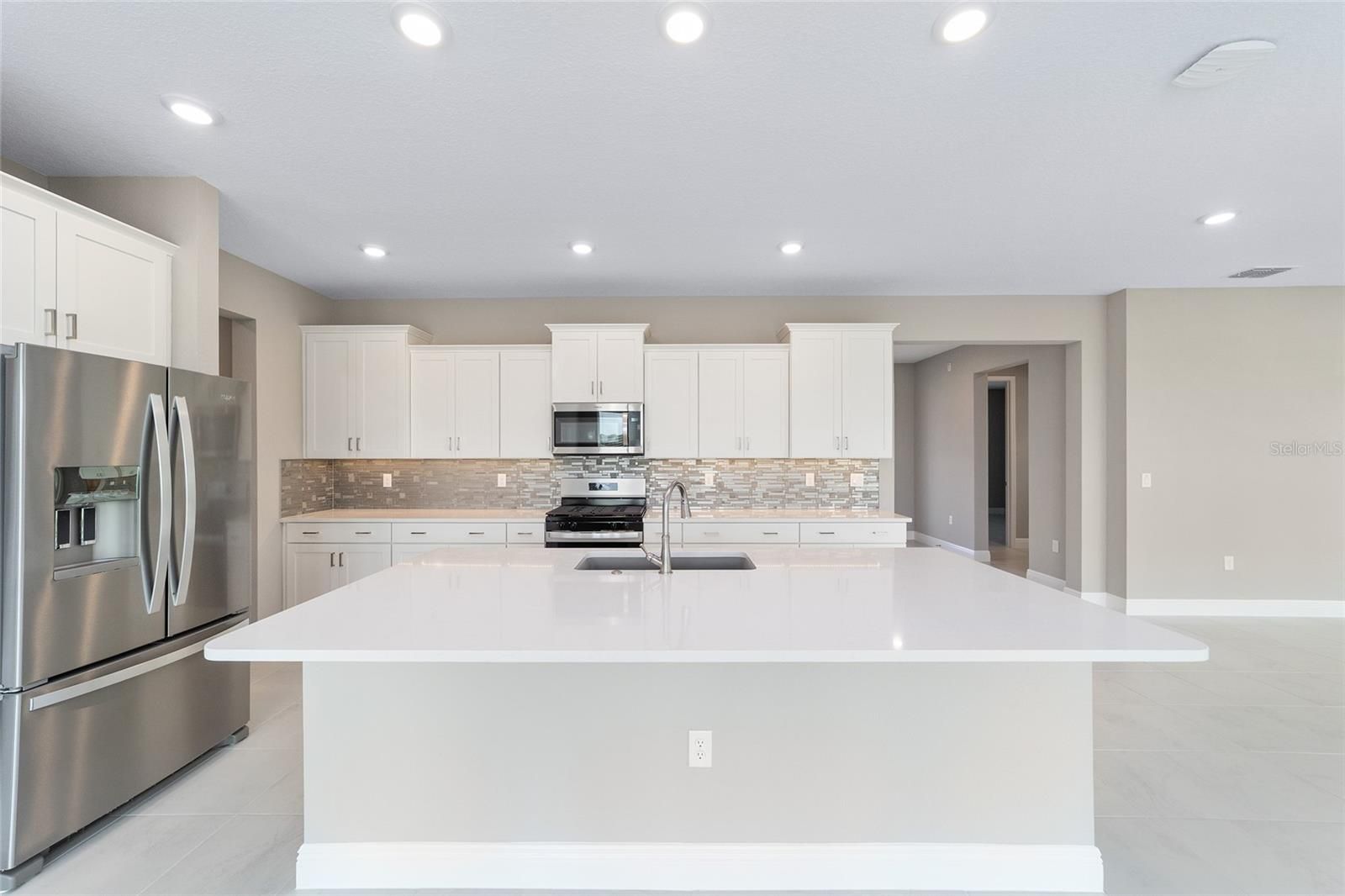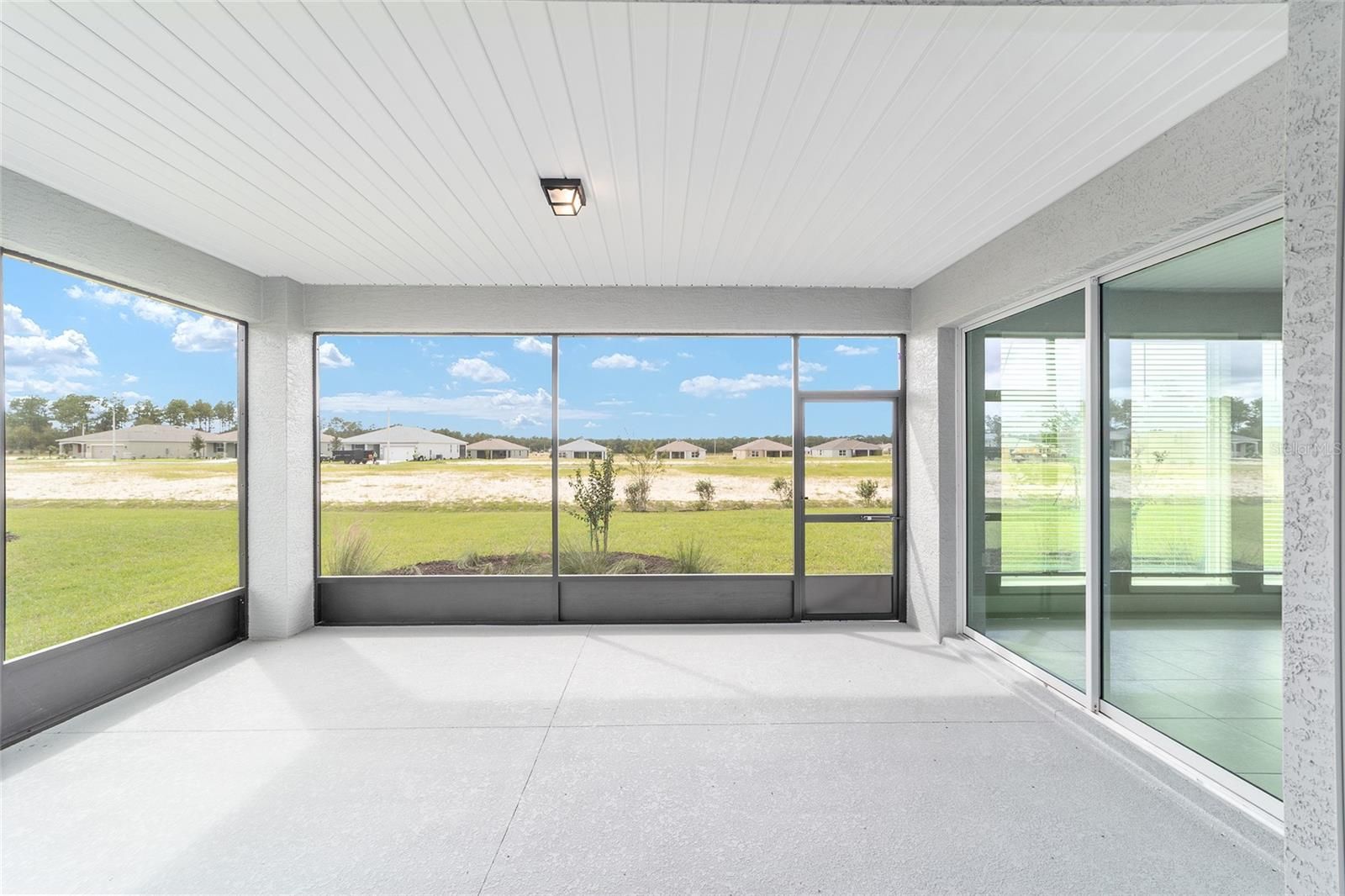 Beautiful Beatrix in Longleaf Ridge! This stunning new construction Beatrix model offers elegant design and modern comfort with 2 bedrooms, 2 bathrooms, a versatile flex space with a closet, and a 2-car garage with additional space for golf cart parking. With over 2,100 sq ft of open-concept living, this home is designed for both relaxation and entertaining. The gourmet kitchen features staggered cabinets with crown molding, stainless steel appliances, under-cabinet lighting, a large island with quartz countertops, and a spacious walk-in pantry. The dining area includes a sliding door leading to the screened lanai, along with three floor-to-ceiling windows with blinds overlooking the backyard. The open living area showcases a 4-panel sliding door that opens to the lanai—perfect for enjoying Florida’s indoor-outdoor lifestyle. The primary suite is a peaceful retreat featuring a 3-panel window overlooking the backyard and a luxurious ensuite with dual quartz vanities, a linen closet, and a large walk-in shower with a glass door and built-in bench. Bedroom 2 offers a spacious closet and is conveniently located near the guest bath with a quartz vanity and tiled tub/shower combination. Located in the highly sought-after Longleaf Ridge neighborhood within On Top of the World, this home combines high-end finishes, thoughtful design, and access to world-class amenities for the perfect blend of comfort and community living.